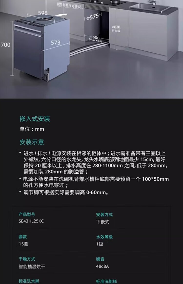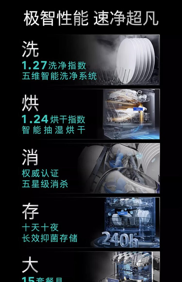 SIEMENS Smart Clean Rubik's Cube 15 sets of under-stove embedded dishwasher A stream sterilization, dehumidification and drying SE43HL25KC