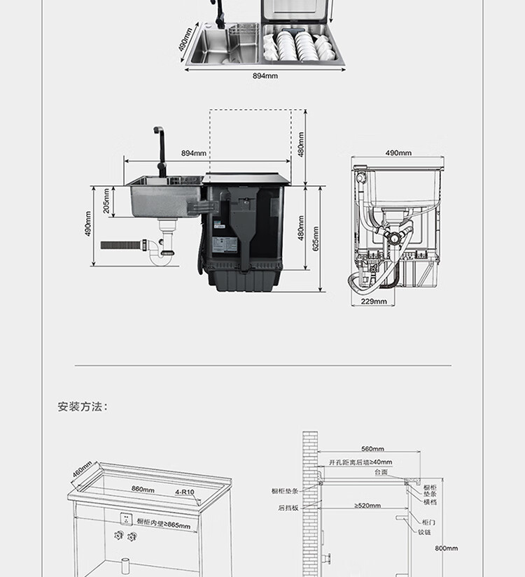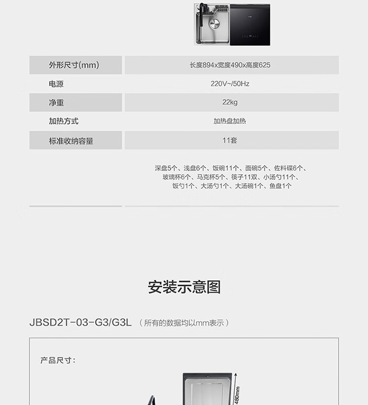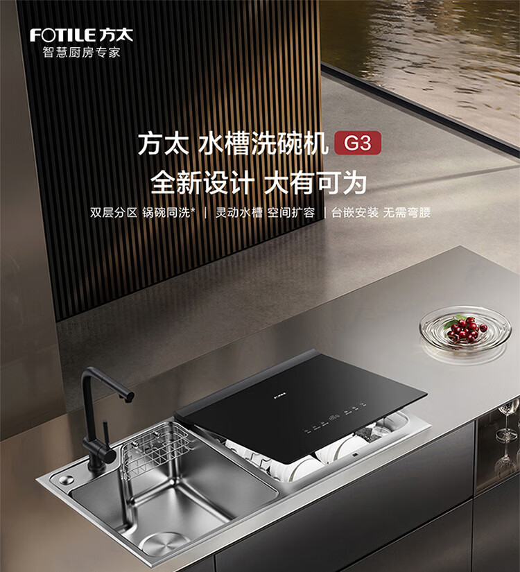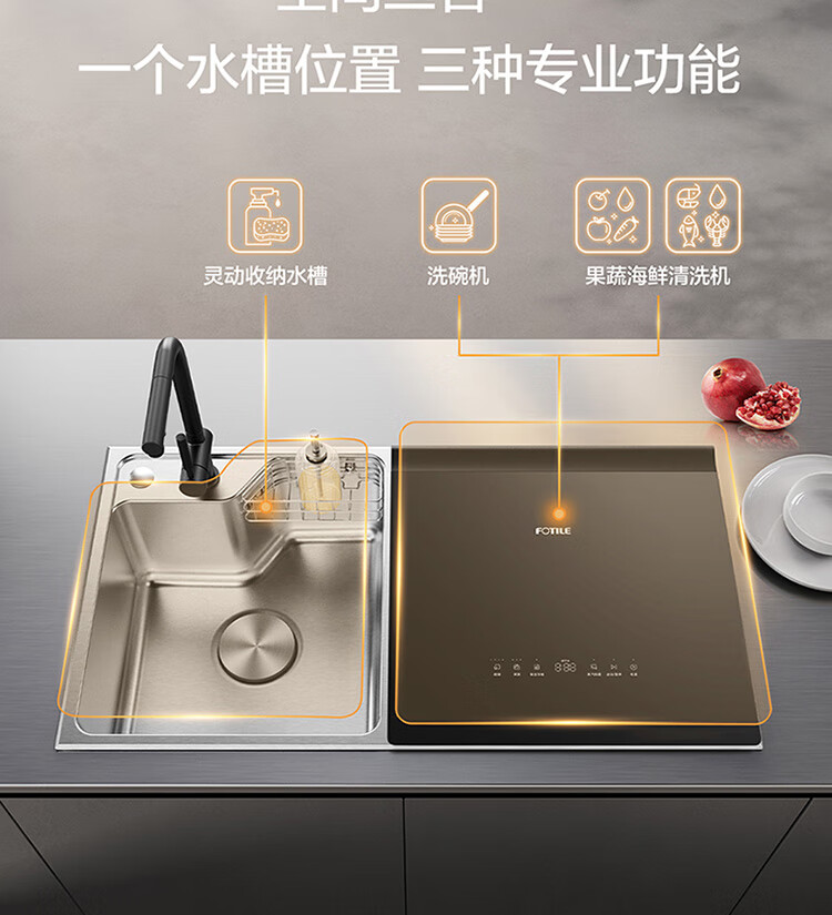 FOTILE dishwasher is on the right, household sink dishwasher, 11 sets of large capacity, first-class water efficiency, high-energy bubble washer JBSD2T-03-G3, same model as offline