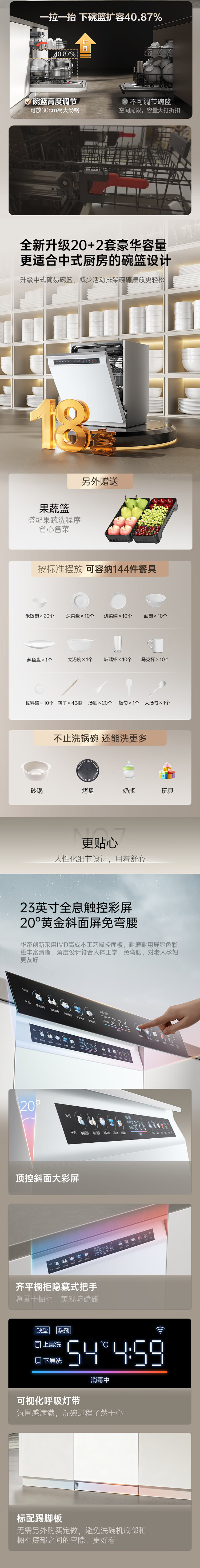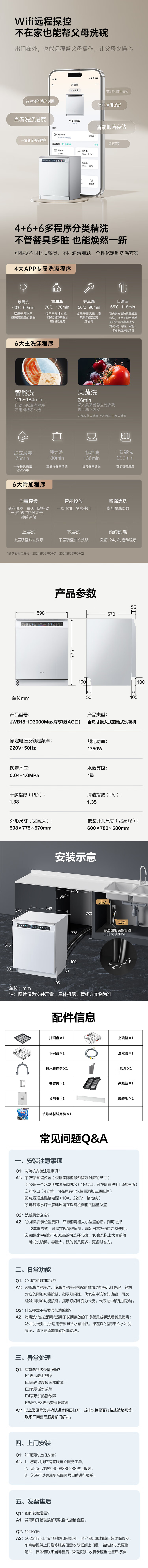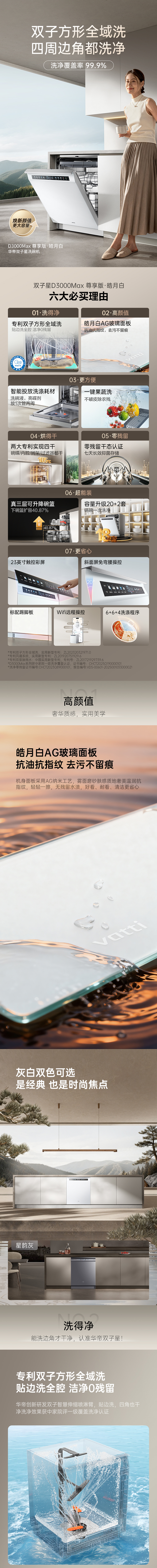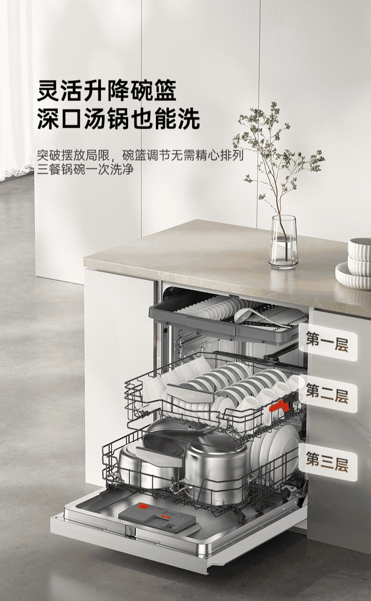 VATTI Small UFO Max 20+2 sets of dishwashers embedded in household frequency conversion intelligent fruit and vegetable washing seven-star disinfection JWB18-iD3000Max exclusive version (AG white)