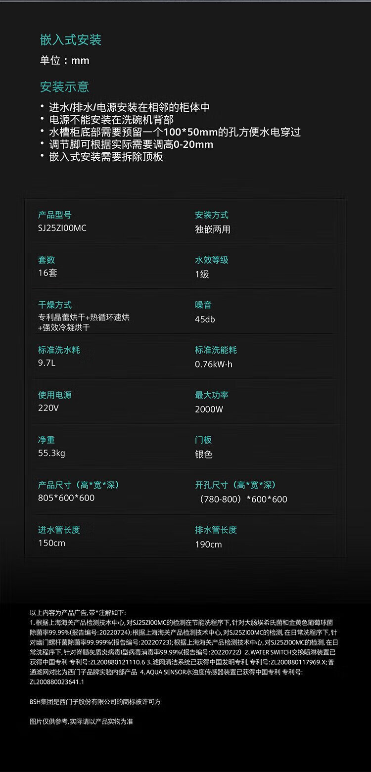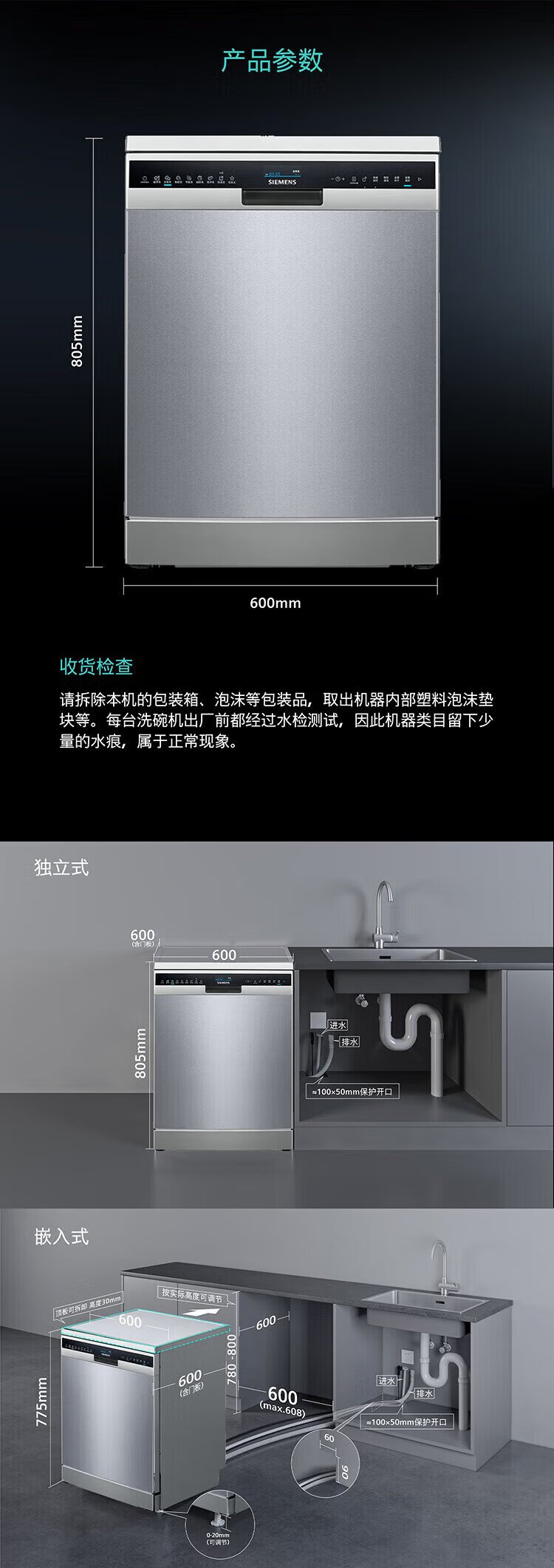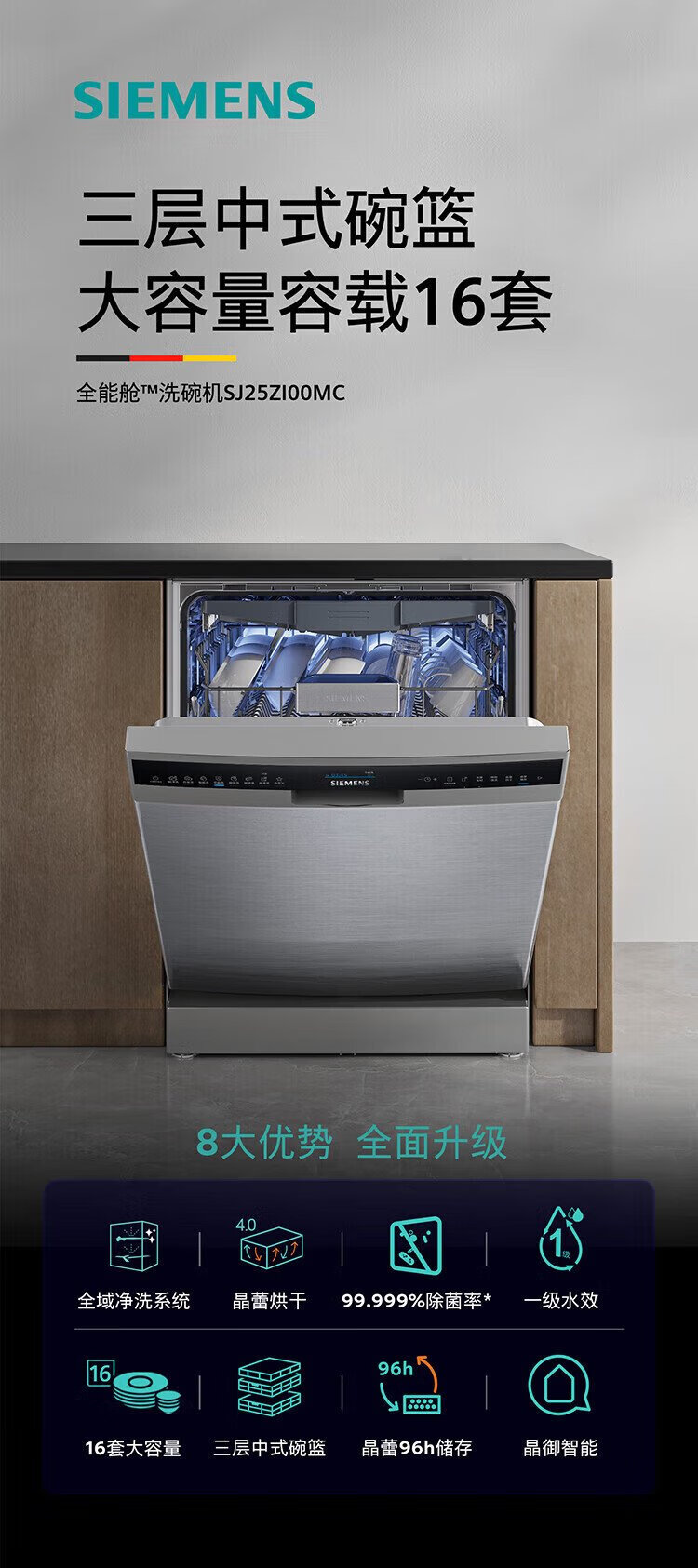 Siemens 16 sets of all-purpose cabin independent built-in dishwasher independent crystal drying and storage SJ25ZI00MC