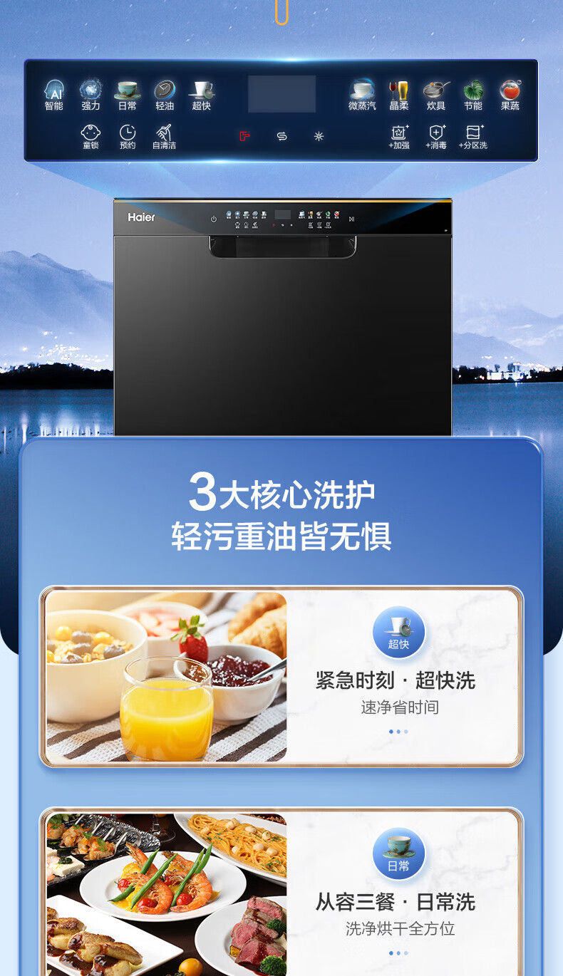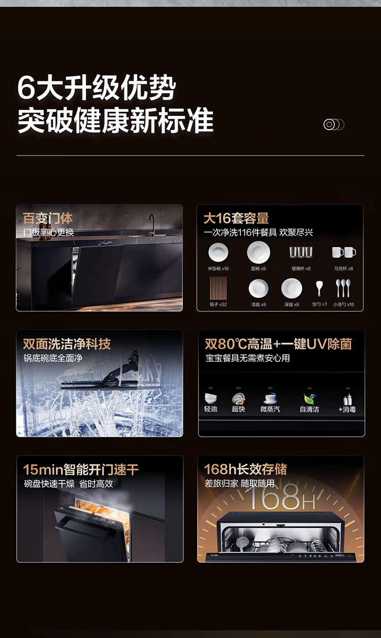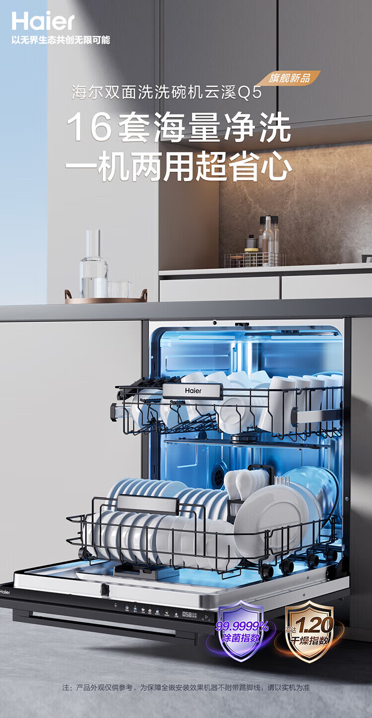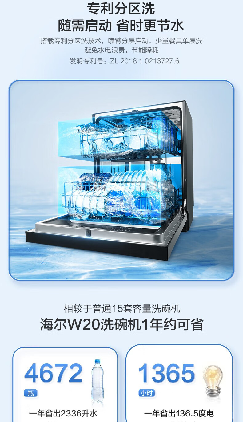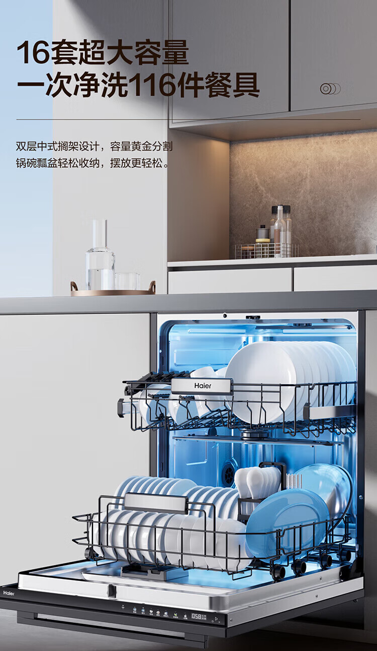 Haier built-in dishwasher, dual micro steam washing W30MAX upgraded model, 16 sets of large-capacity maternal and child-grade sterilization and decontamination integrated smart door opening, quick-drying, first-class water efficiency, 15 sets of W20, the first choice for cost-effectiveness + zoned fine washing + first-class water efficiency