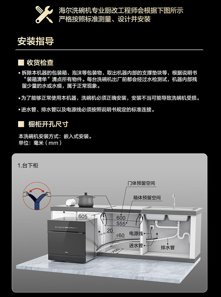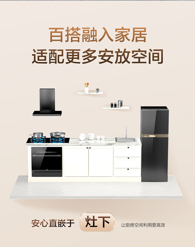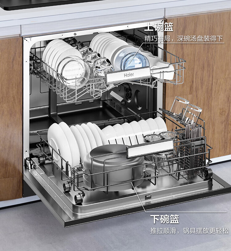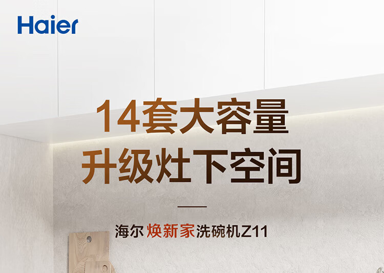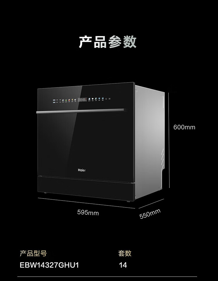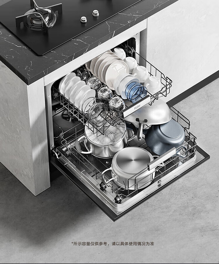 Haier Z16 small dishwasher built-in under the stove, fully automatic for home use, 16 sets, large capacity, six-star disinfection, first-class water efficiency, smart door opening, quick drying, 7-day long-lasting net storage, directly embedded under the stove, EBW16585GHU1