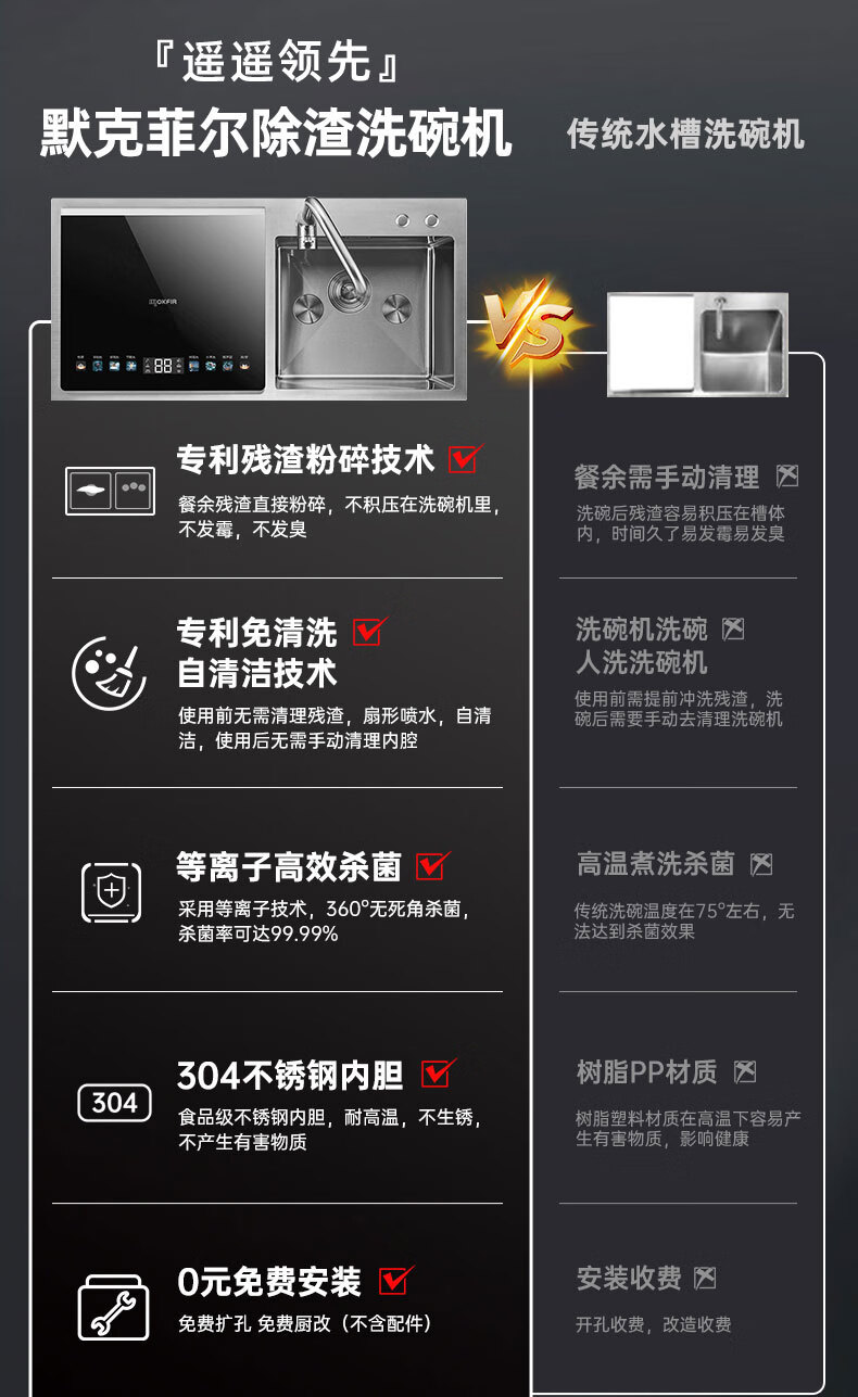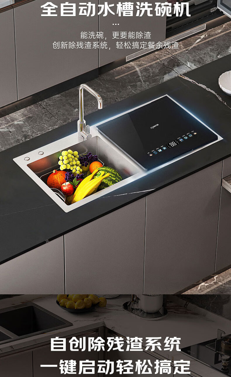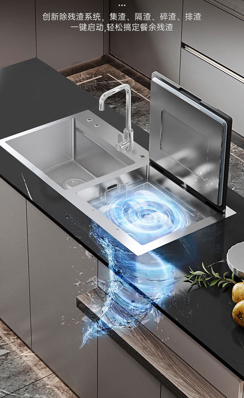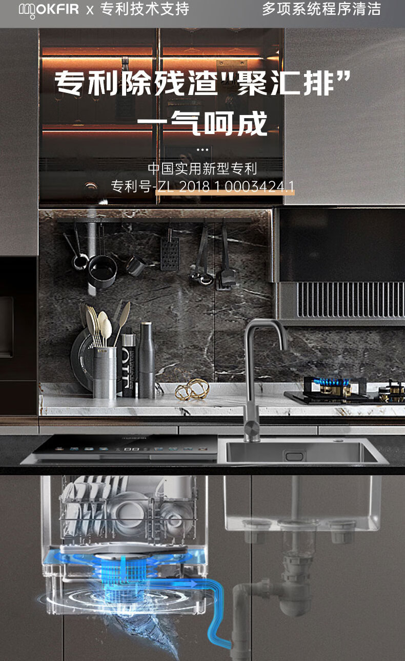 MOKFIR free door-to-door installation sink dishwasher household embedded integrated sink dishwasher all-in-one patented food waste crusher washing and dissolving machine three-in-one sonic wave cleaning sea large double tank - left side (ultrasonic sink)