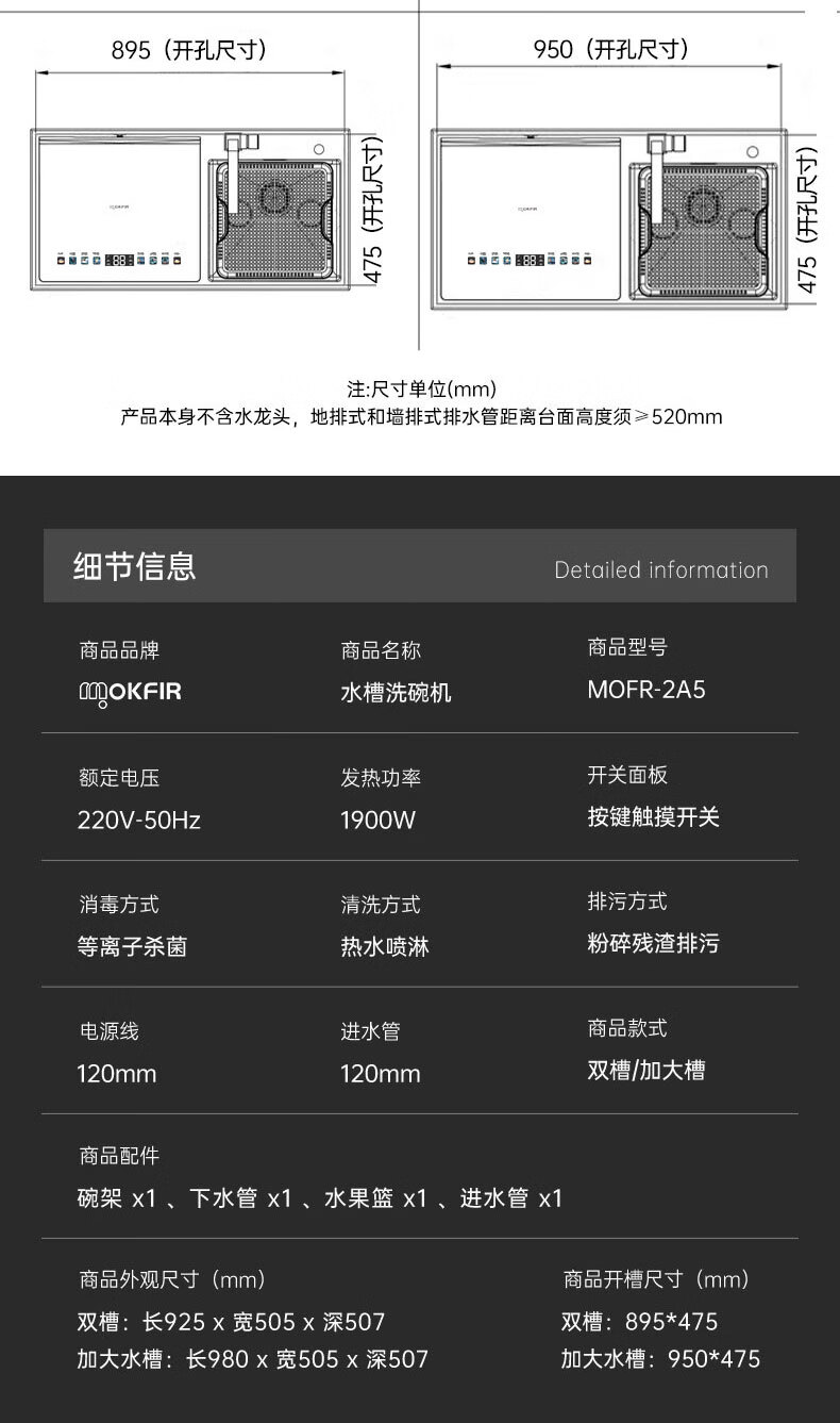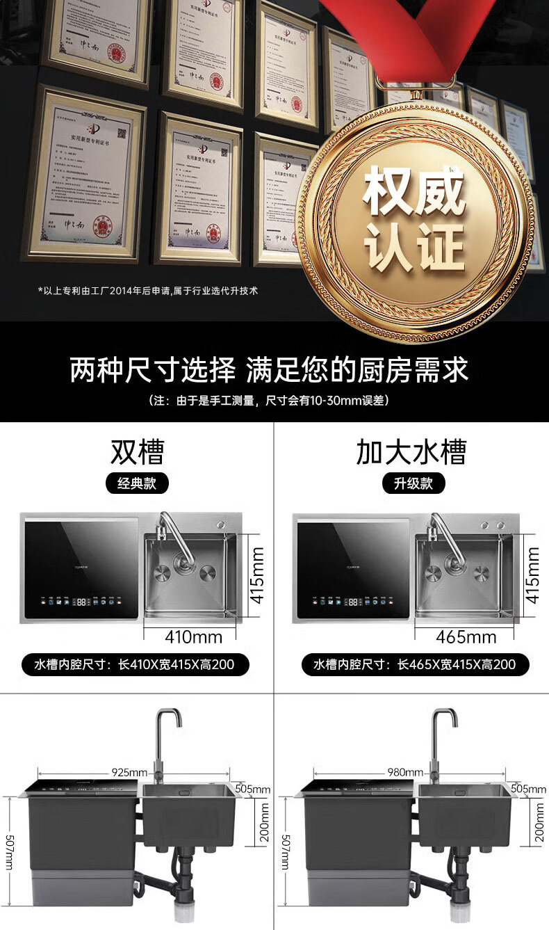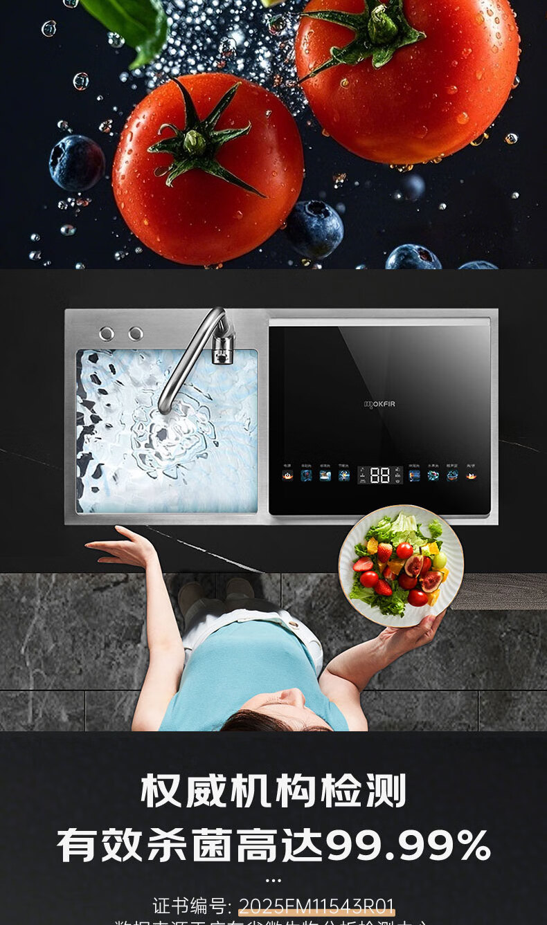 MOKFIR free door-to-door installation sink dishwasher household embedded integrated sink dishwasher all-in-one patented food waste crusher washing and dissolving machine three-in-one sonic wave cleaning sea large double tank - left side (ultrasonic sink)