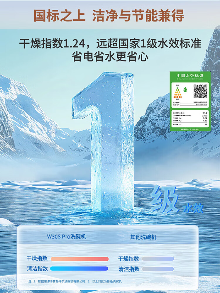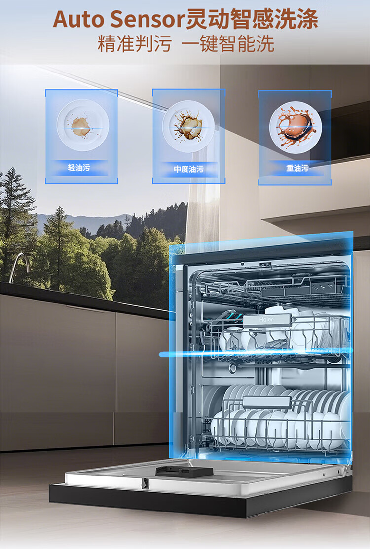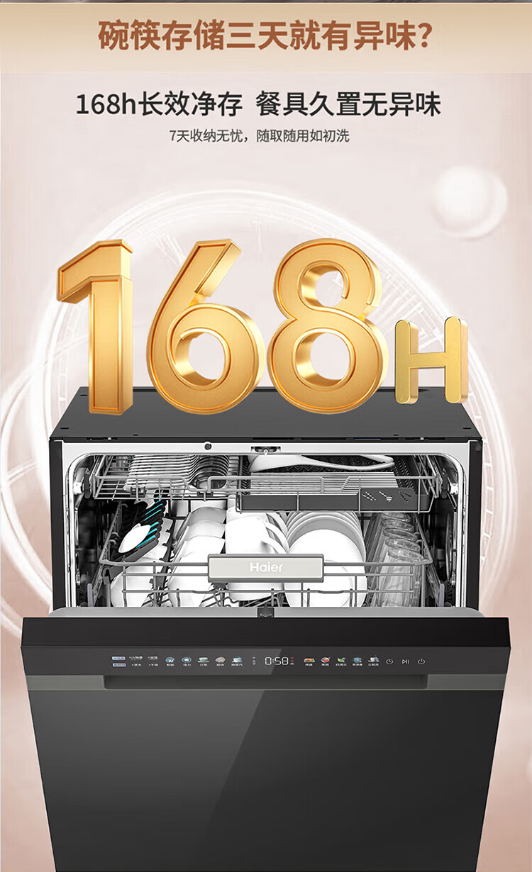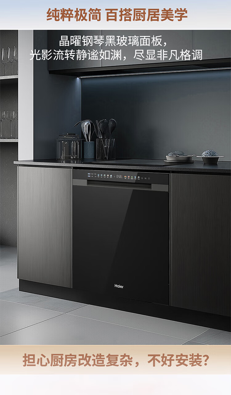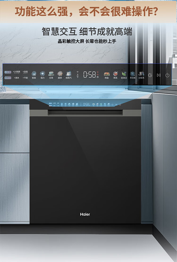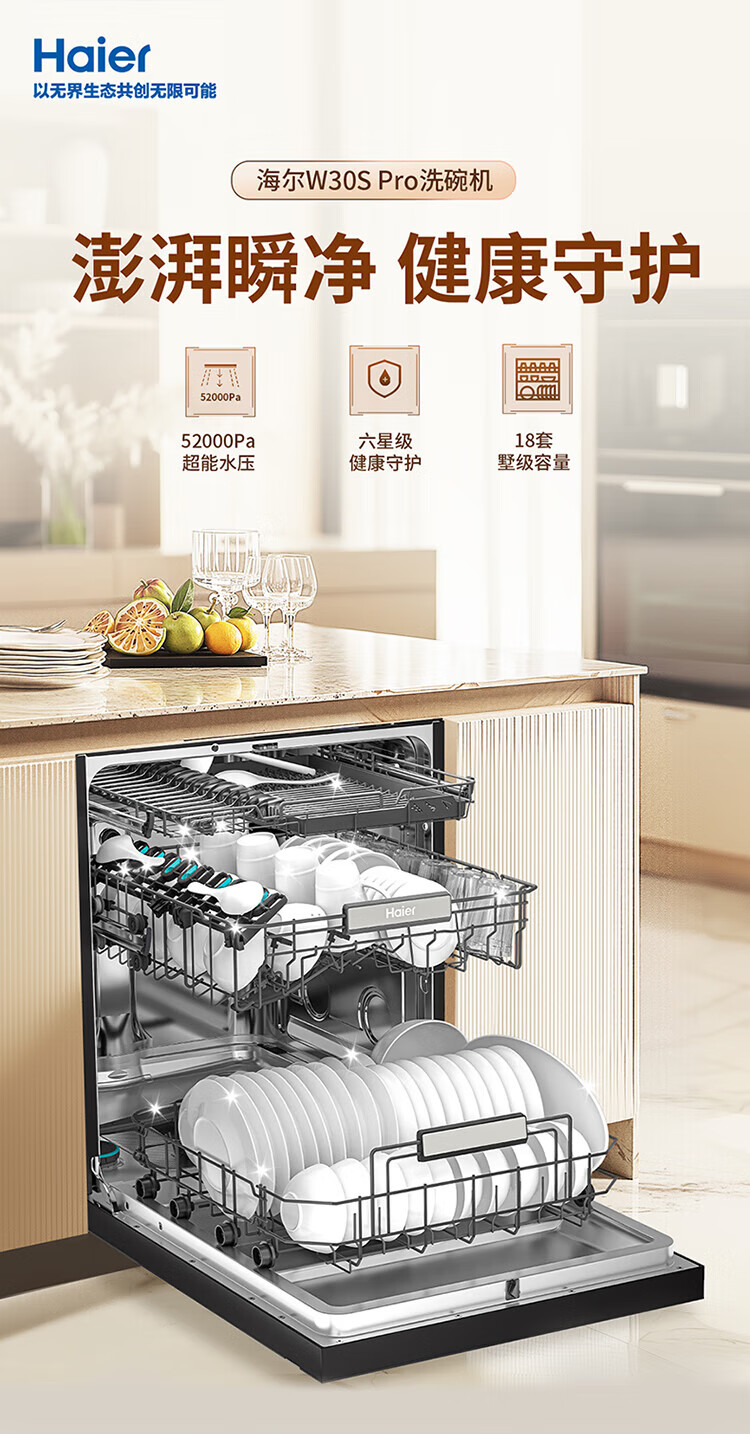 Haier dishwasher built-in dual micro steam wash W30SPro 18 sets large capacity first-class water efficiency six-star sterilization high temperature UV double sterilization intelligent door opening quick drying nearest warehouse glass panel + one-button single disinfection + 52000Pa water pressure