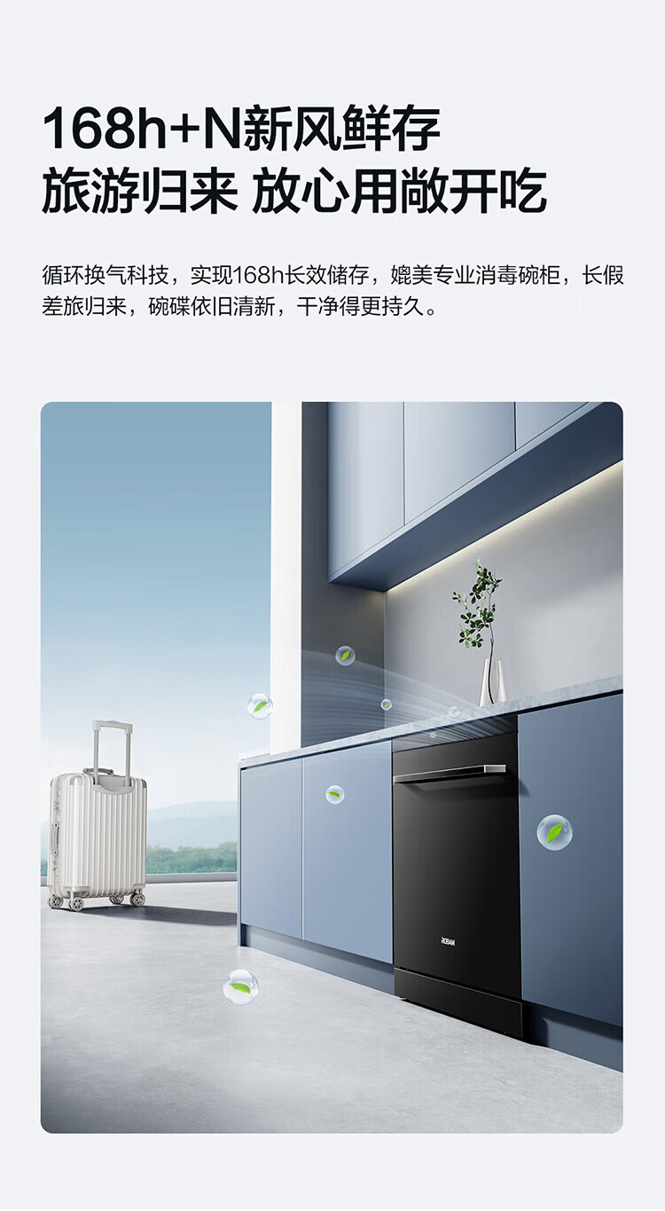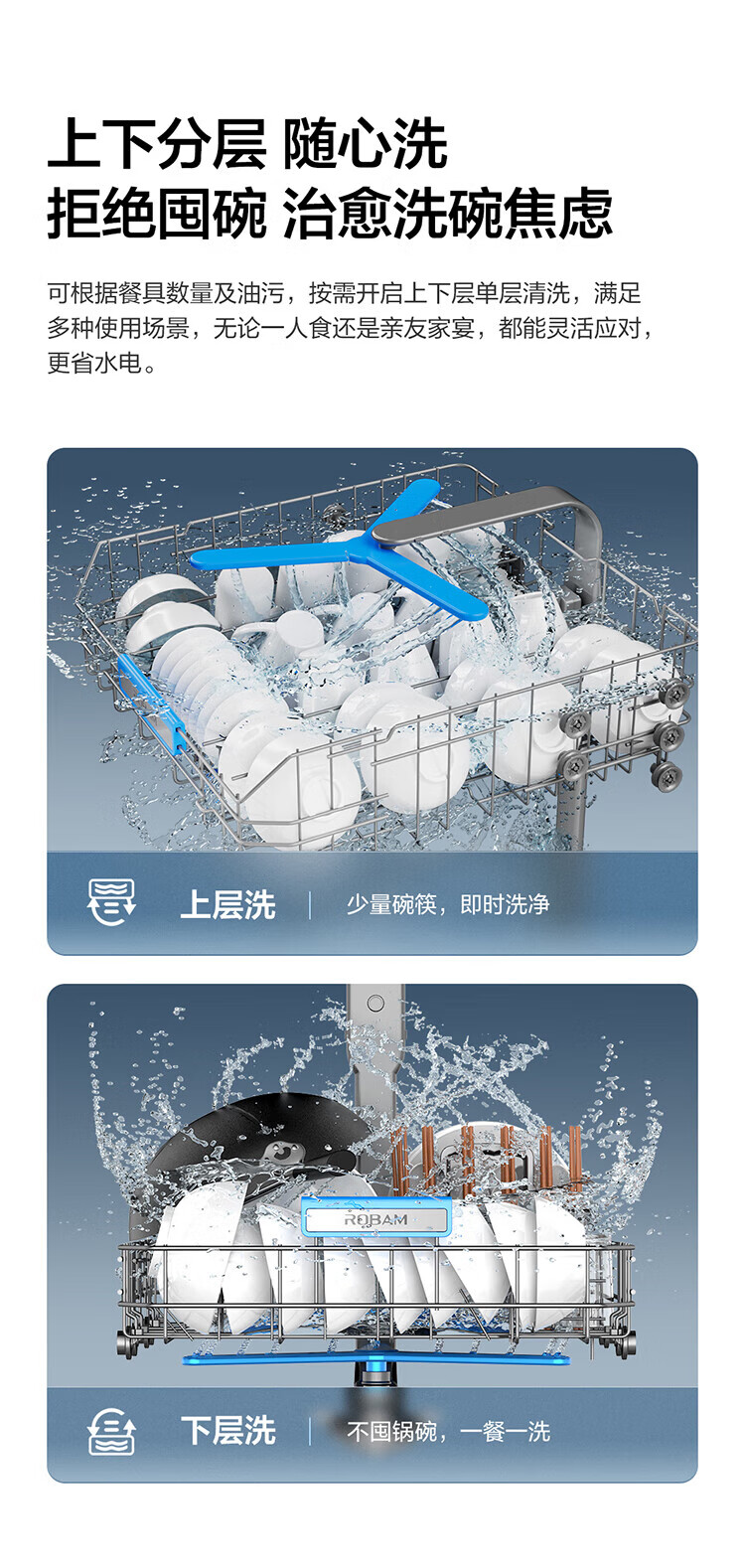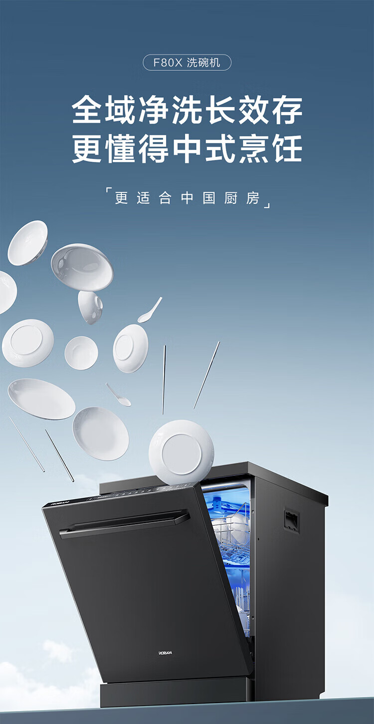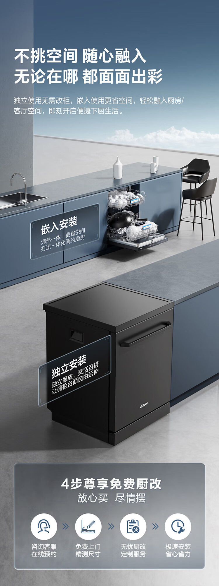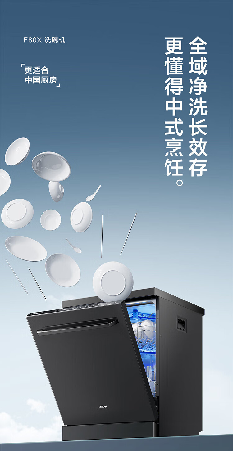 Robam independently embedded dual-purpose 15 sets of large-capacity Sky Realm dishwasher-disinfection all-in-one machine nine-arm three-fork spray first-level energy efficiency embedded dishwasher F80X black 99.999% sterilization and disinfection 15 sets nine-arm three-fork spray washing