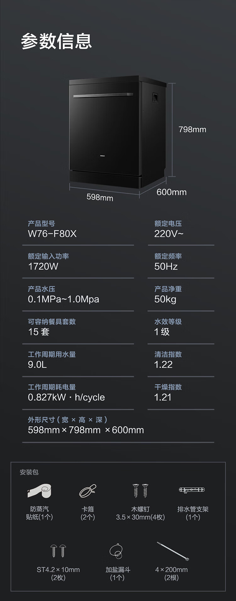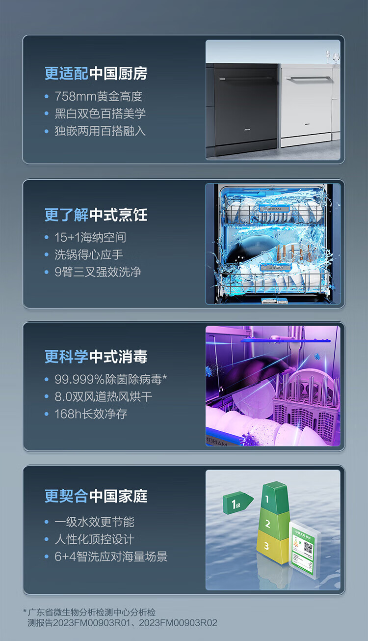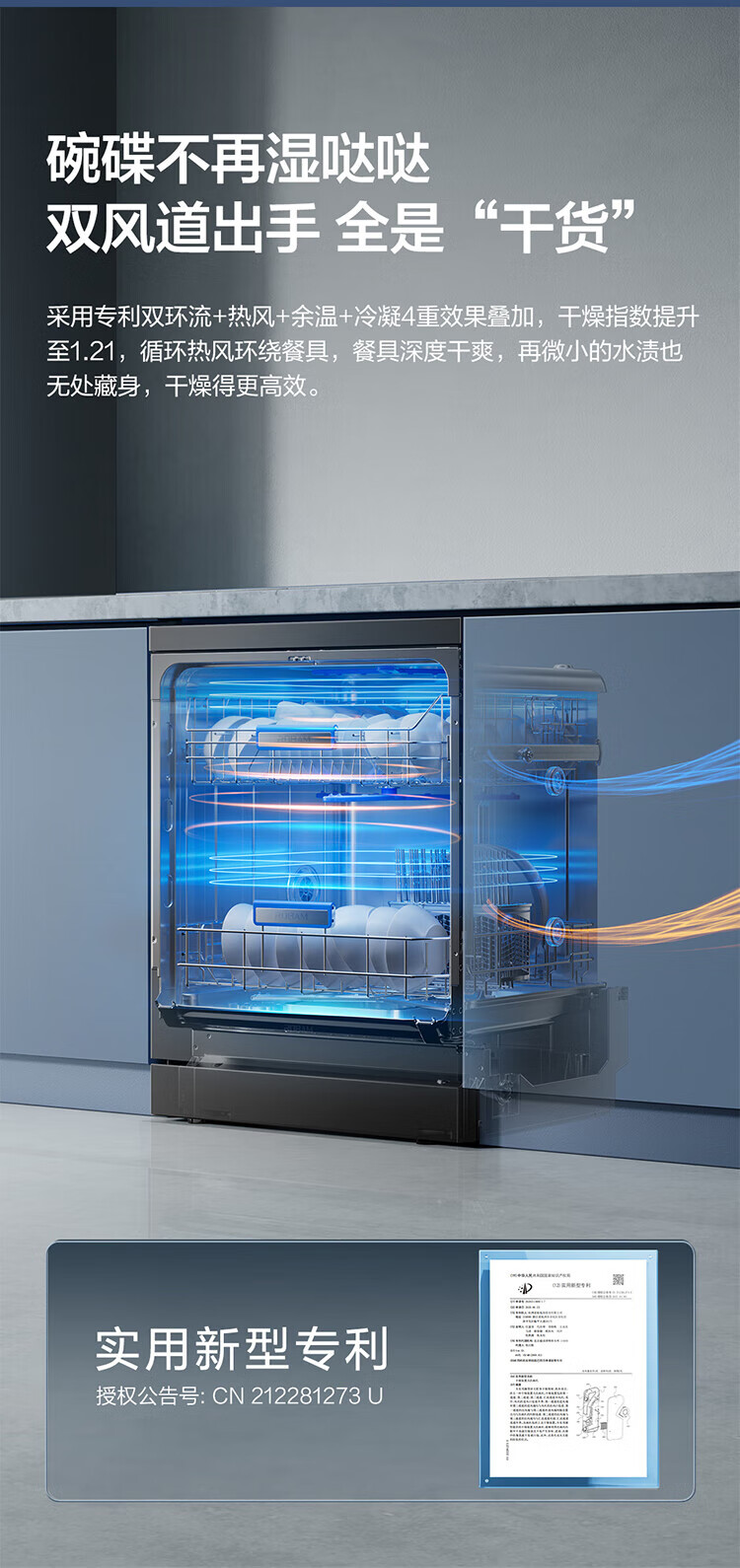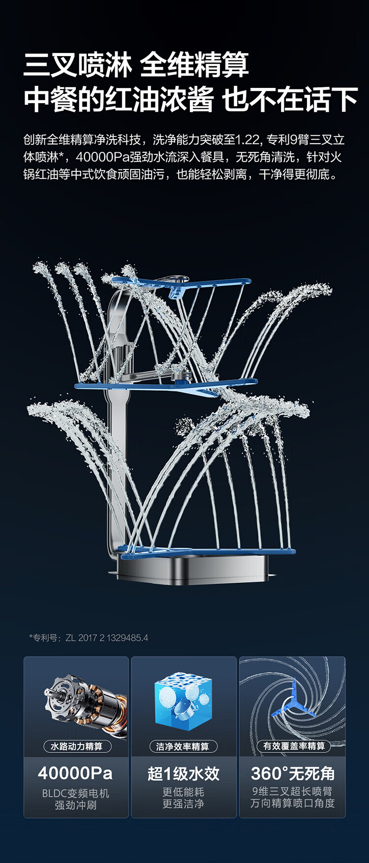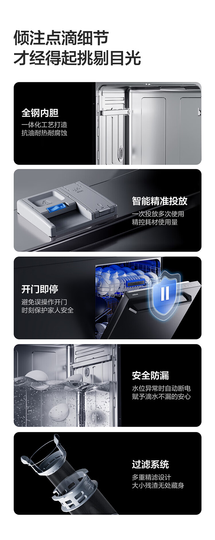 Robam independently embedded dual-purpose 15 sets of large-capacity Sky Realm dishwasher-disinfection all-in-one machine nine-arm three-fork spray first-level energy efficiency embedded dishwasher F80X black 99.999% sterilization and disinfection 15 sets nine-arm three-fork spray washing