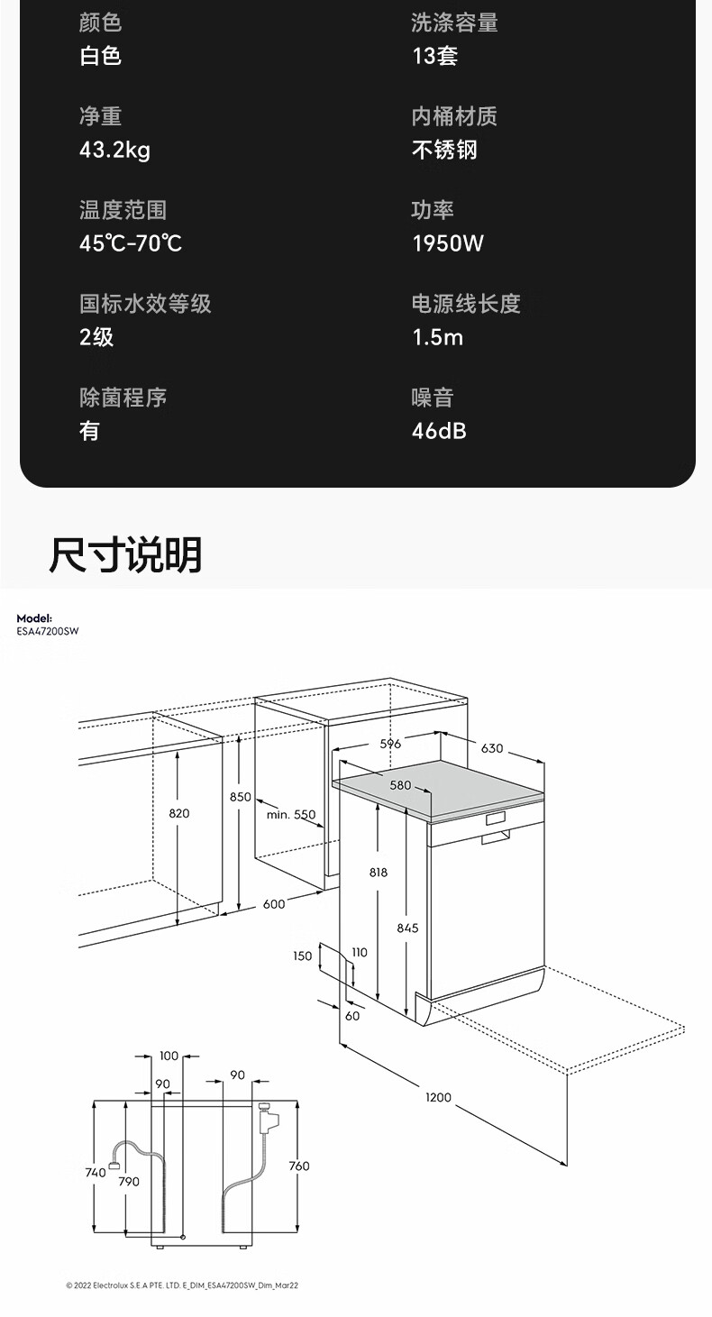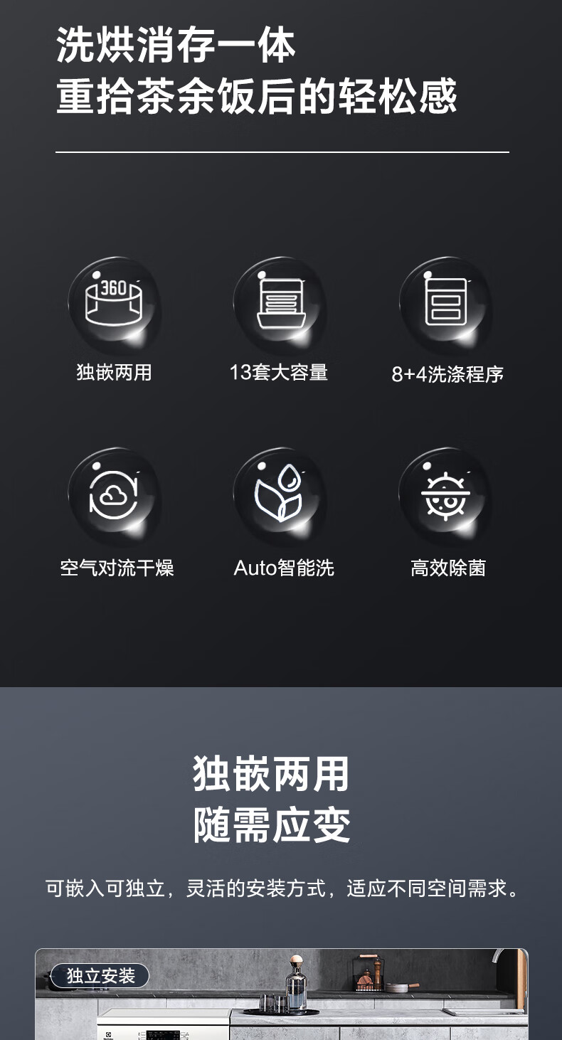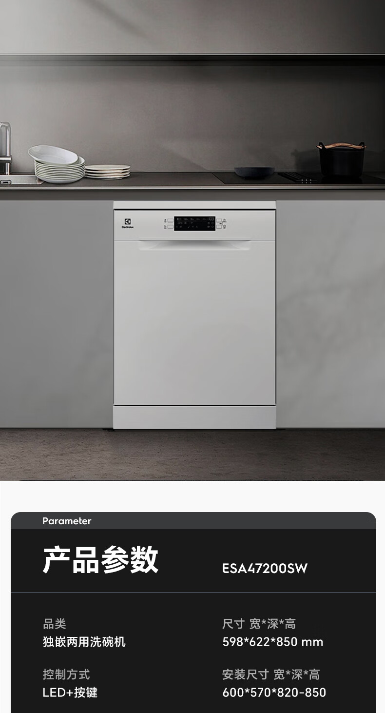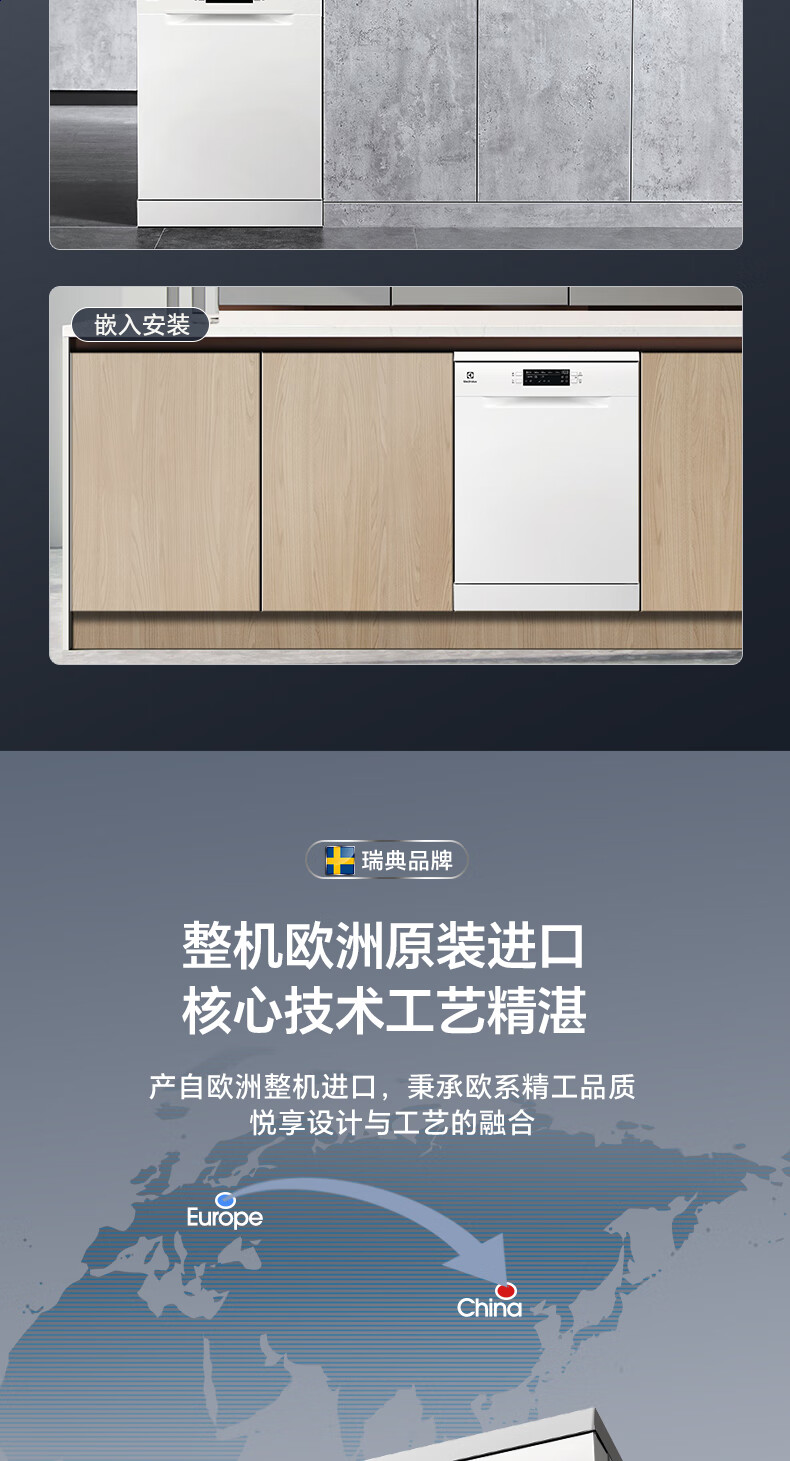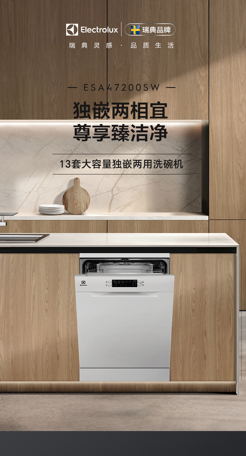 Electrolux dishwashers imported from Europe 13 sets of large-capacity household fully automatic independent embedded dual-use variable frequency sterilization dishwasher ESA47200SW