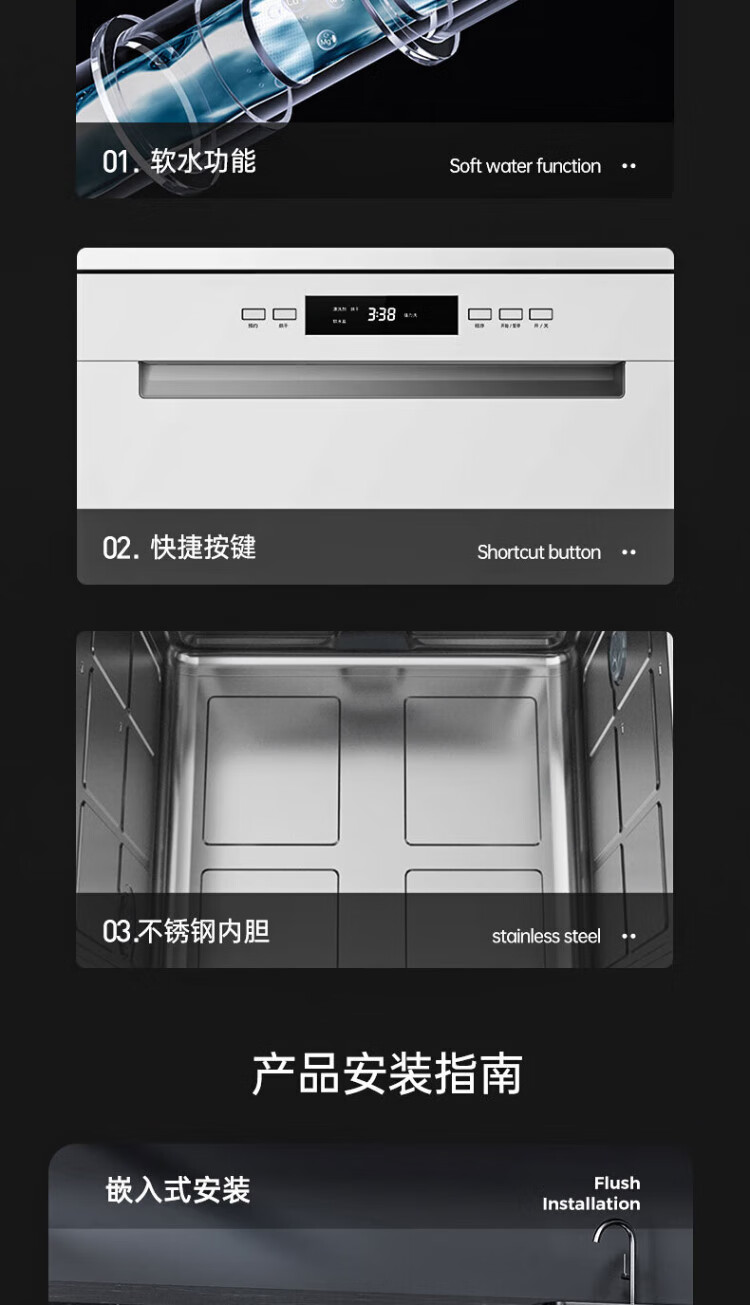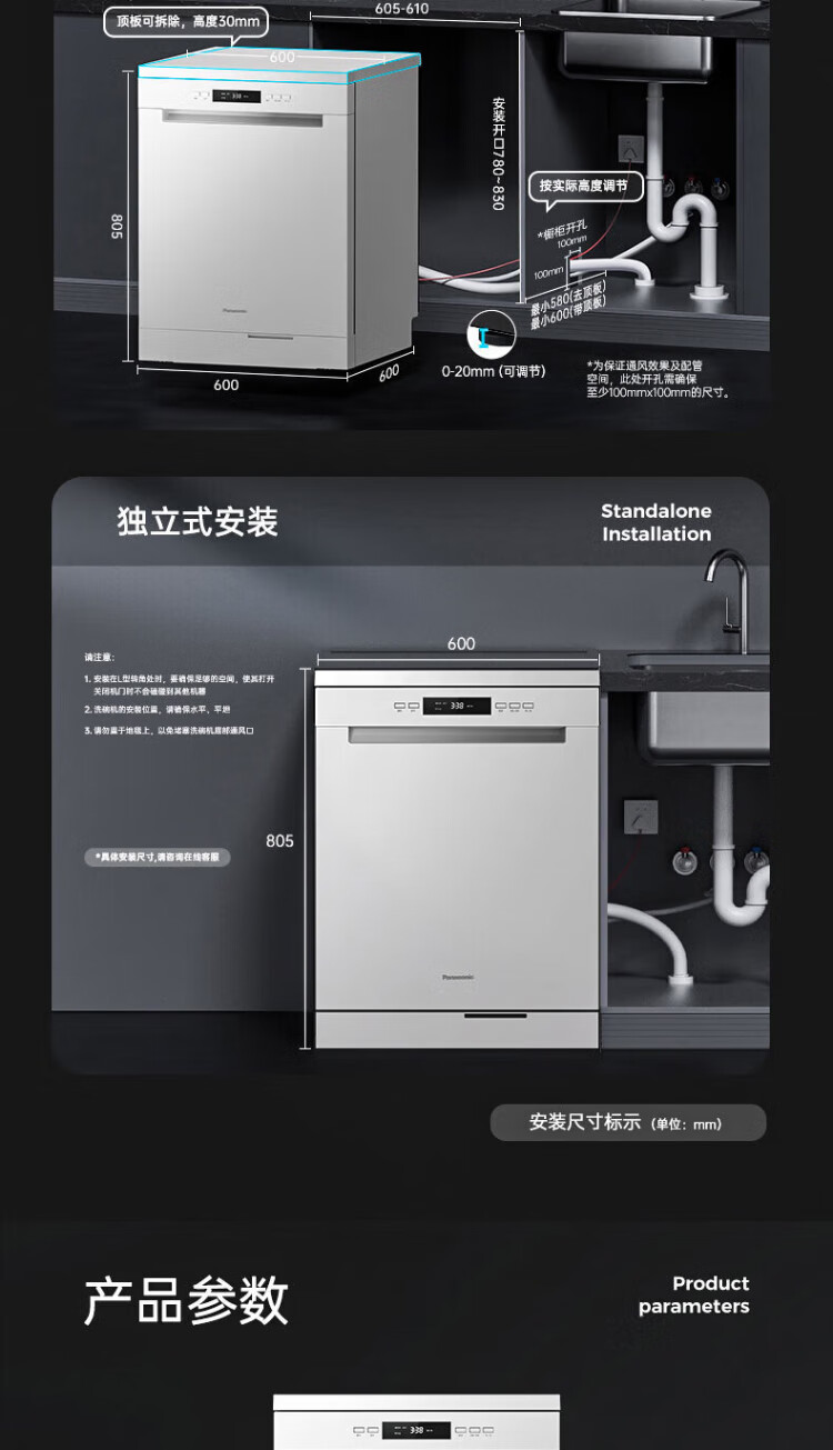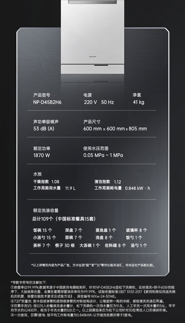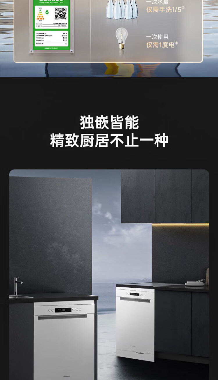 Panasonic (Panasonic) national subsidy embedded dishwasher stove 15 sets of large capacity independent embedded dual-use first-class water efficiency to remove residual water and dry NP-D45B2H6 NP-D45B2H6 white