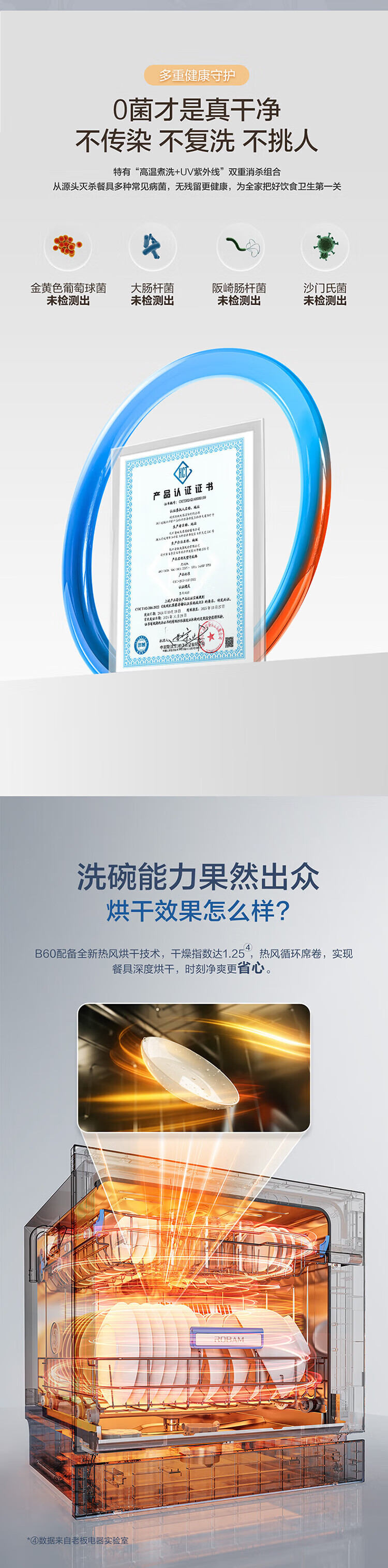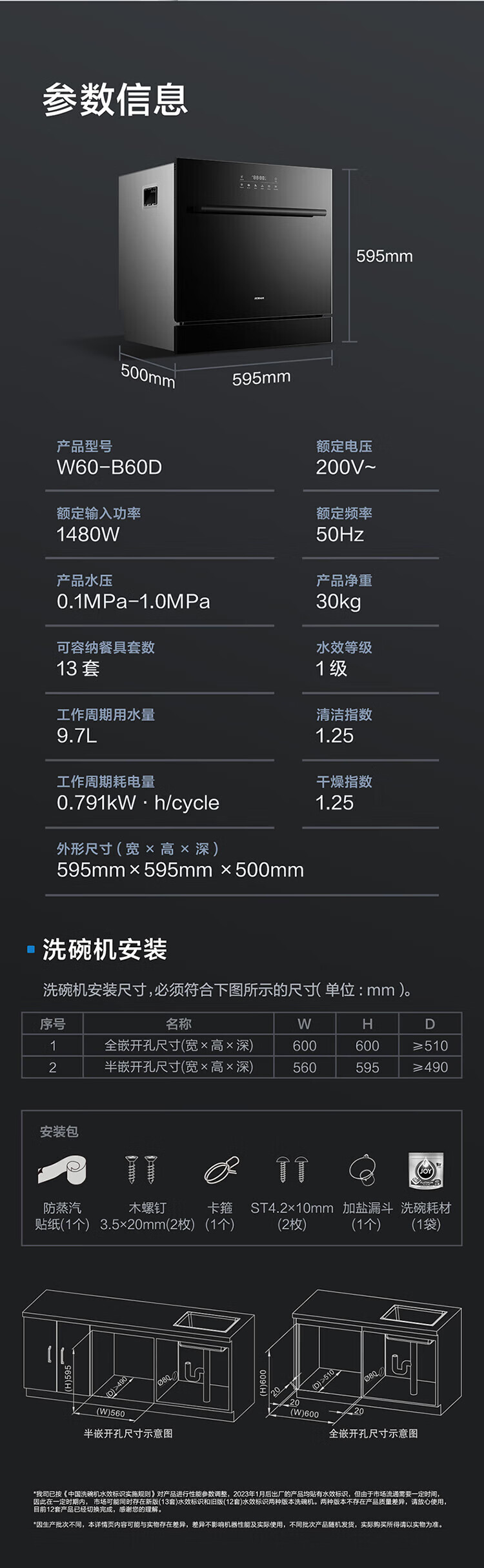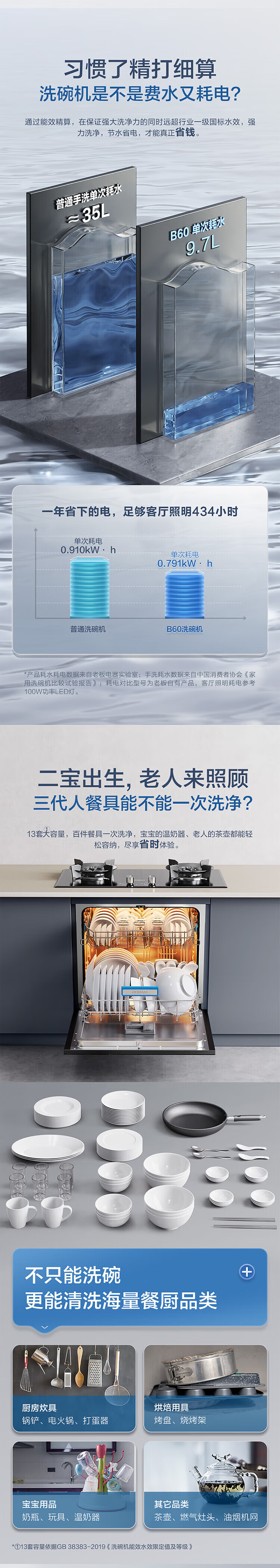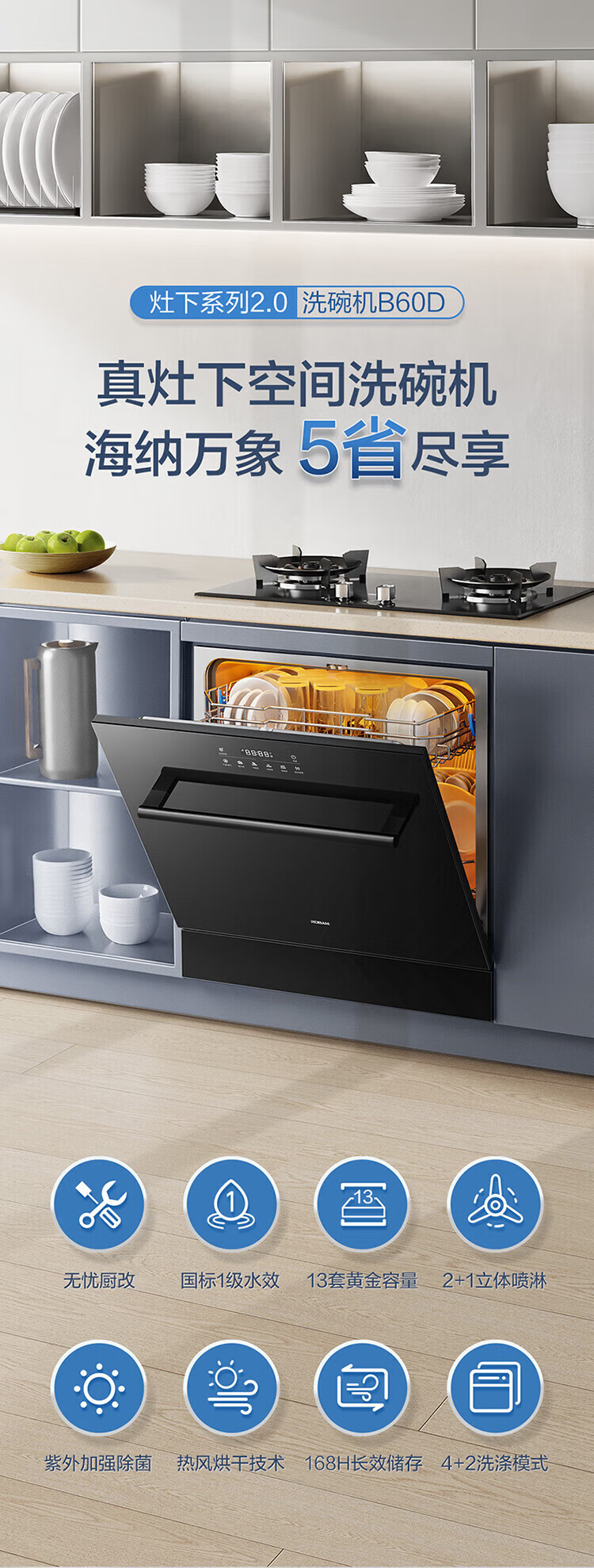 Robam B60D built-in dishwasher, 13 sets of upgraded capacity, 168H hot air drying, powerful UV sterilization, household dishwasher, integrated cleaning, drying and storage, can be installed under the stove, B60D dishwasher upgraded model