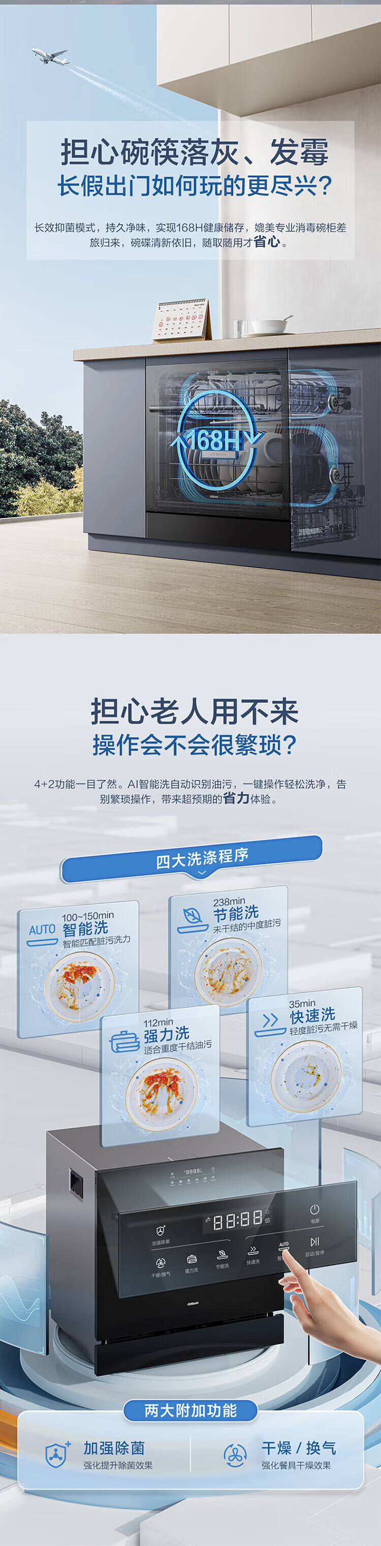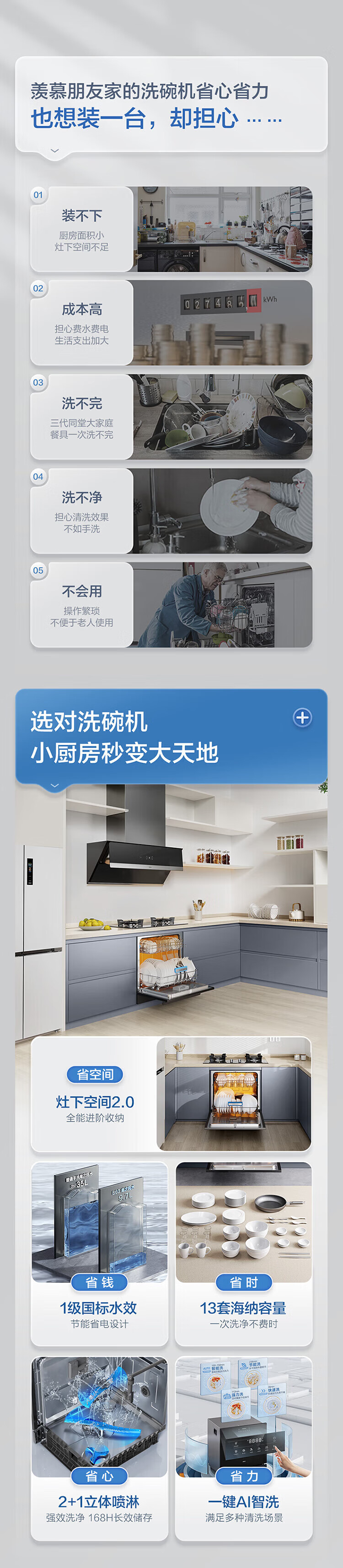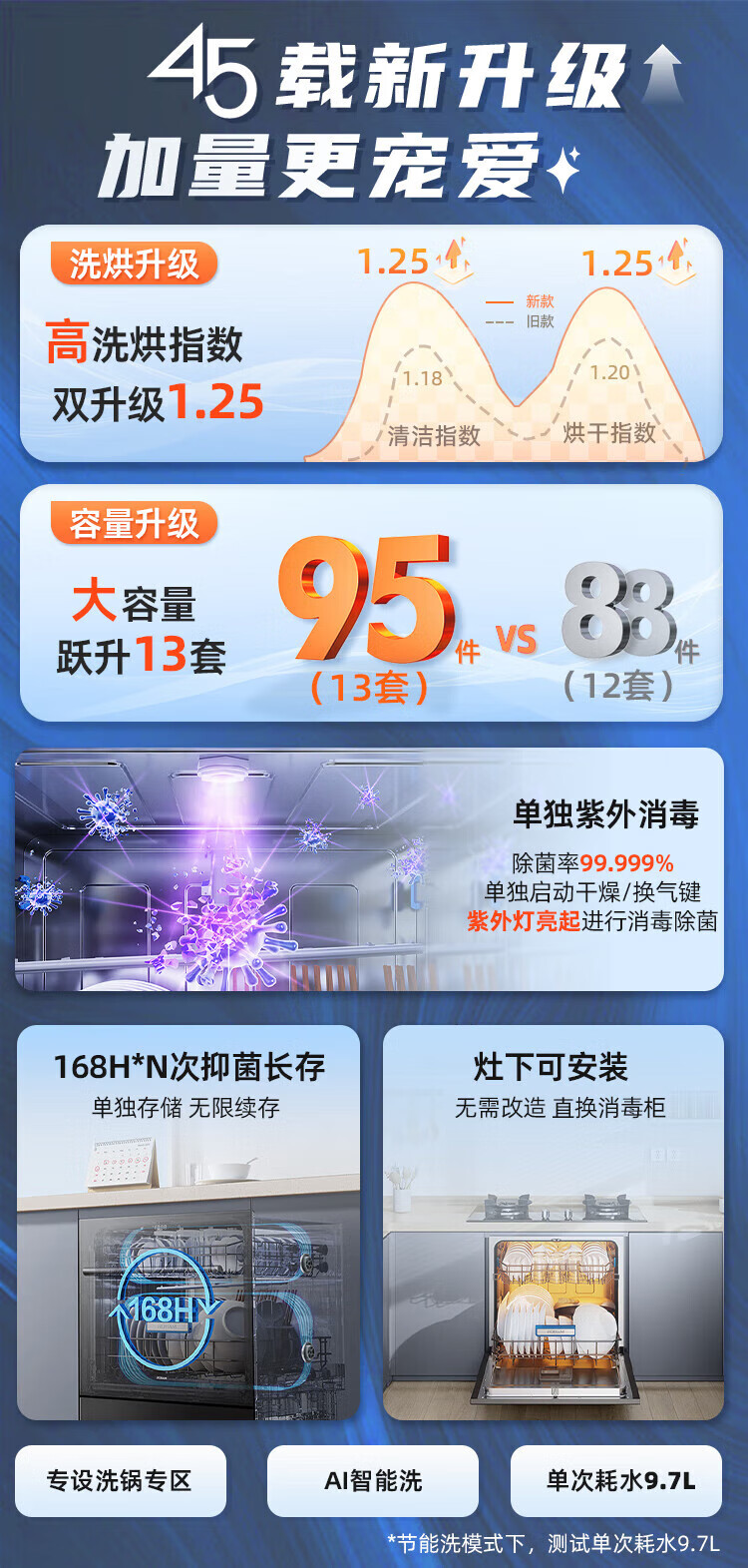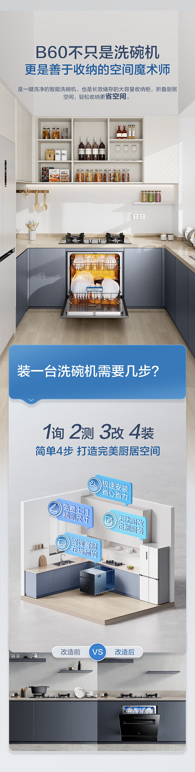 Robam B60D built-in dishwasher, 13 sets of upgraded capacity, 168H hot air drying, powerful UV sterilization, household dishwasher, integrated cleaning, drying and storage, can be installed under the stove, B60D dishwasher upgraded model