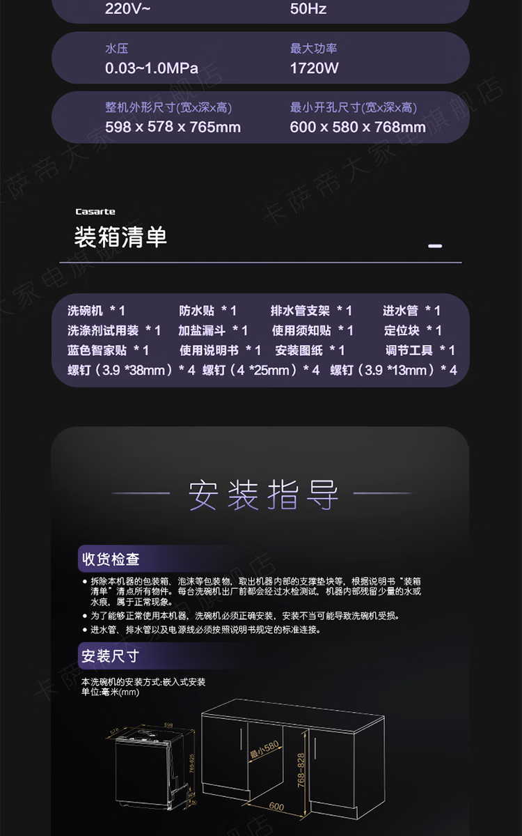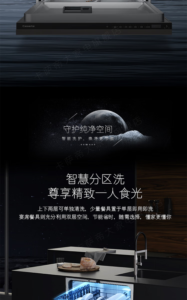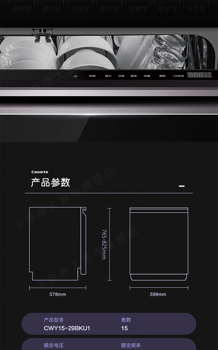Casarte (Casarte) 15 sets of Asian dishwashers, flat straight built-in partitioned washing, smart door opening, quick drying, WIFI intelligent control CWY15-29BKU1 15 sets of dishwashers