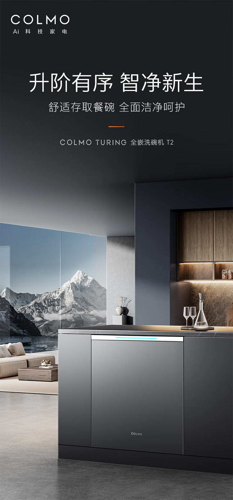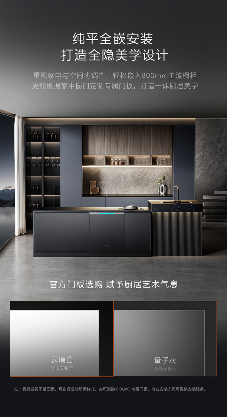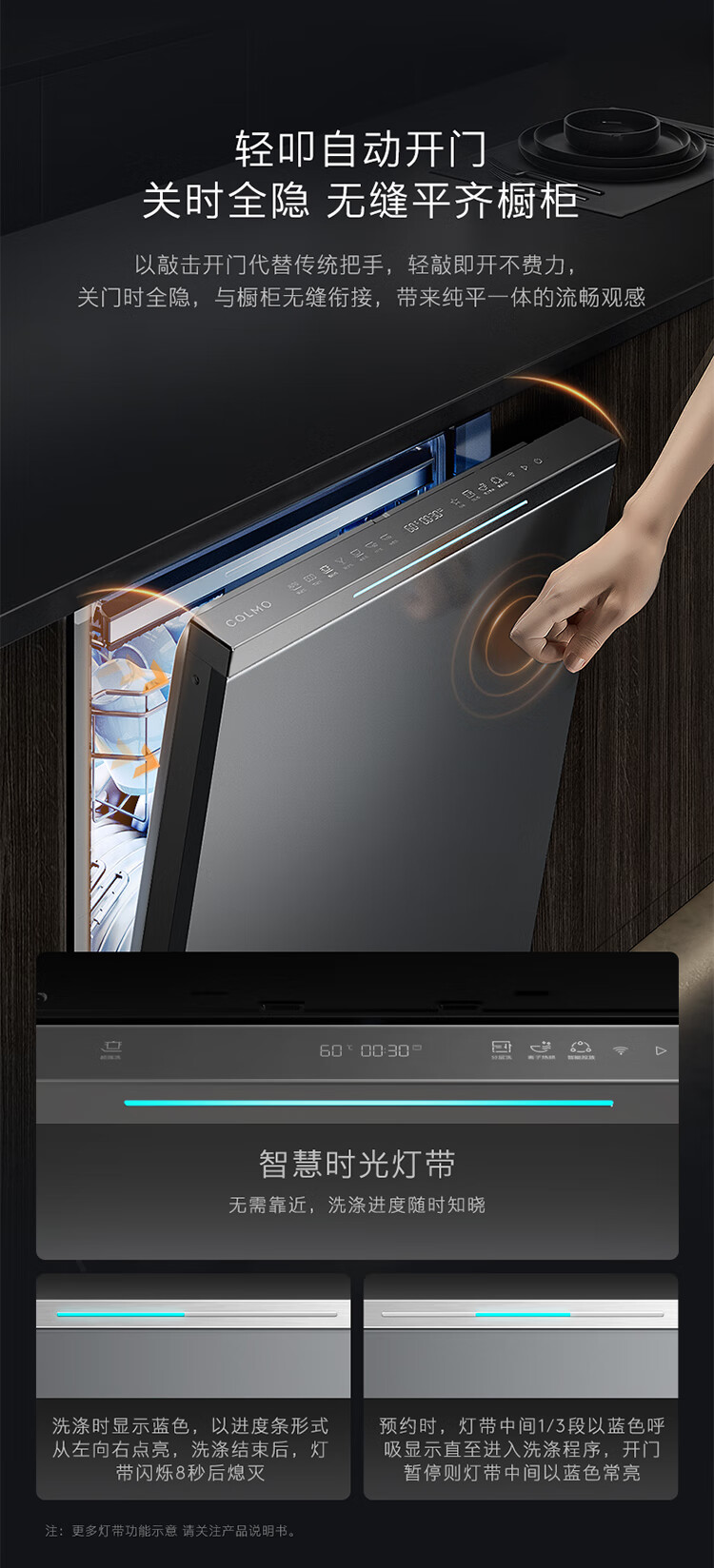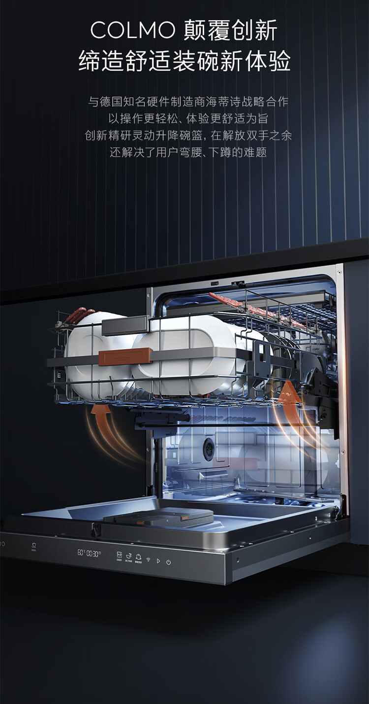 COLMO Turing Dishwasher T2 18 sets of large-capacity household embedded smart lifting bowl baskets, knock to open the door, imitation hand washing, ion heat drying, one-button sterilization and 7-day fresh storage, 18 sets of fully embedded dishwashers T2 (excluding panel)