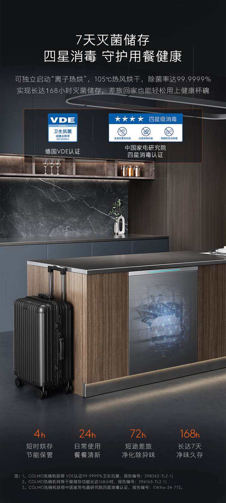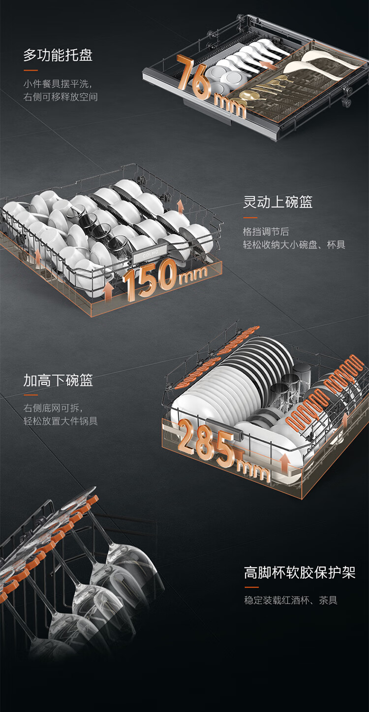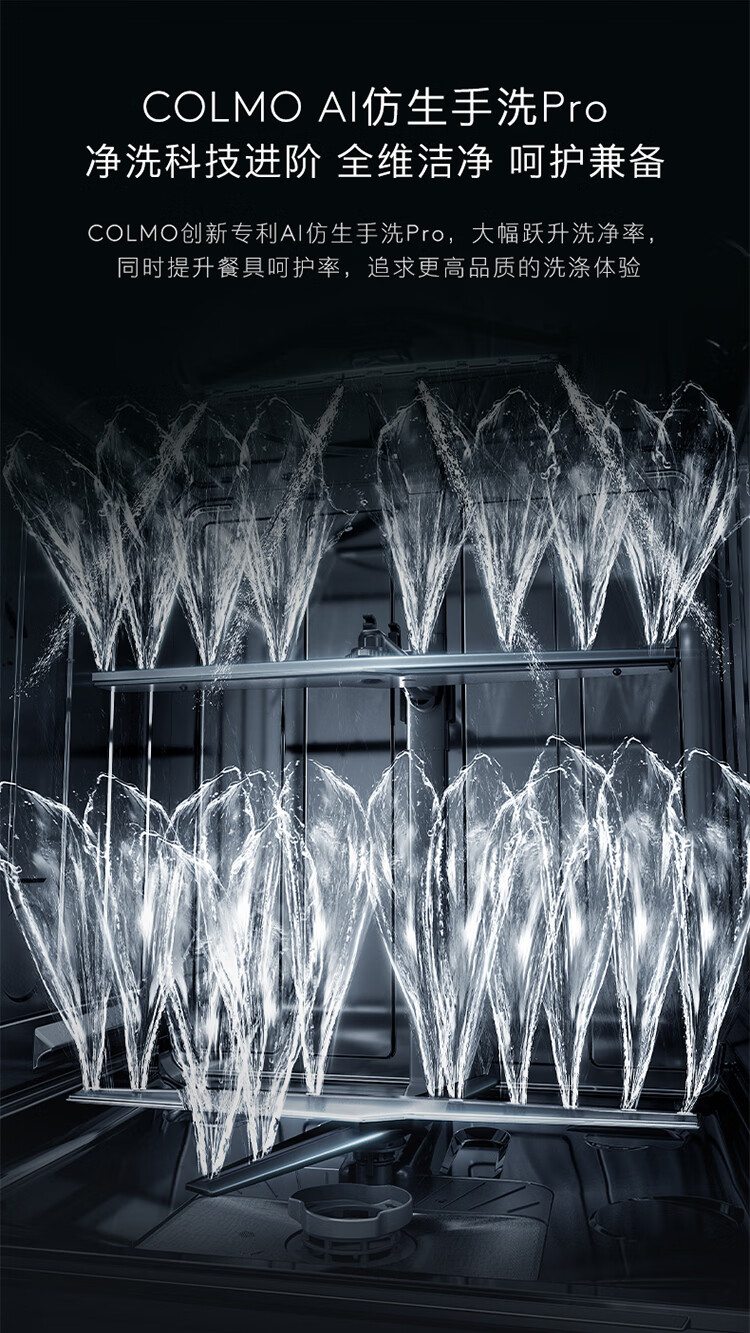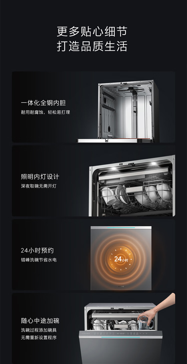 COLMO Turing Dishwasher T2 18 sets of large-capacity household embedded smart lifting bowl baskets, knock to open the door, imitation hand washing, ion heat drying, one-button sterilization and 7-day fresh storage, 18 sets of fully embedded dishwashers T2 (excluding panel)