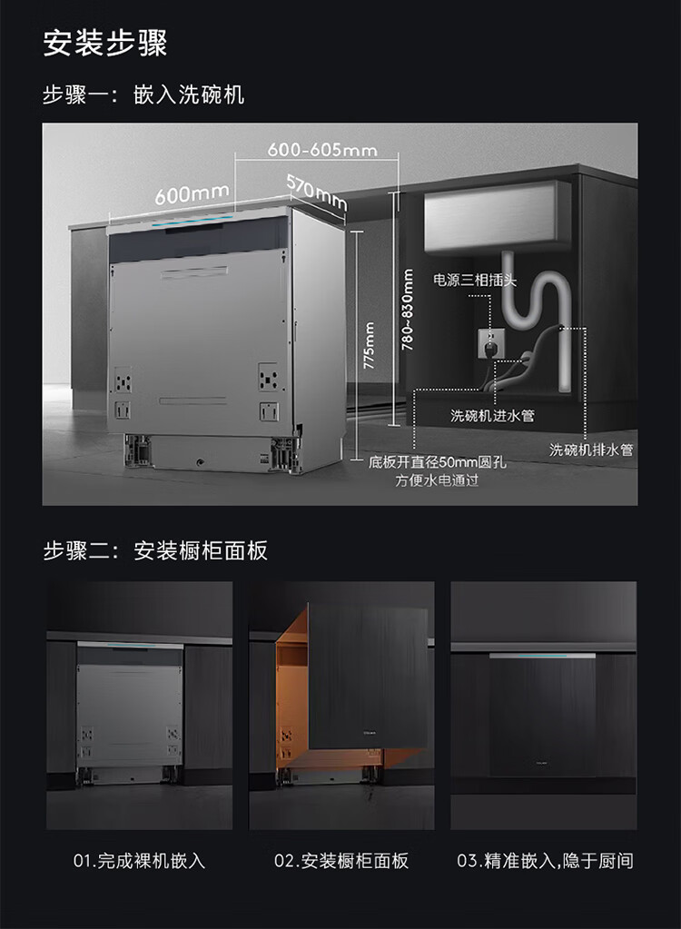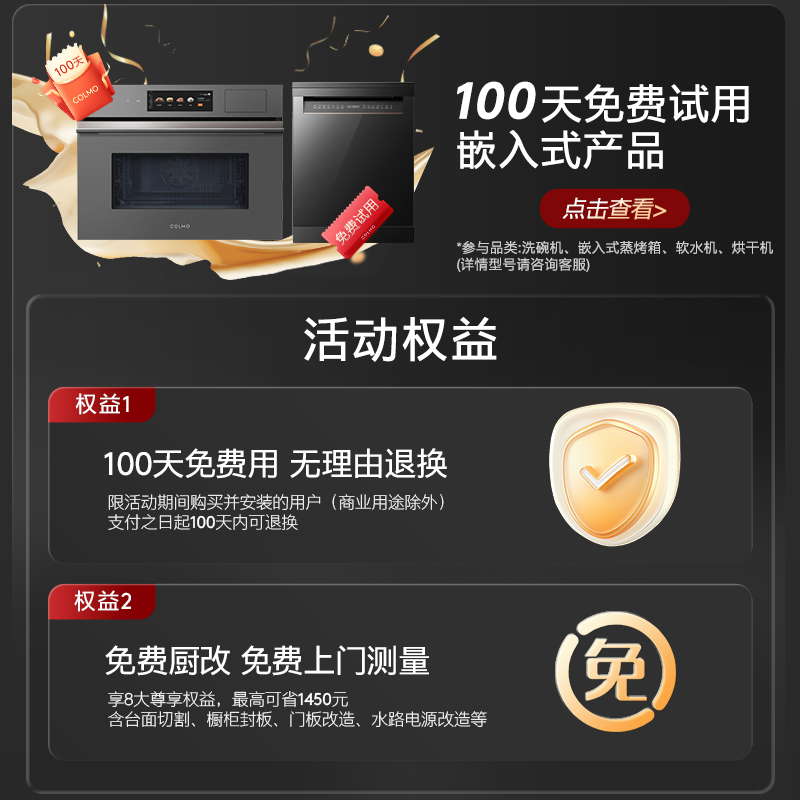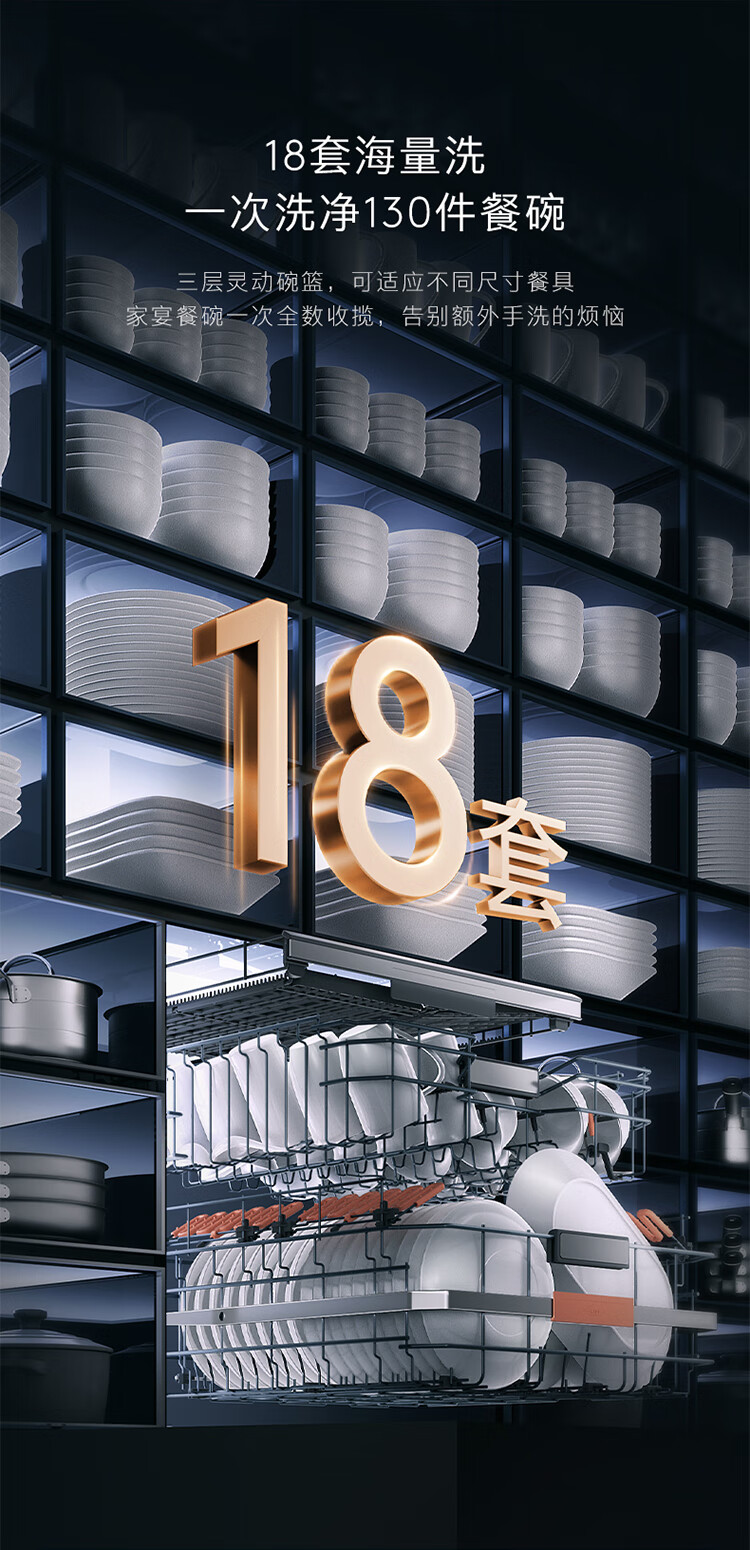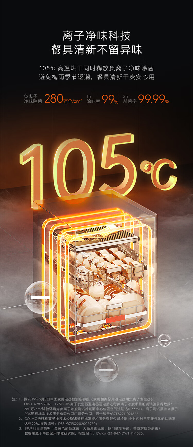 COLMO Turing Dishwasher T2 18 sets of large-capacity household embedded smart lifting bowl baskets, knock to open the door, imitation hand washing, ion heat drying, one-button sterilization and 7-day fresh storage, 18 sets of fully embedded dishwashers T2 (excluding panel)