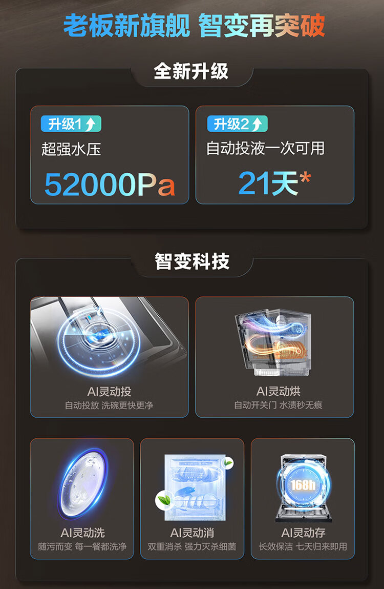 Boss (Robam) 21 days of smart washing, smart cabin salt series G1P white, 21 sets + 3 large-capacity built-in dishwashers, automatic opening and closing doors, independent drying, G1P national subsidy, new products, 21 sets of AI smart cabins, G1P white, 21 sets, automatic opening and closing doors, quick drying