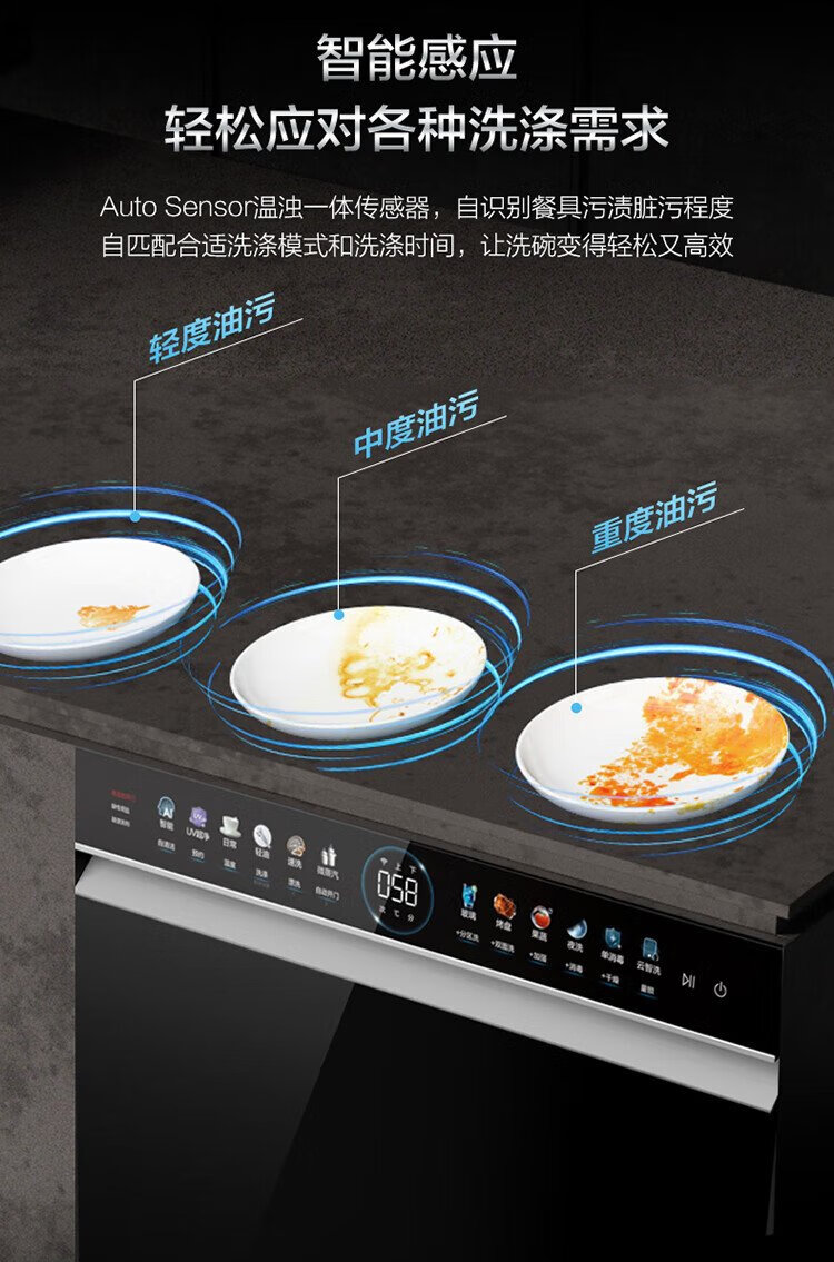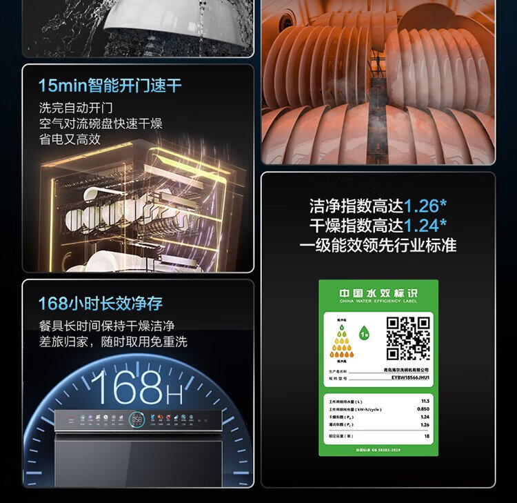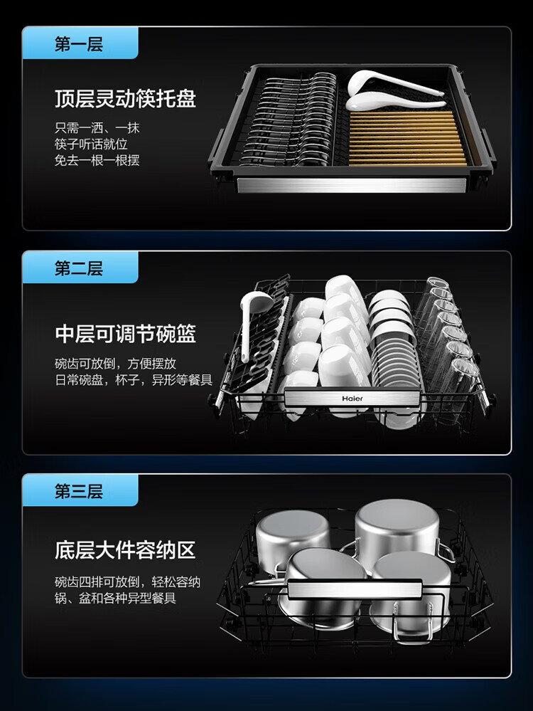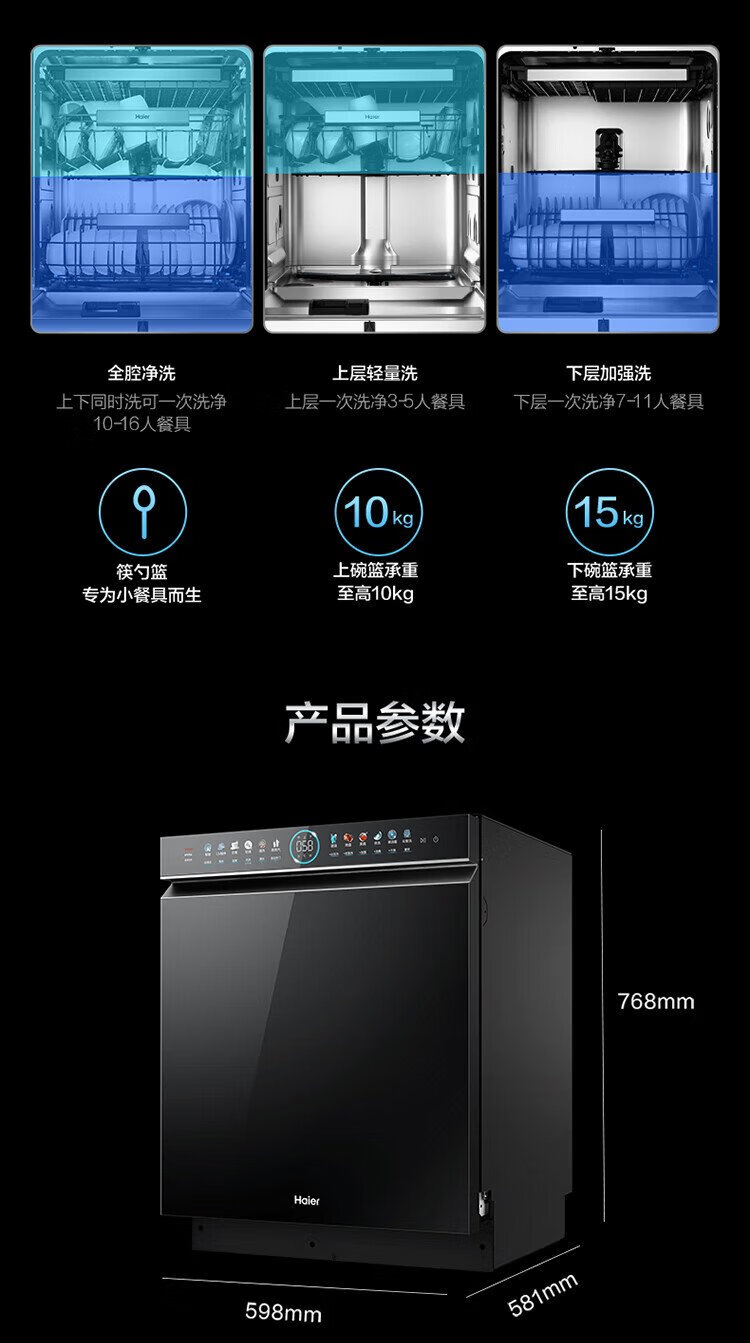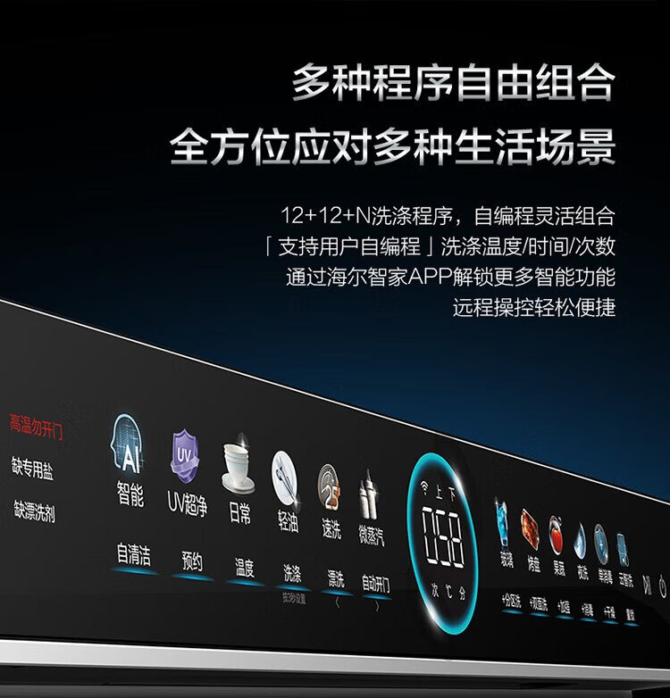 Haier W5000Plus double-sided washing household built-in fully automatic dishwasher upgrade 18 sets + 3 large-capacity UV double sterilization 7-day long-term storage smart door opening quick drying AI intelligent double-sided washing EYBW18566JHU1 empty black