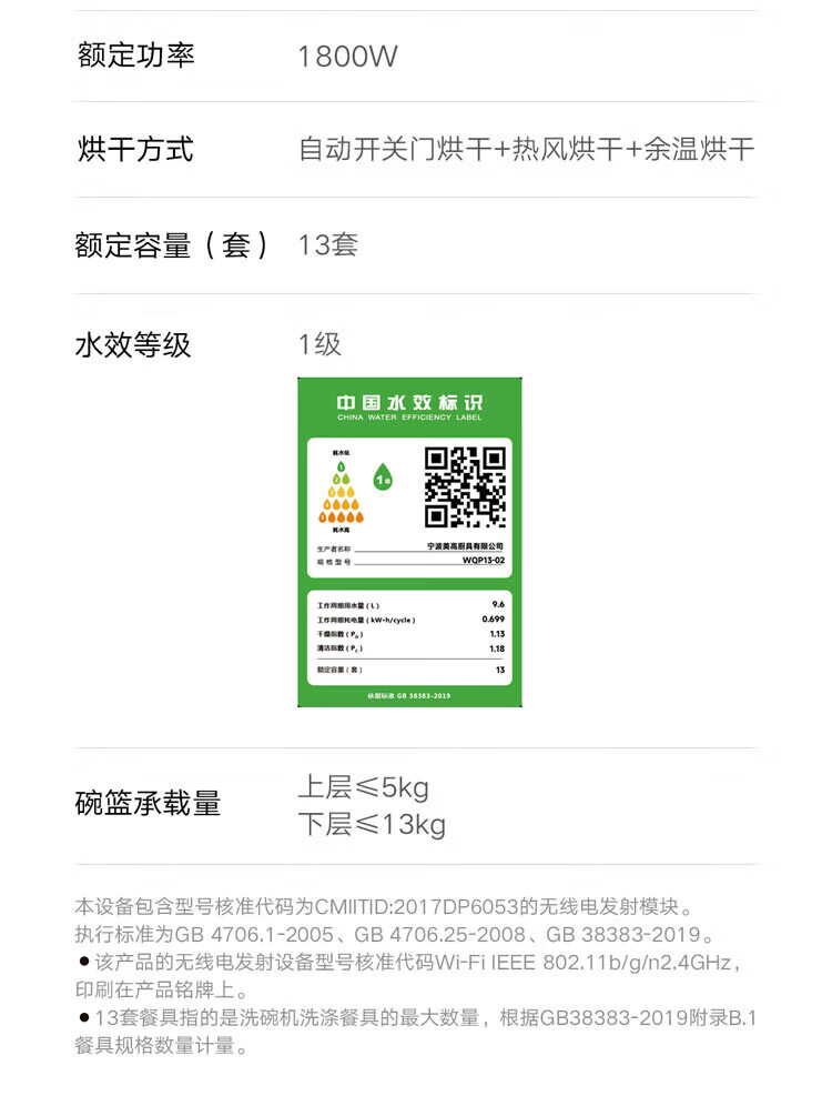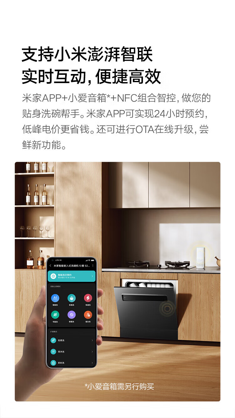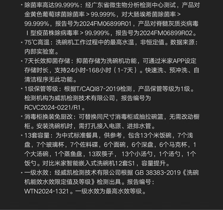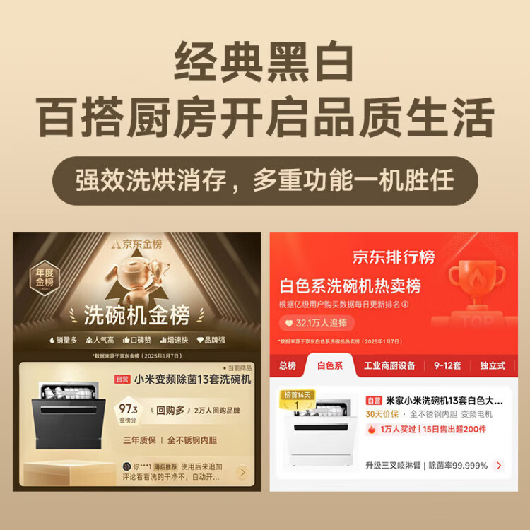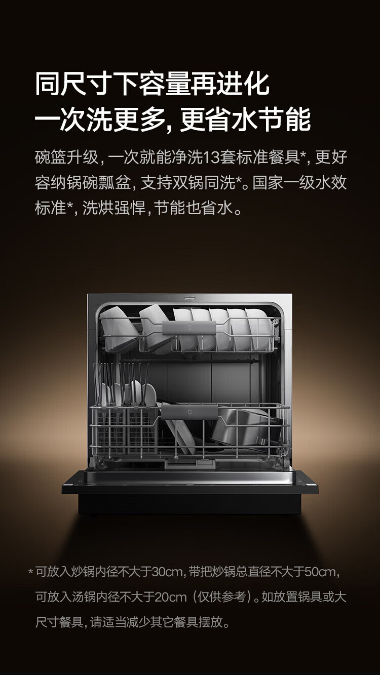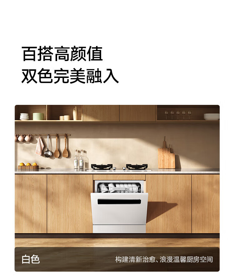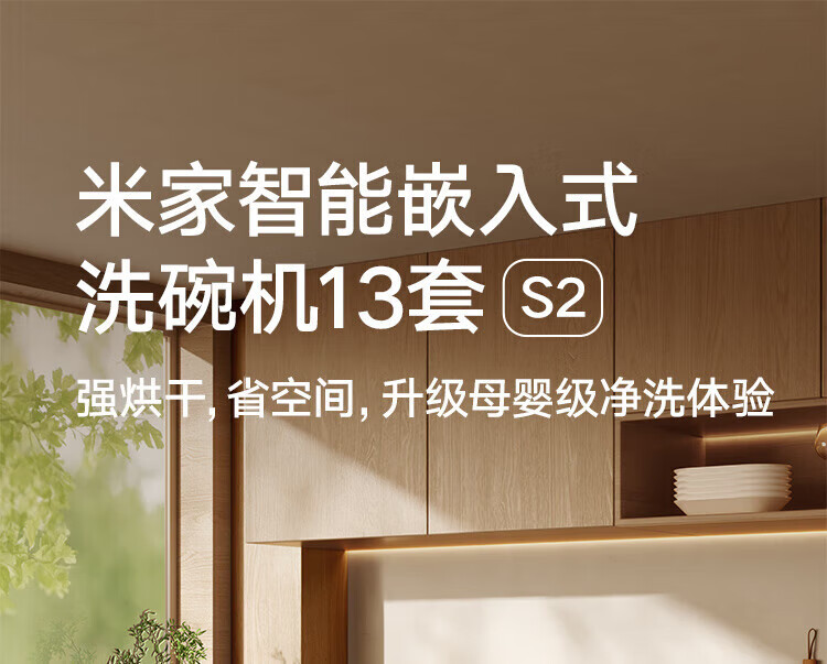 Mijia Xiaomi dishwasher 13 sets white large-capacity whitening series S2 hot air drying stove embedded washing, drying and storage integrated frequency conversion sterilization national government subsidy 20% 13 sets white