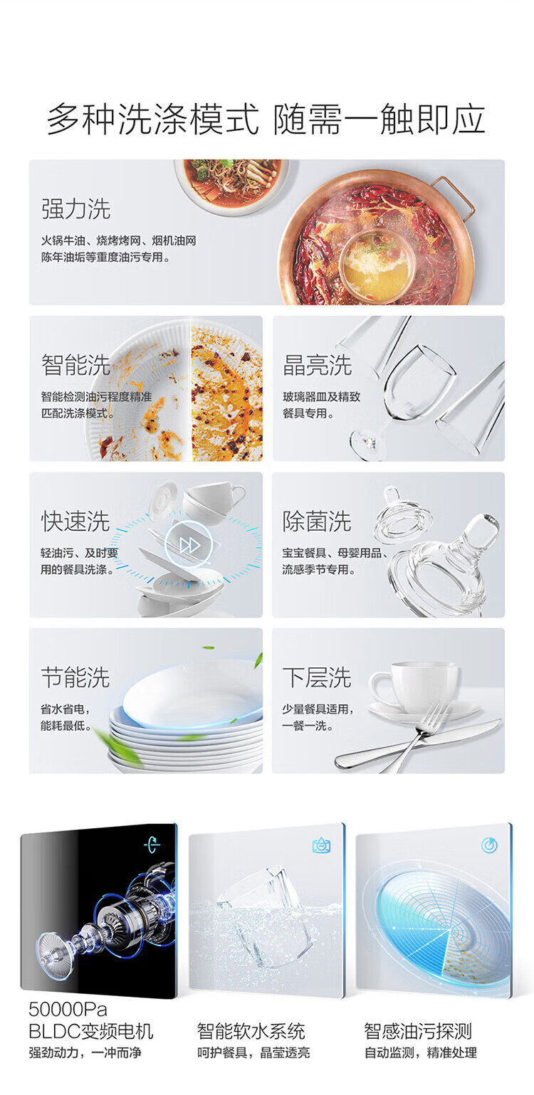 Robam salt series G1Ultra dishwasher 17 sets of large-capacity smart door 0-bacteria dishwasher, embedded heavy oil removal, hot air drying and sterilization, 168h long-term storage, sea salt white
