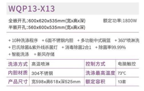 Murata (citin) WOP13-X13 dishwasher, hot air + automatic door opening and closing + residual temperature condensation, smart dishwasher, household embedded bench-mounted dual-purpose dishwasher, level 1 water efficiency, black