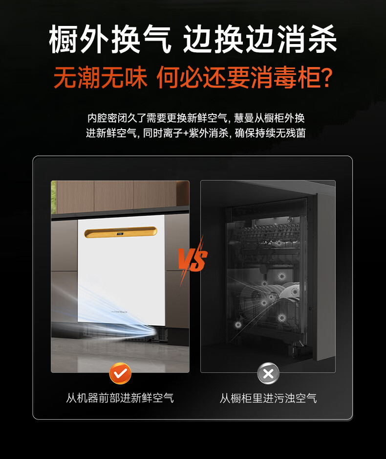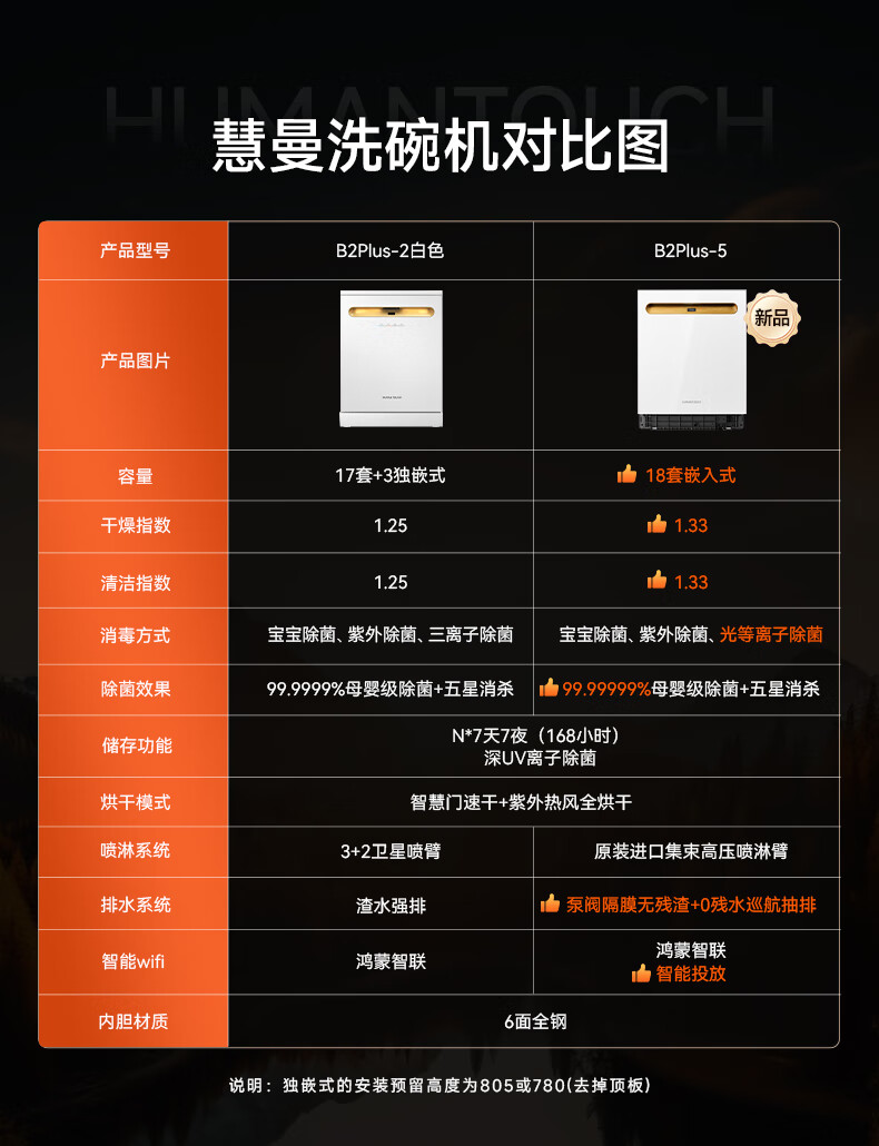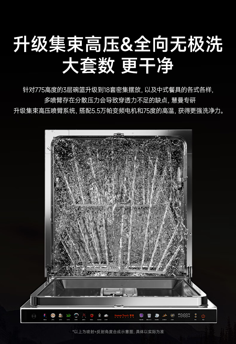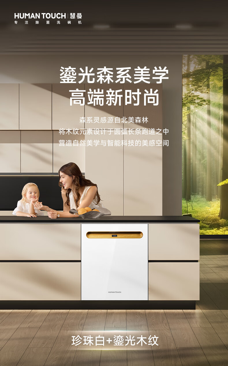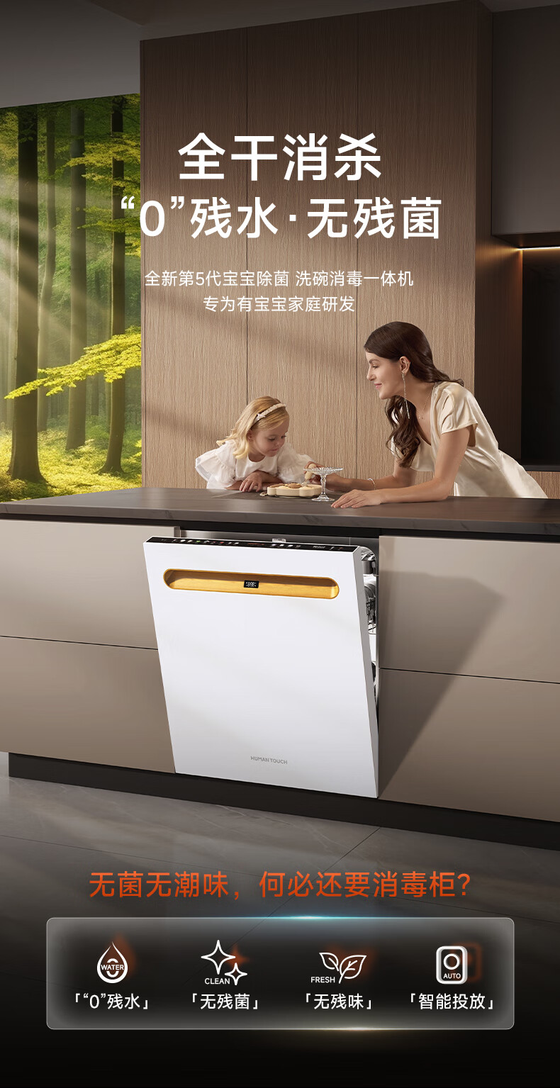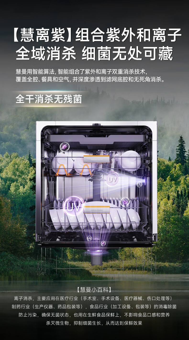 Huiman Home Appliance Renewal Subsidy American HUMANTOUCH dishwasher embedded household fully automatic door drying 18 sets + 3 streamers b2plus sterilization and disinfection all-in-one machine embedded gilded forest aesthetics B2 Plus-5 black