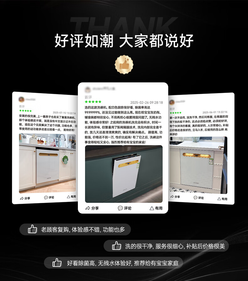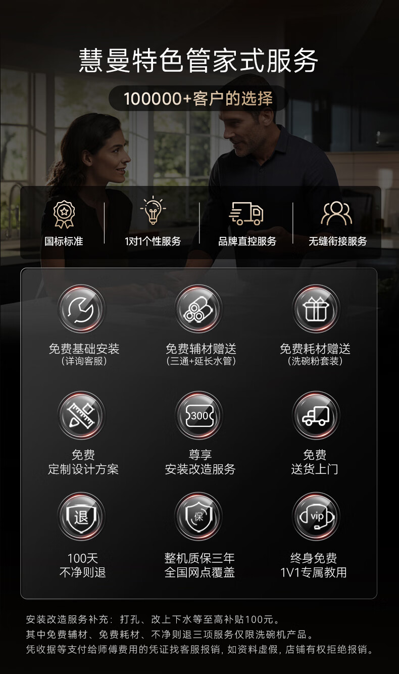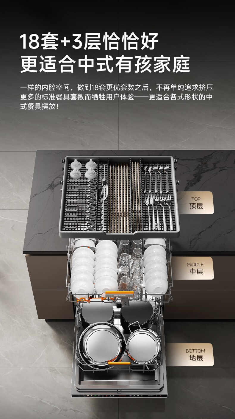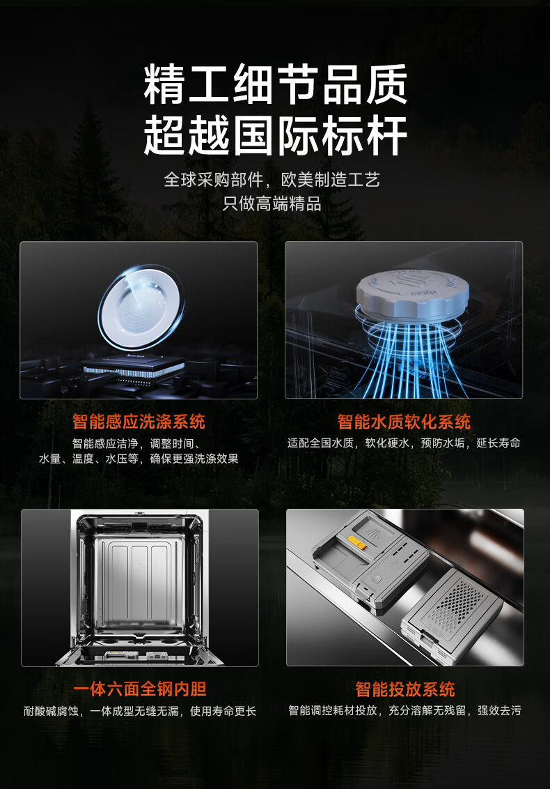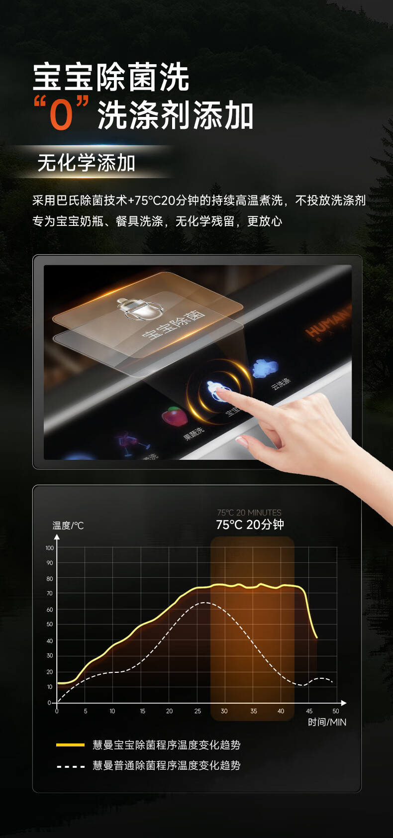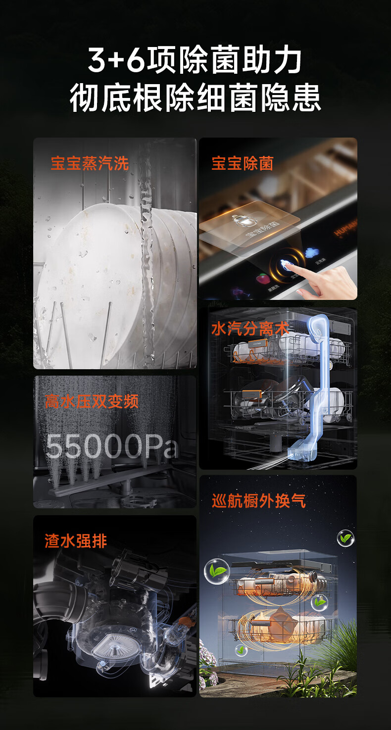 Huiman Home Appliance Renewal Subsidy American HUMANTOUCH dishwasher embedded household fully automatic door drying 18 sets + 3 streamers b2plus sterilization and disinfection all-in-one machine embedded gilded forest aesthetics B2 Plus-5 black