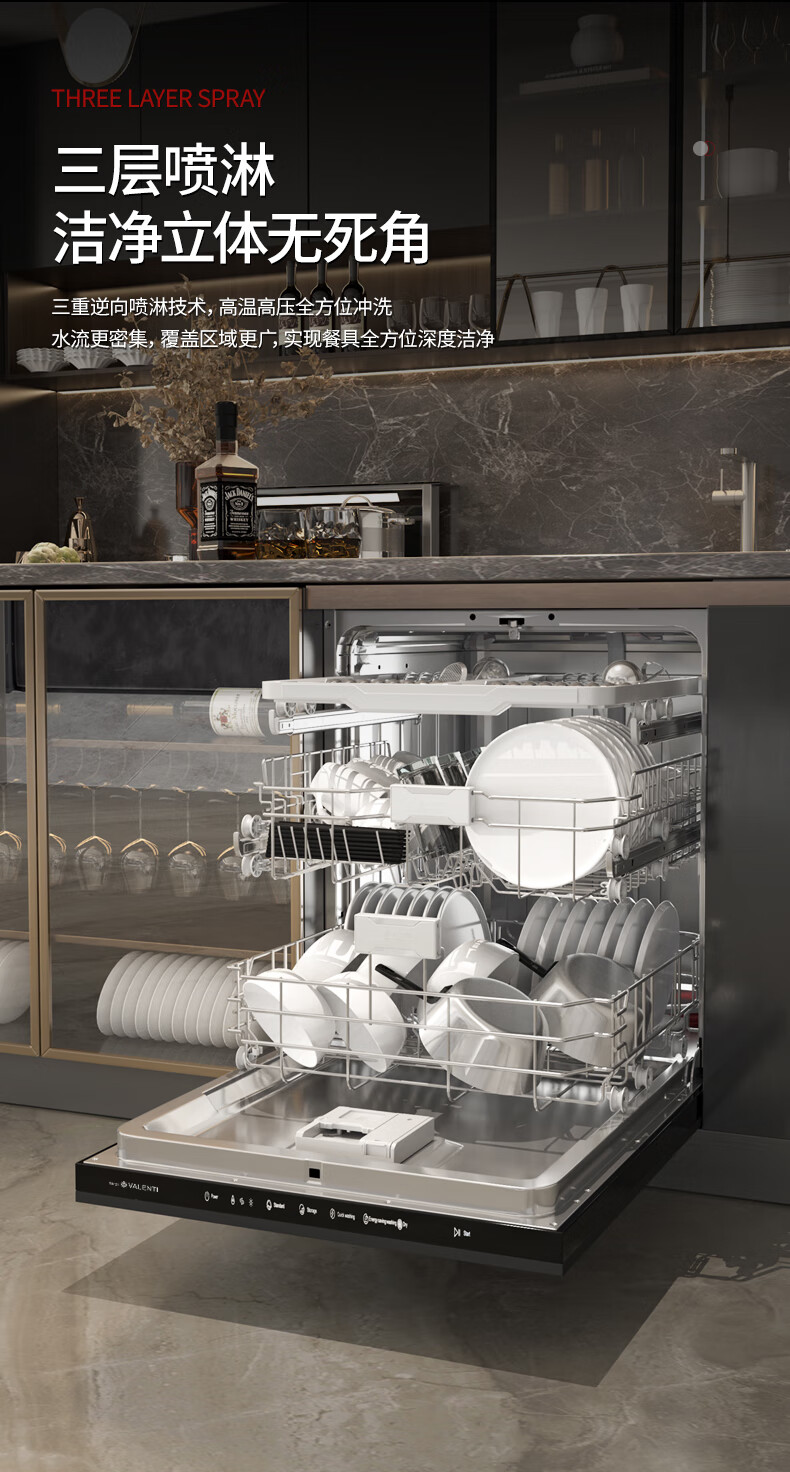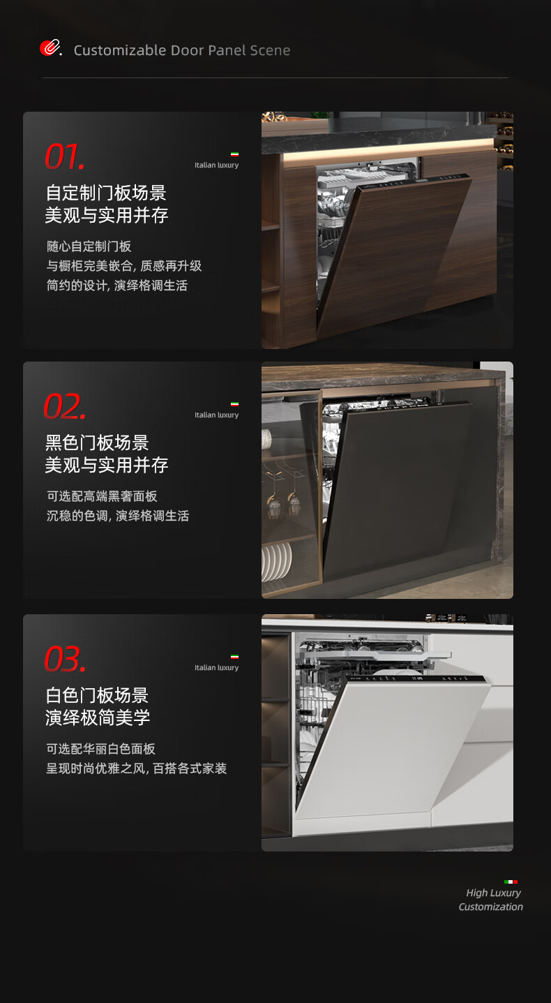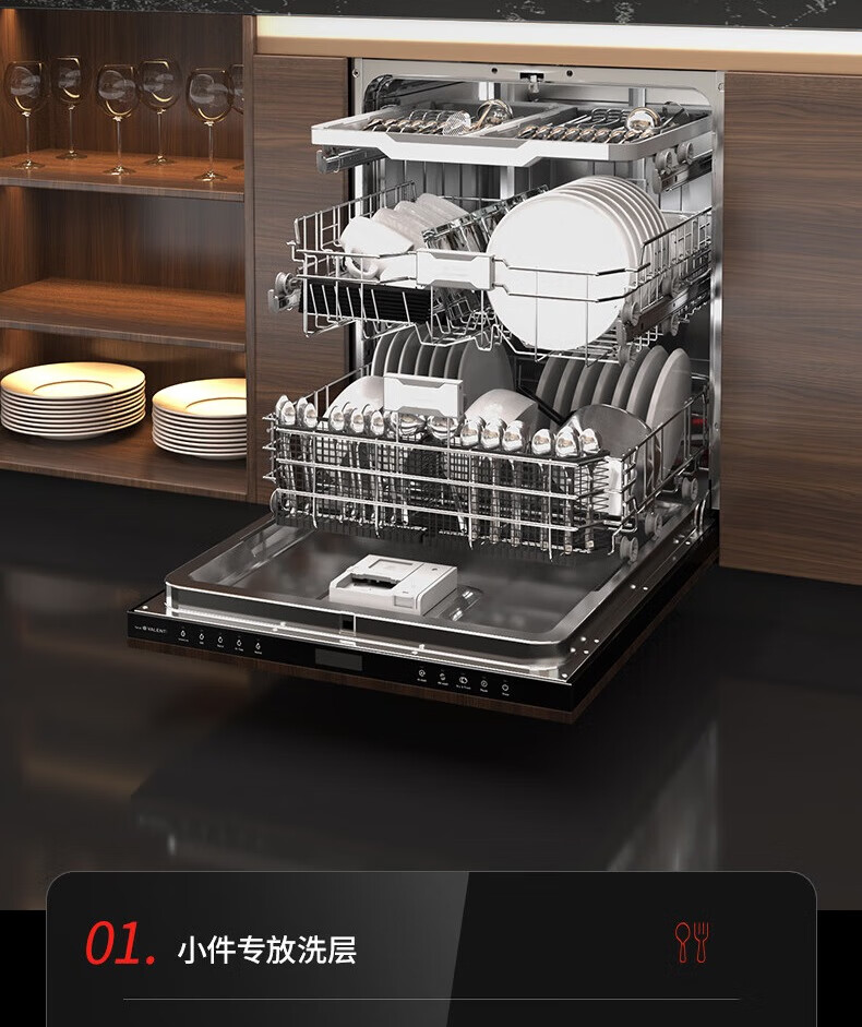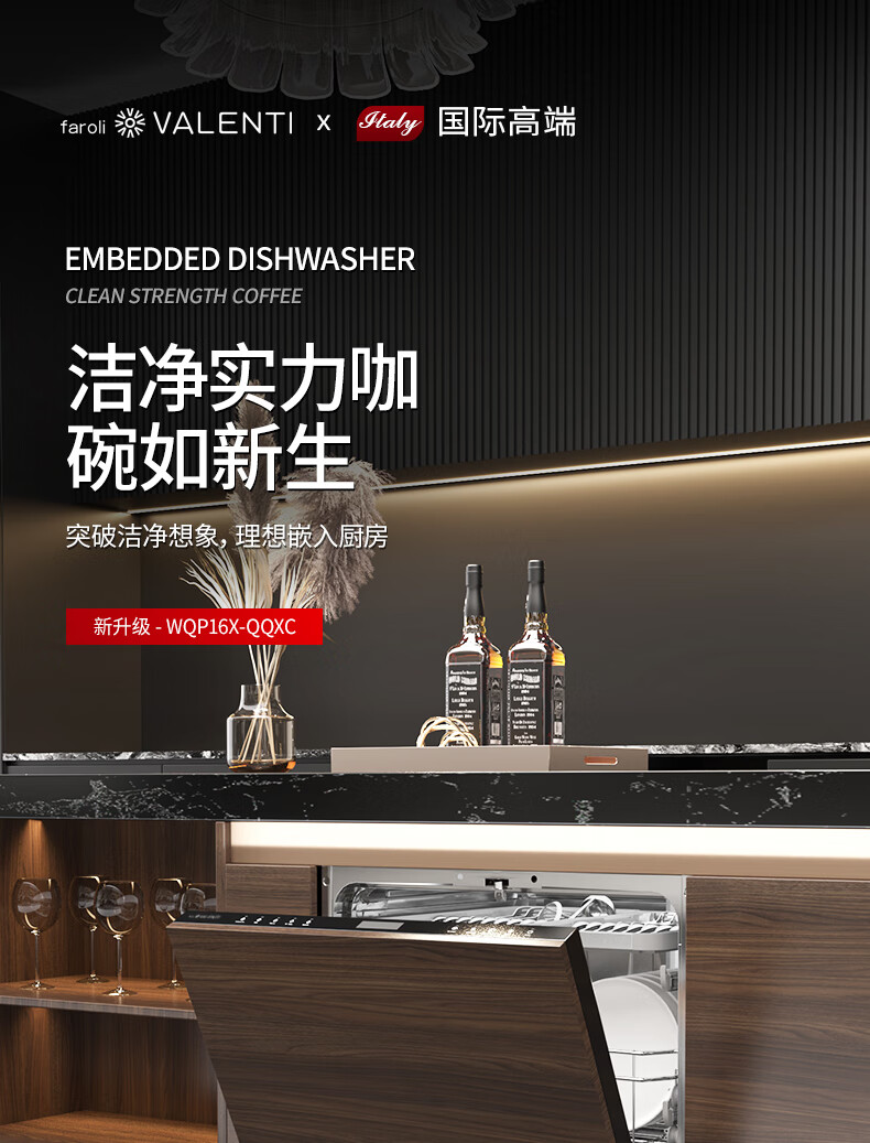 FAROLI&VALENTI built-in dishwasher 18 sets large capacity independent double drying high temperature sterilization fully automatic home custom door panel knock induction door opening black