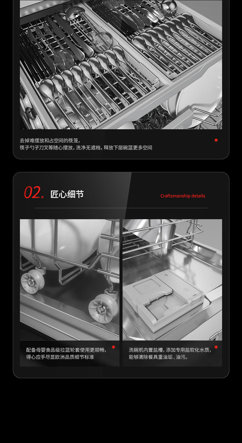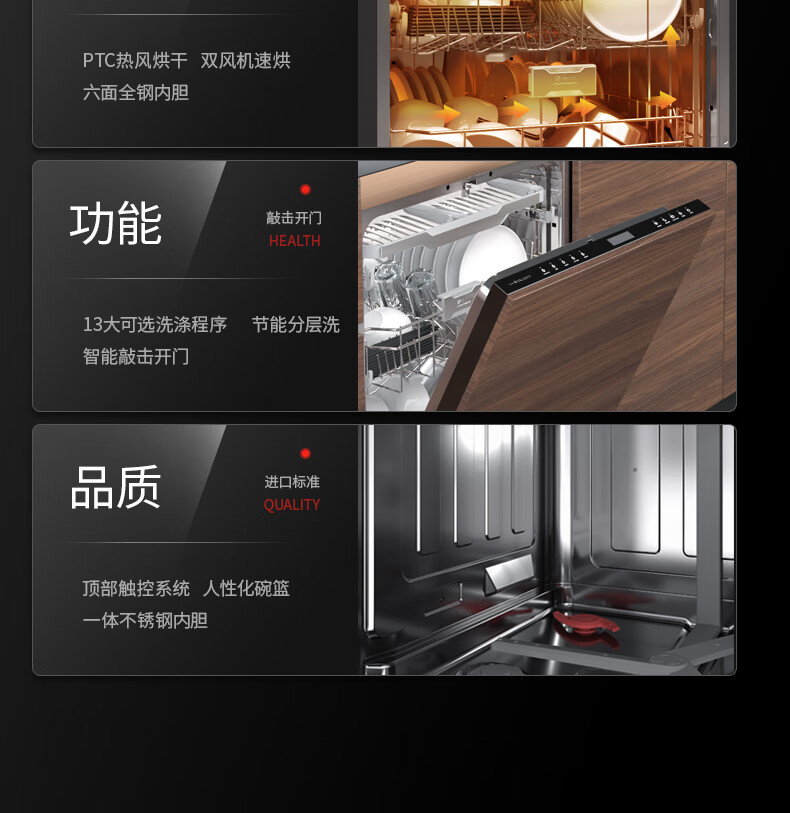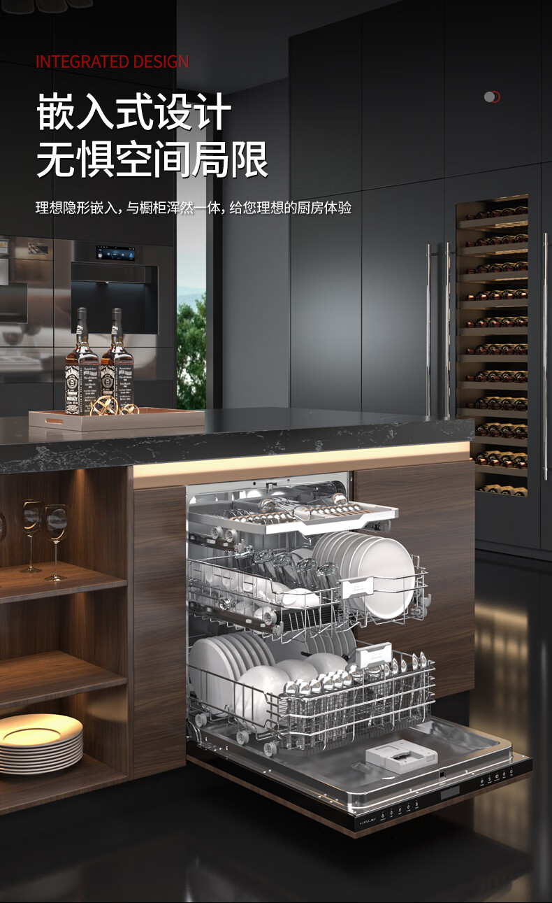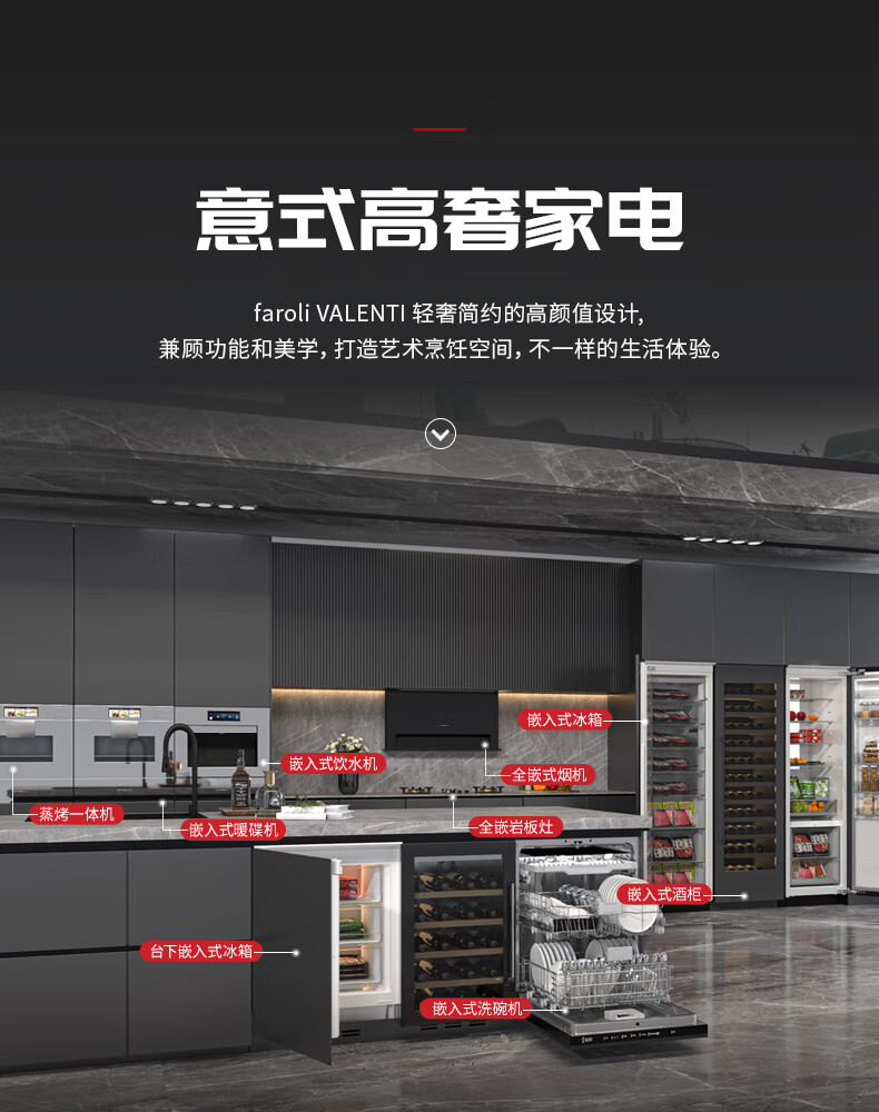 FAROLI&VALENTI built-in dishwasher 18 sets large capacity independent double drying high temperature sterilization fully automatic home custom door panel knock induction door opening black