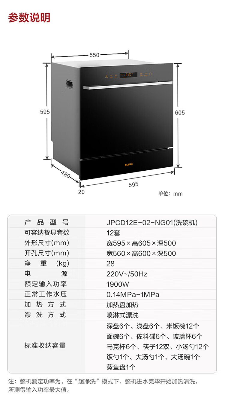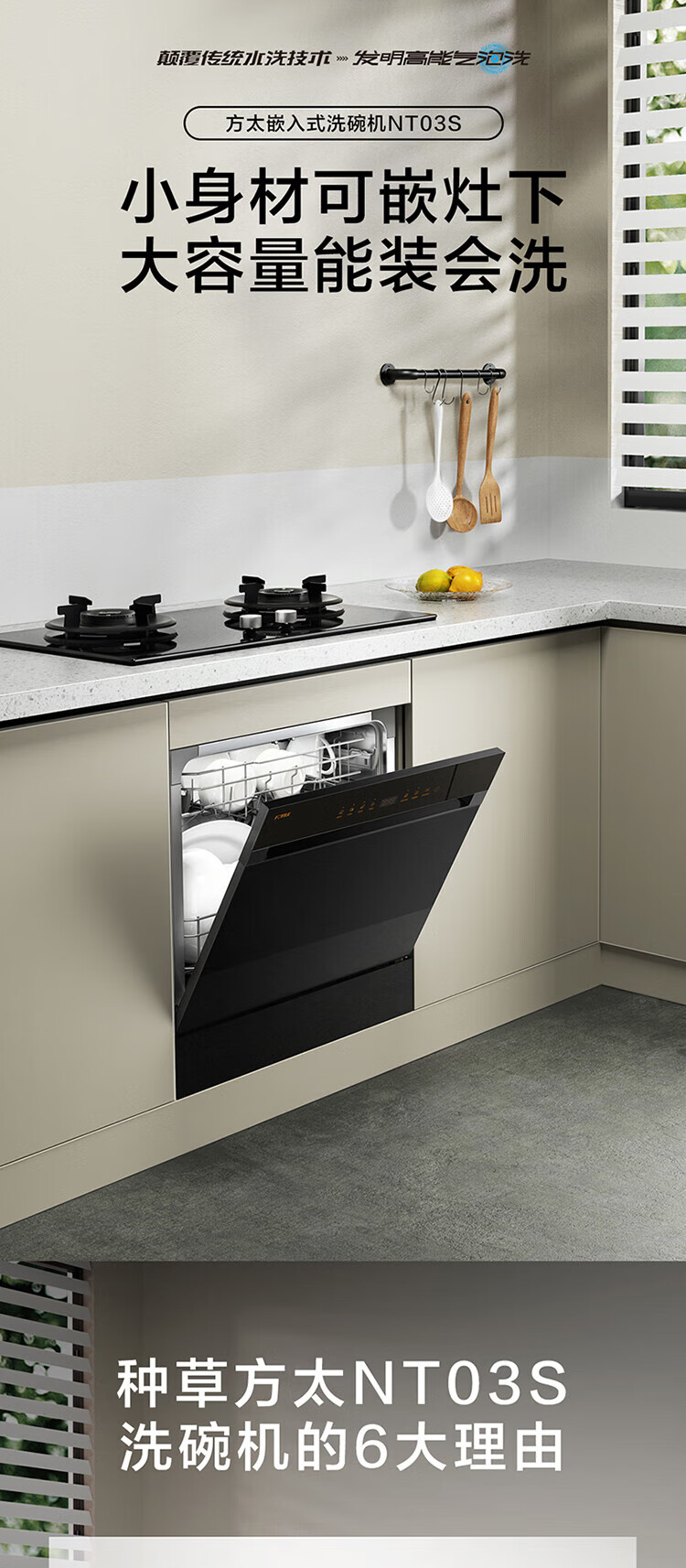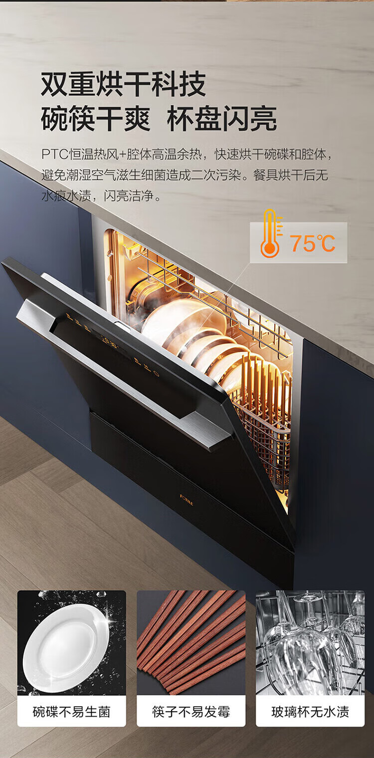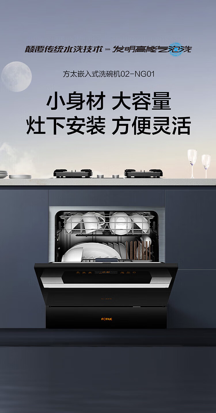 FOTILE household built-in dishwasher NT03S 12 sets of under-stove first-class water-efficiency sterilization and drying 4+2 washing programs large-capacity household NT03S integrated washing, disinfecting, drying and storage