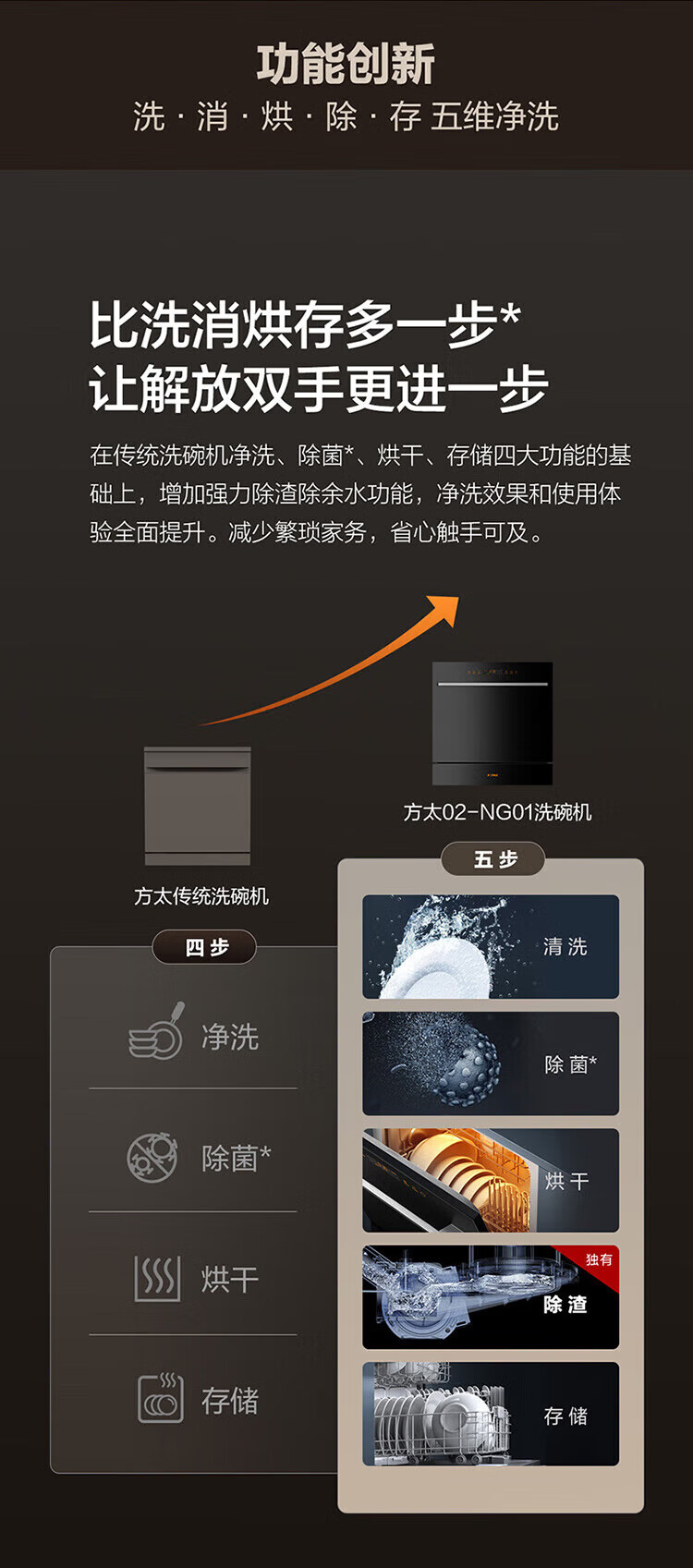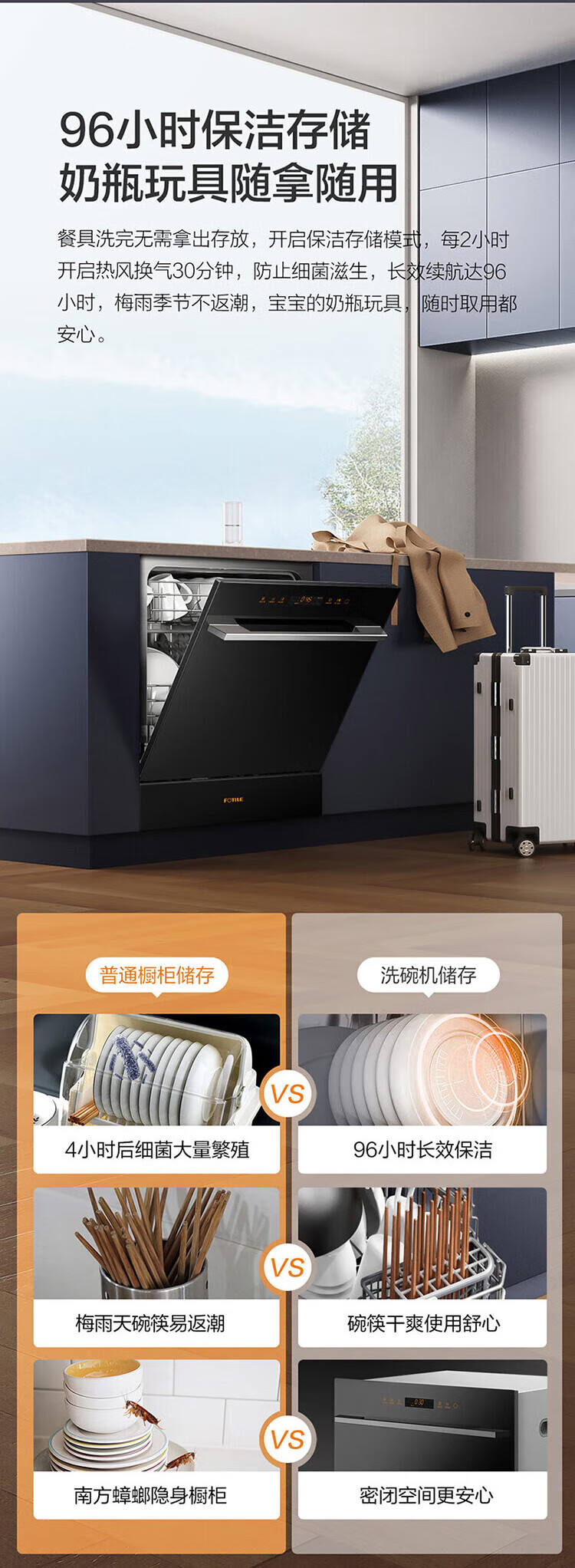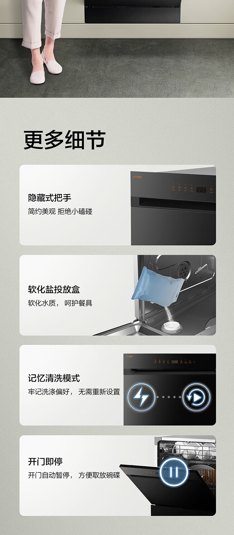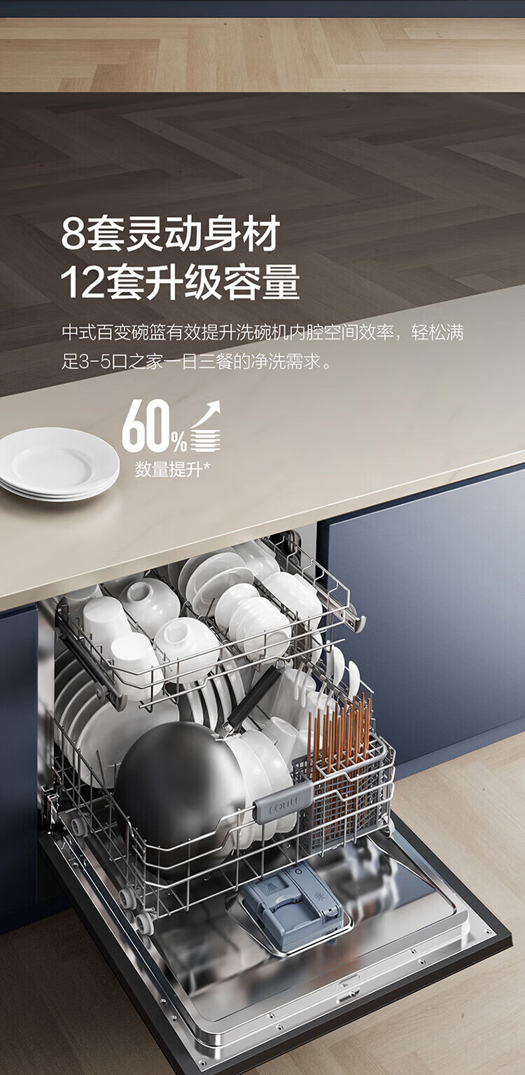 FOTILE household built-in dishwasher NT03S 12 sets of under-stove first-class water-efficiency sterilization and drying 4+2 washing programs large-capacity household NT03S integrated washing, disinfecting, drying and storage