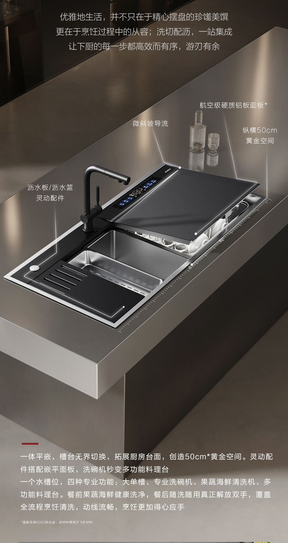 Fotile sink dishwasher 03-y1 The sink dishwasher is integrated with a built-in stainless steel cavity. You don’t have to bend over to wash dishes. You can wash seafood, fruits and vegetables. The dishwasher is on the right. 03-Y1