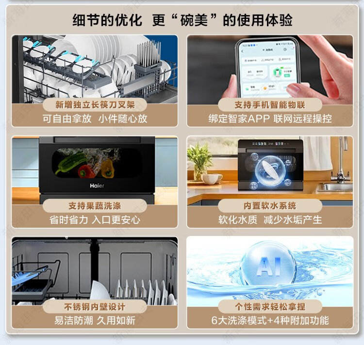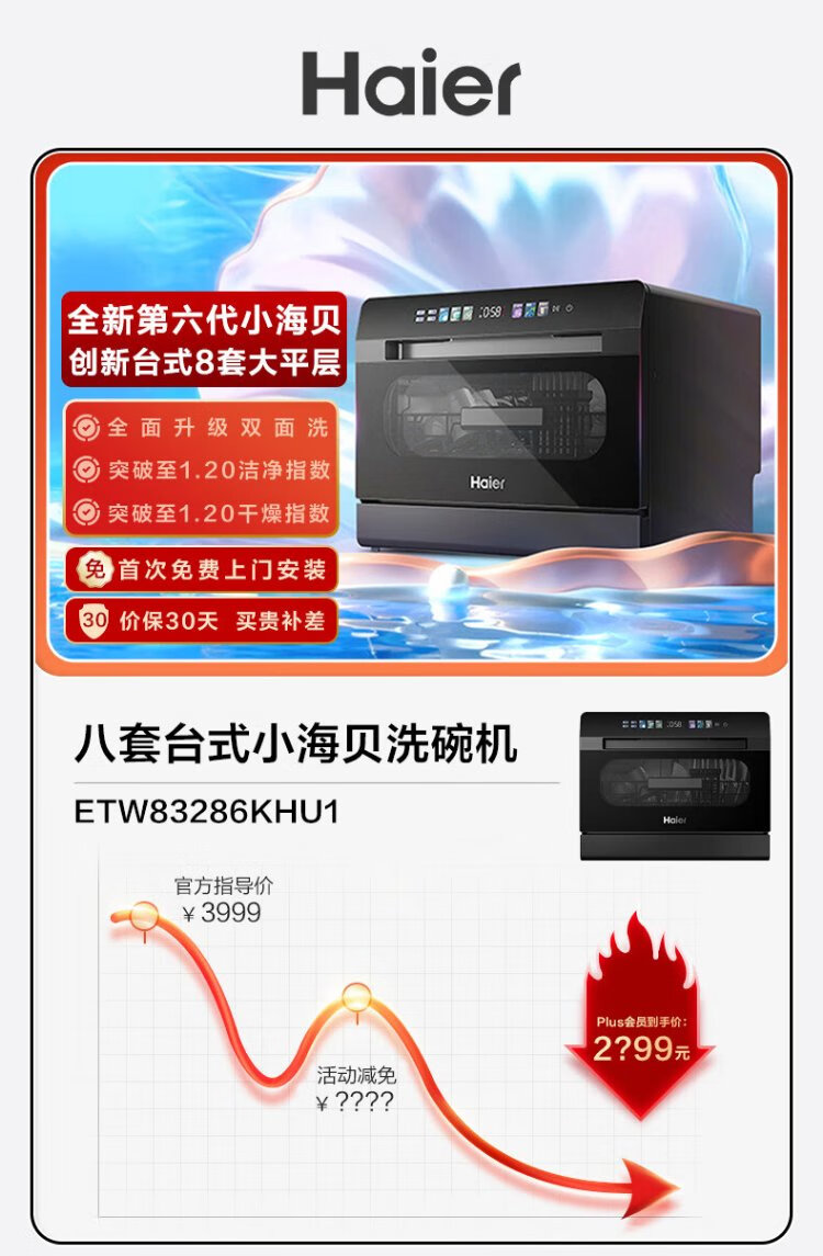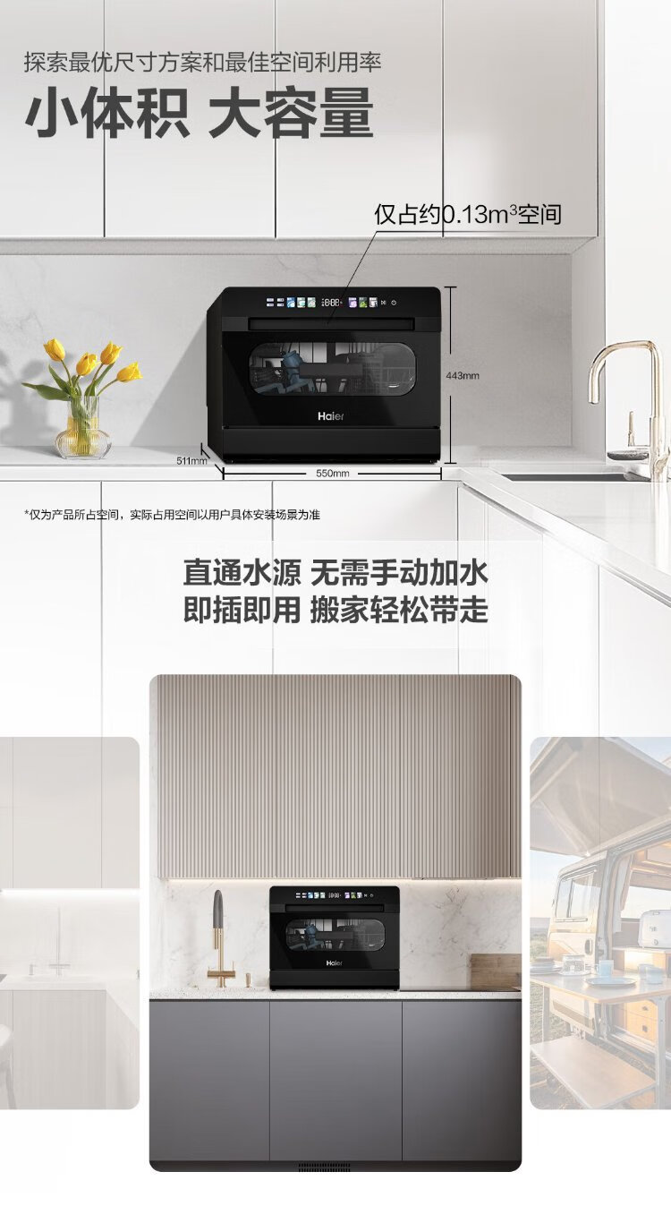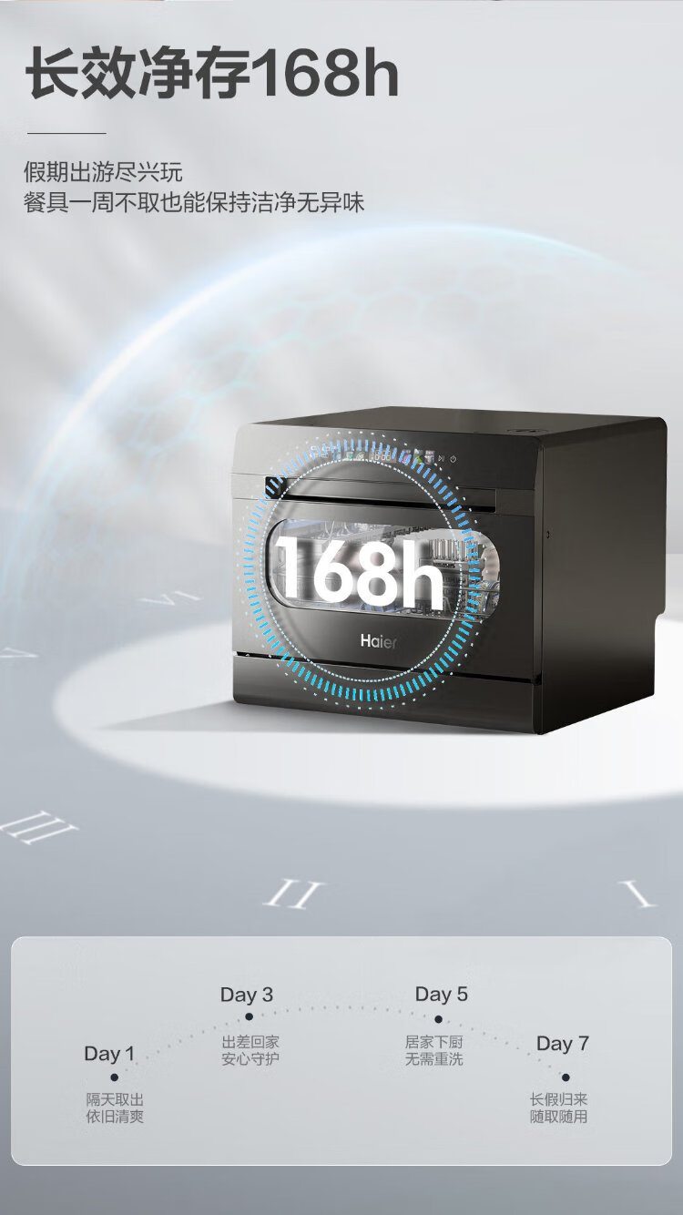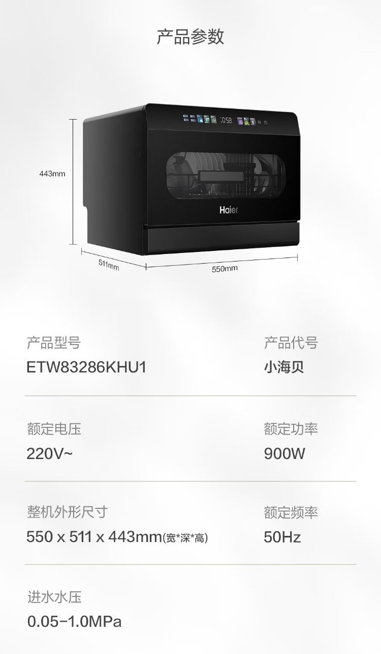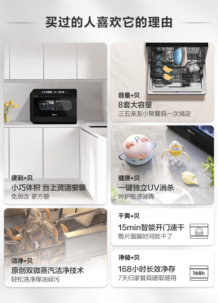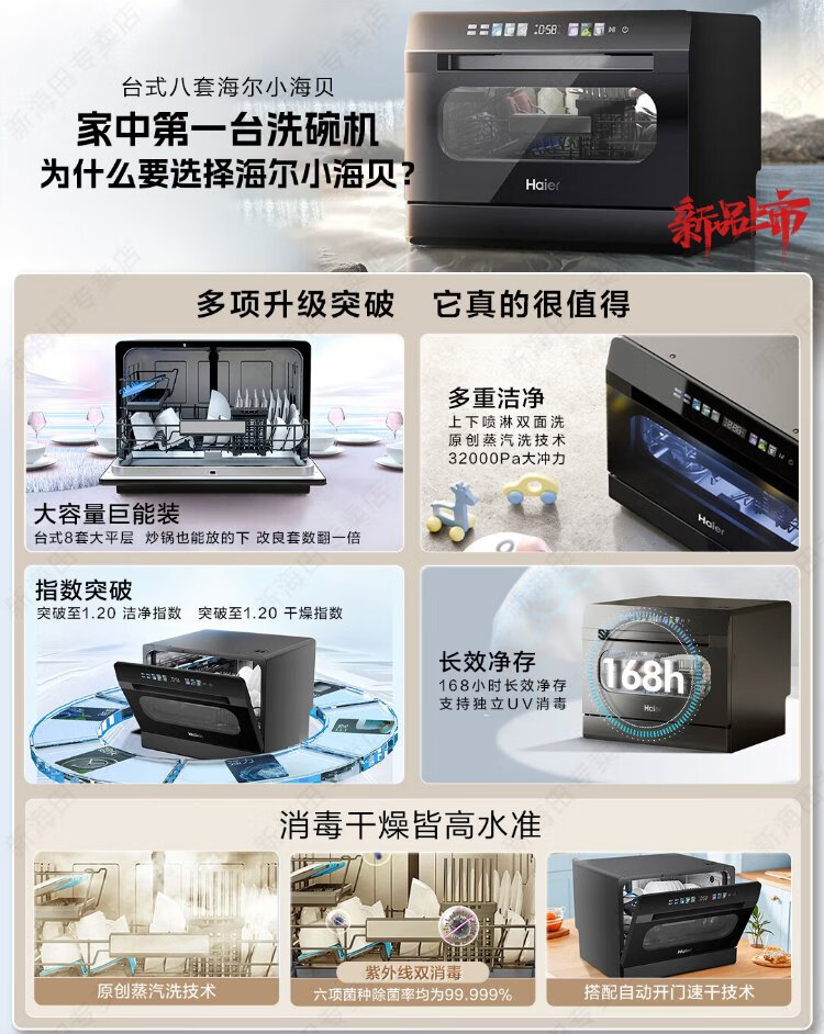 Haier 2025 new generation of Xiaohaibei 8 sets of desktop large flat dishwashers for home use fully automatic small color screen touch support independent UV disinfection automatic door opening Haier 2025 launch of 8 sets of desktop new generation of Xiaohaibei