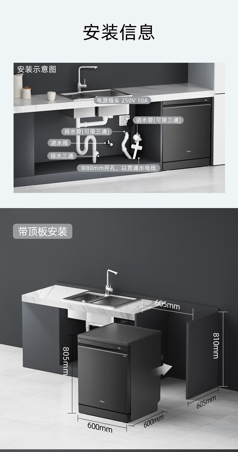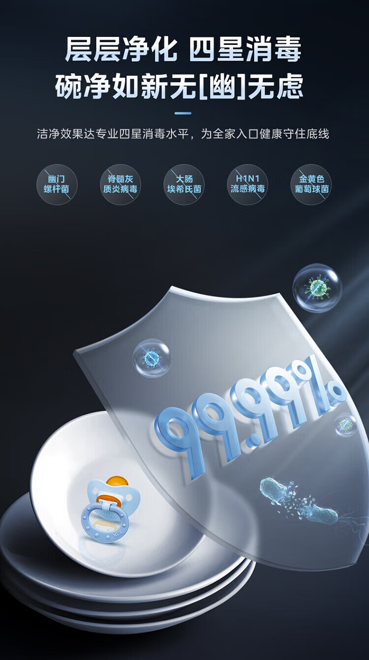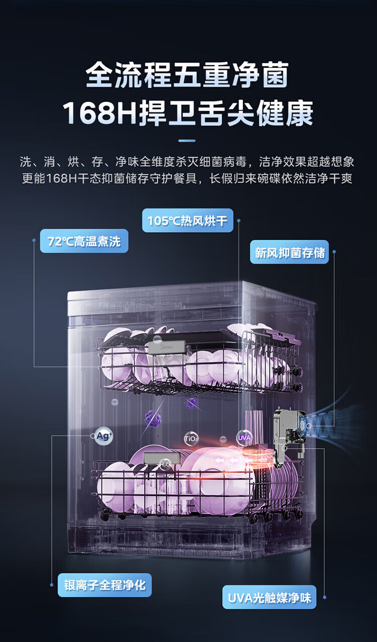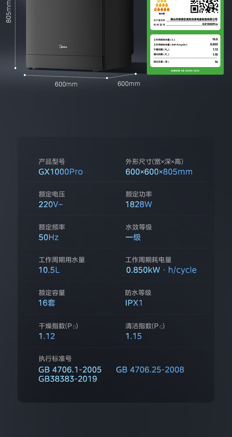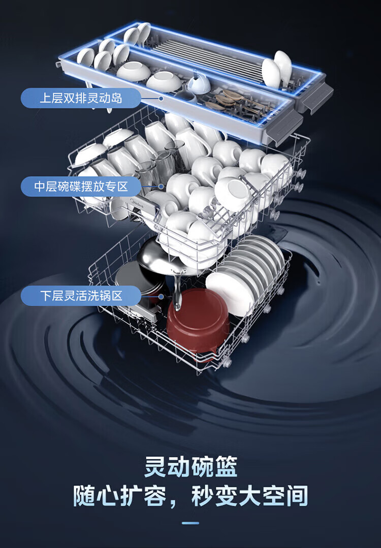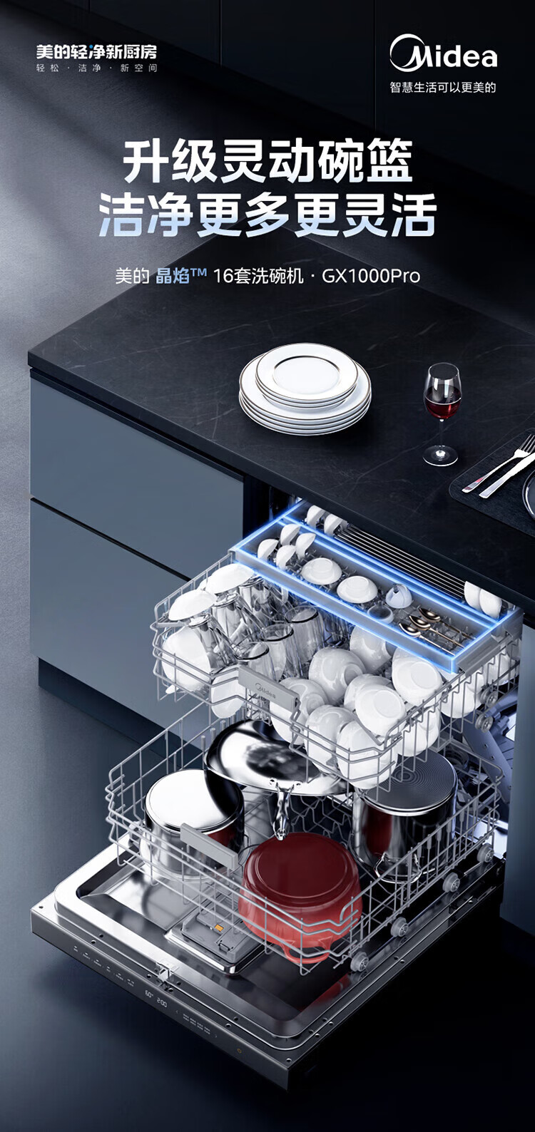 Midea 16 sets of built-in dishwashers, hot air drying, five-arm hurricane washers, dual-drive frequency conversion disinfection, first-level water efficiency, 17 sets of GX1000Max exclusive version