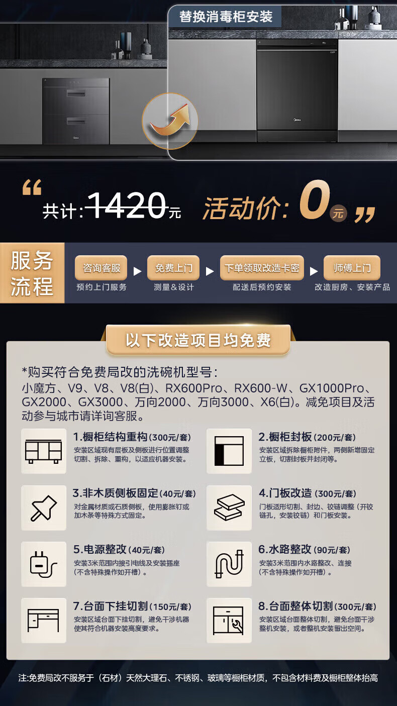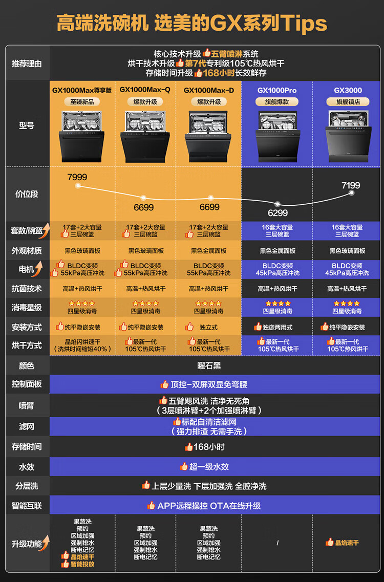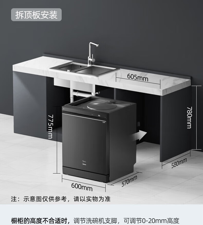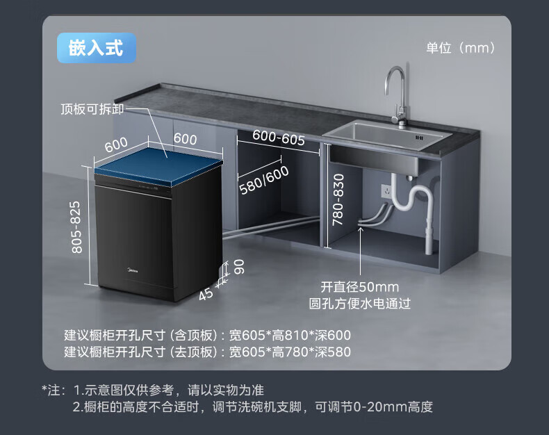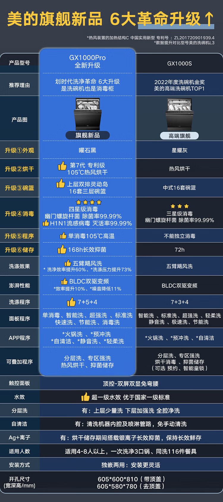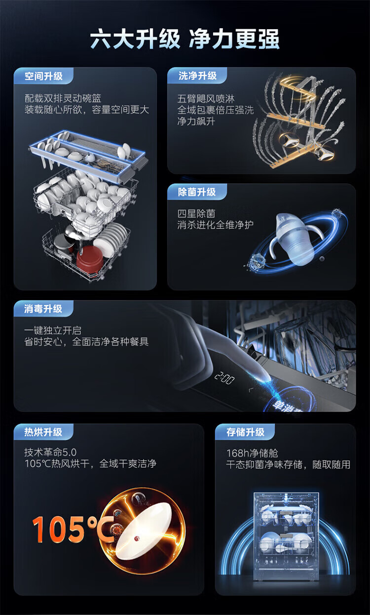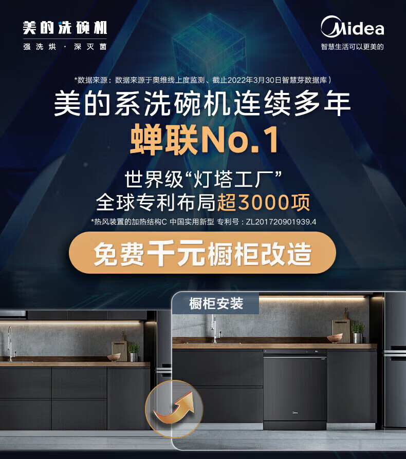 Midea 16 sets of built-in dishwashers, hot air drying, five-arm hurricane washers, dual-drive frequency conversion disinfection, first-level water efficiency, 17 sets of GX1000Max exclusive version