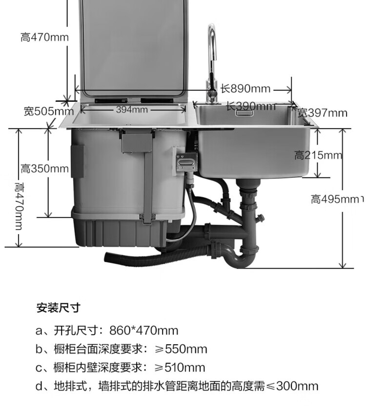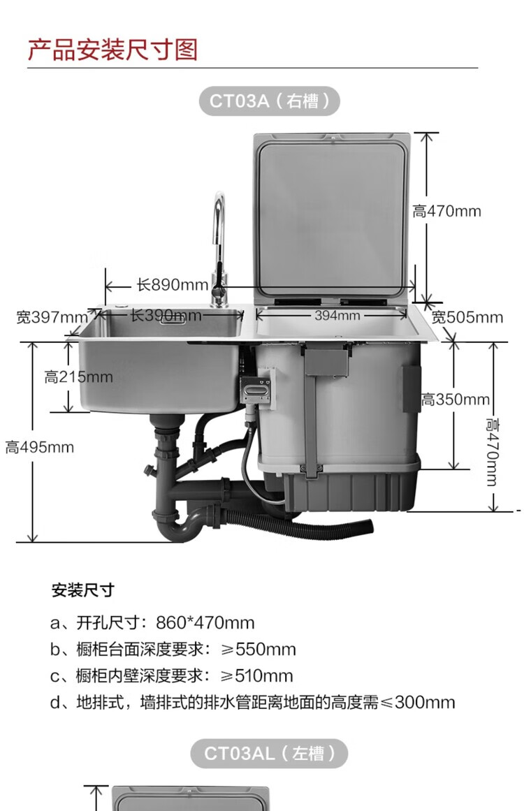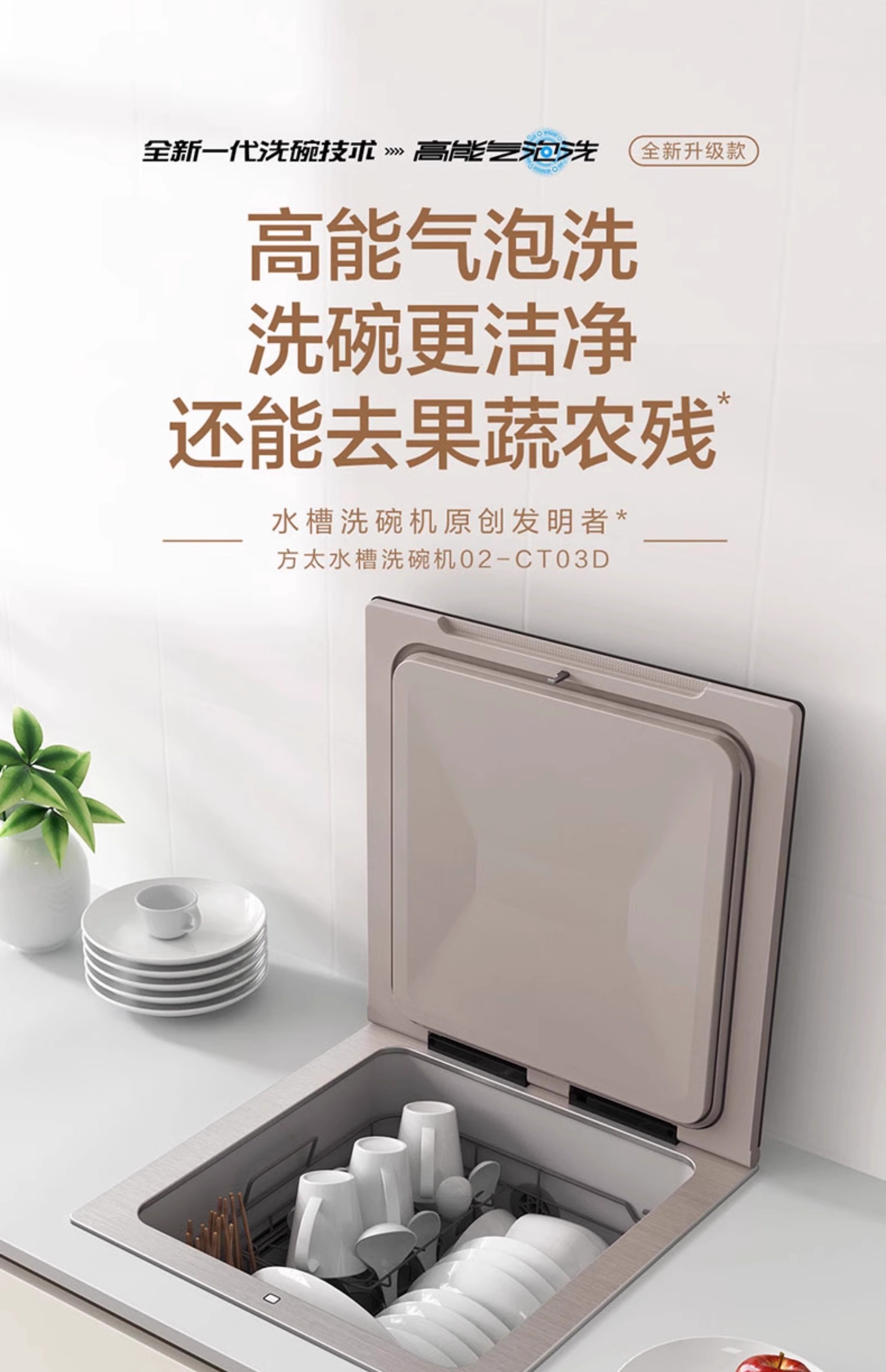 Fotile sink dishwasher CT03A/CT03BL integrated embedded fully automatic dishwasher household sterilization and drying high-energy bubble washing seafood fruits and vegetables official flagship store CT03BL left side dishwasher
