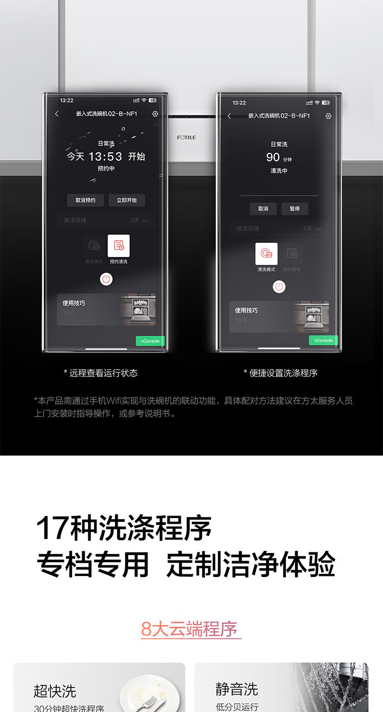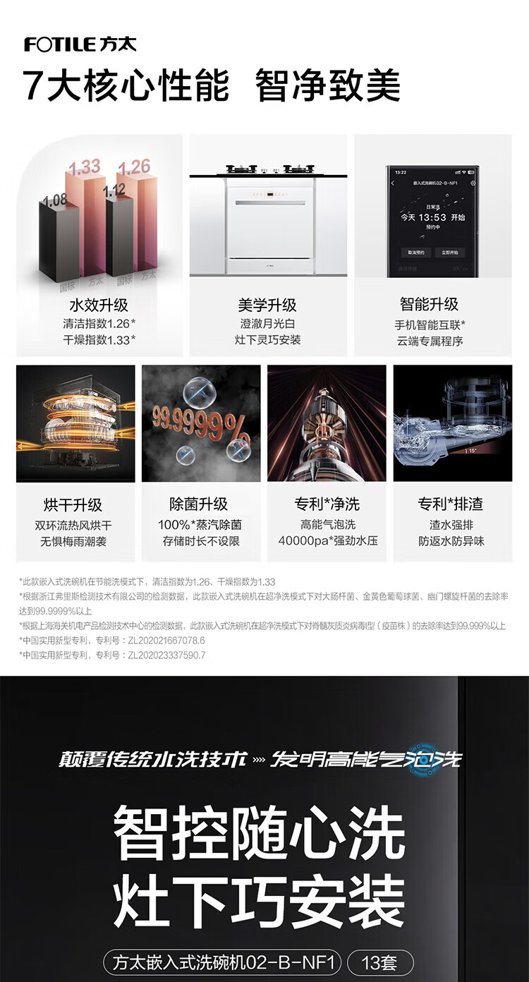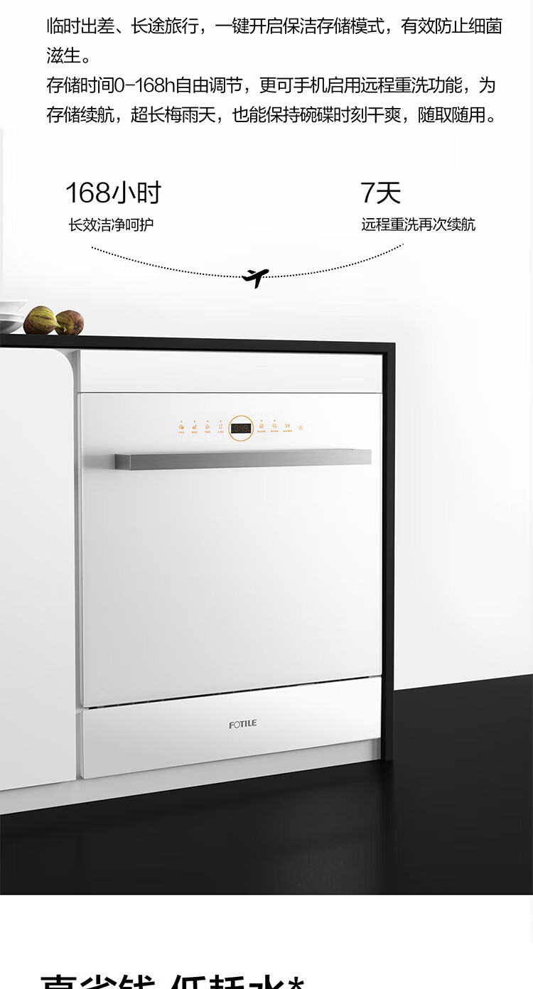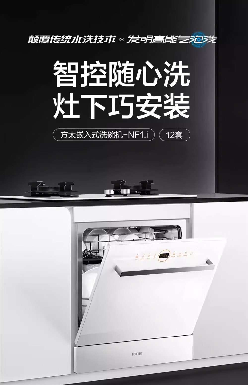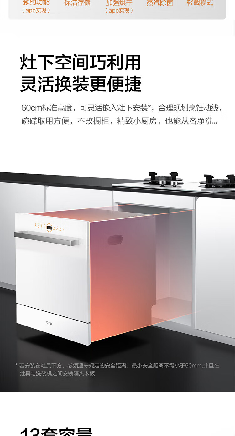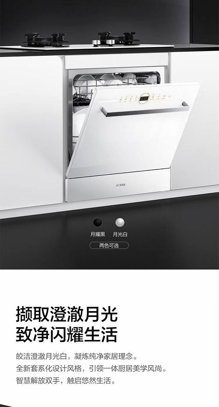 FOTILE Home Appliances Dishwasher NT01S 14 sets of large-capacity embedded integrated large-capacity household stove installed under steam sterilization high-energy bubble washing smart drying official flagship store black model JPCD12E-NT01S