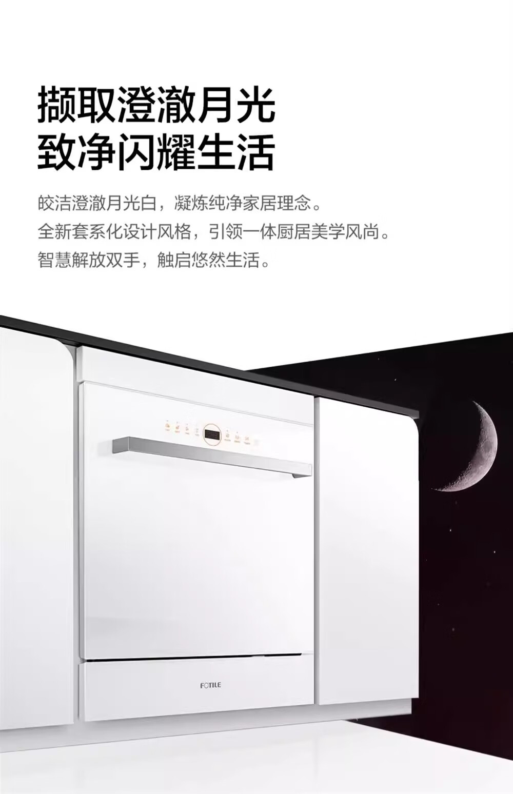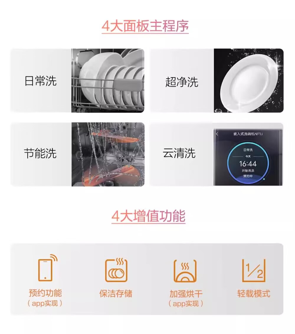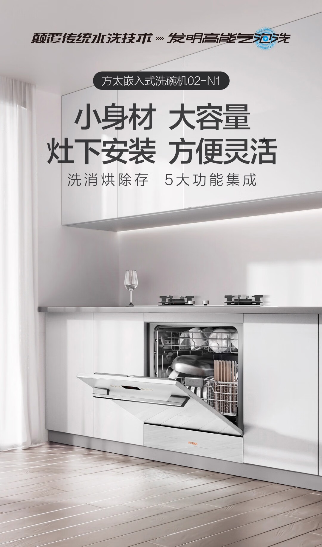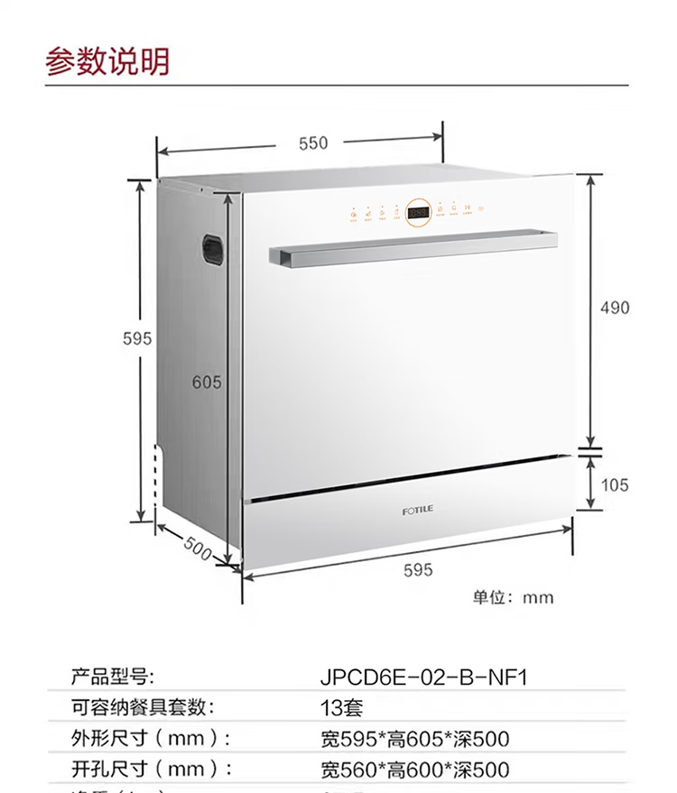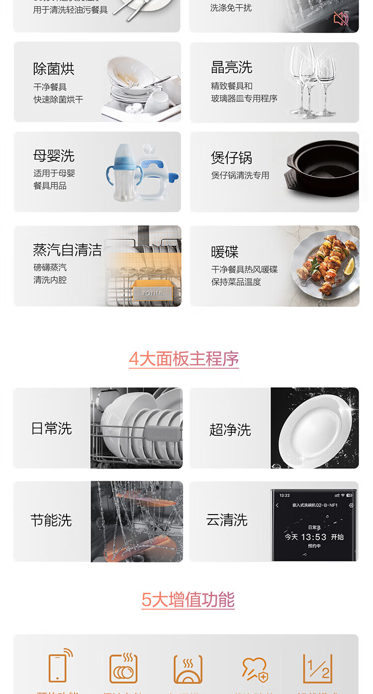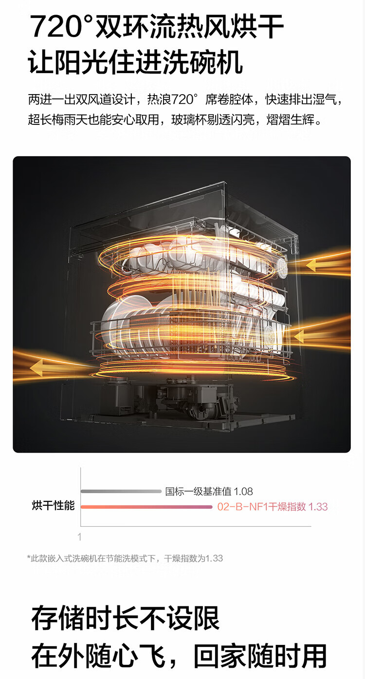 FOTILE Home Appliances Dishwasher NT01S 14 sets of large-capacity embedded integrated large-capacity household stove installed under steam sterilization high-energy bubble washing smart drying official flagship store black model JPCD12E-NT01S