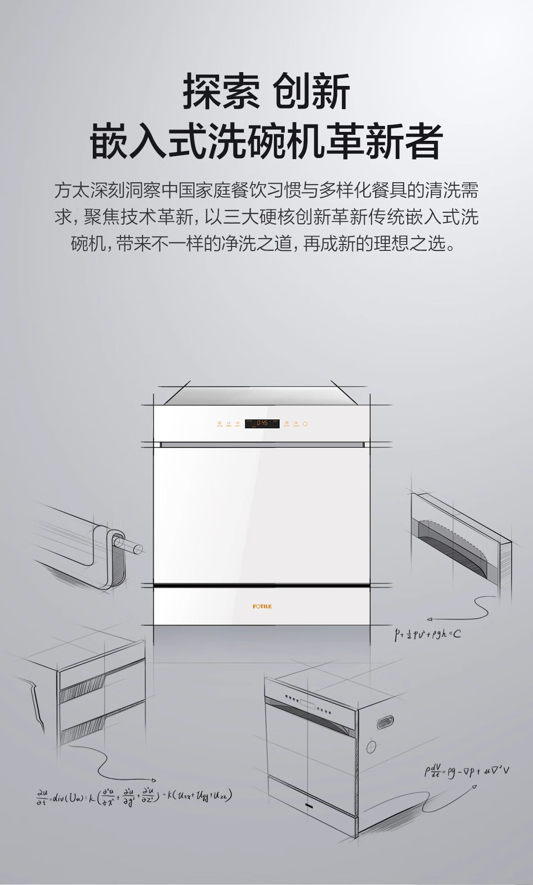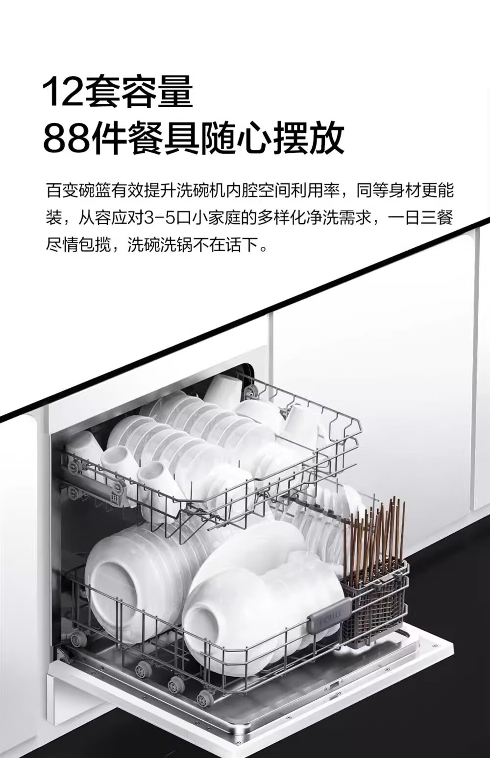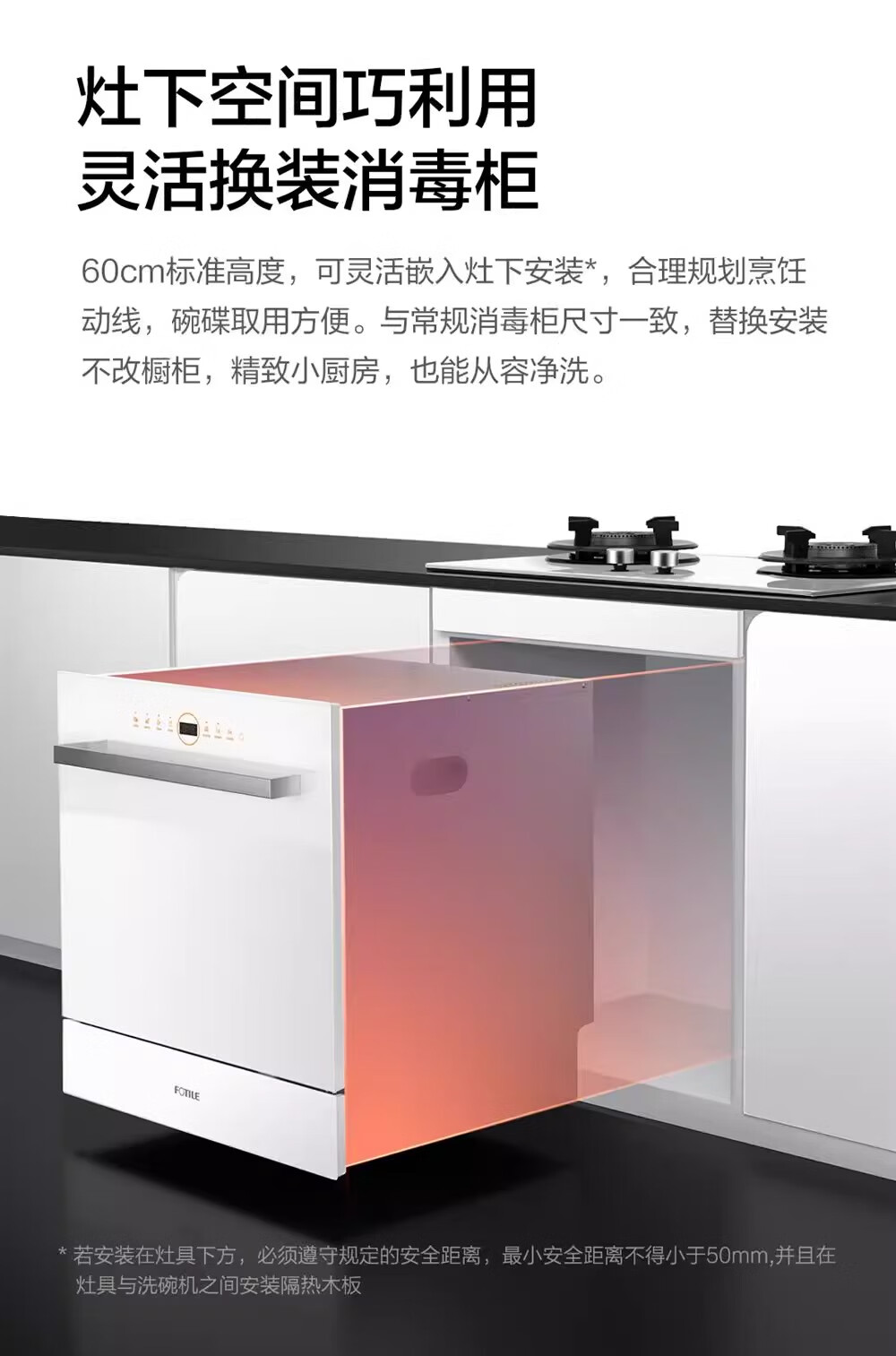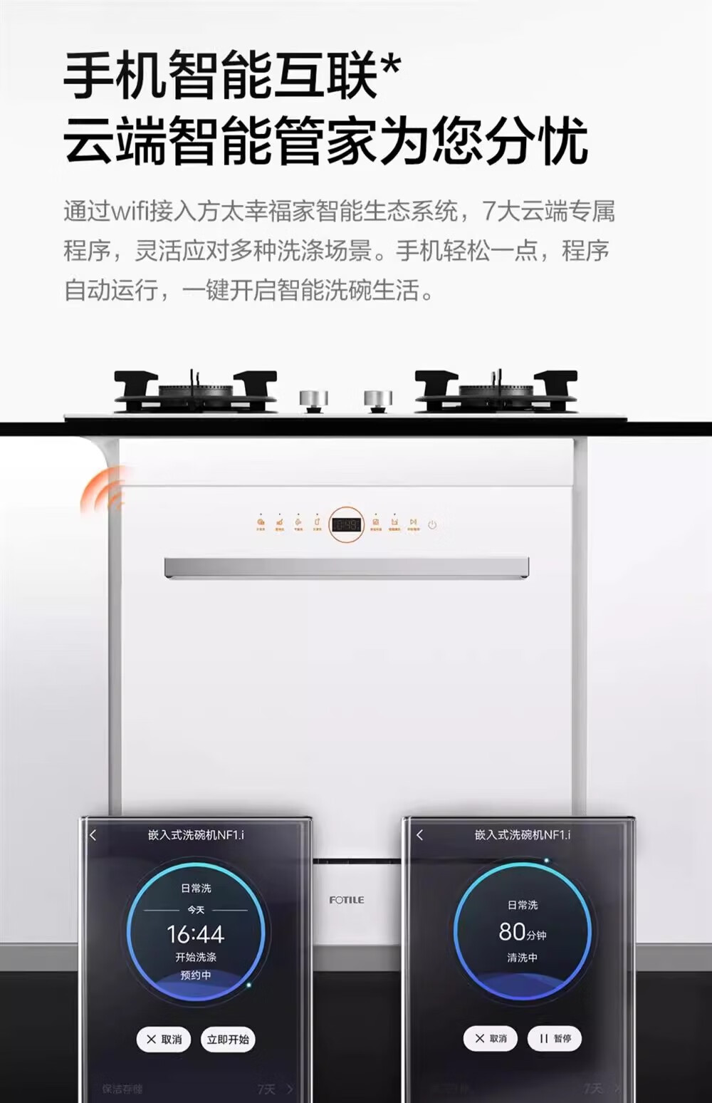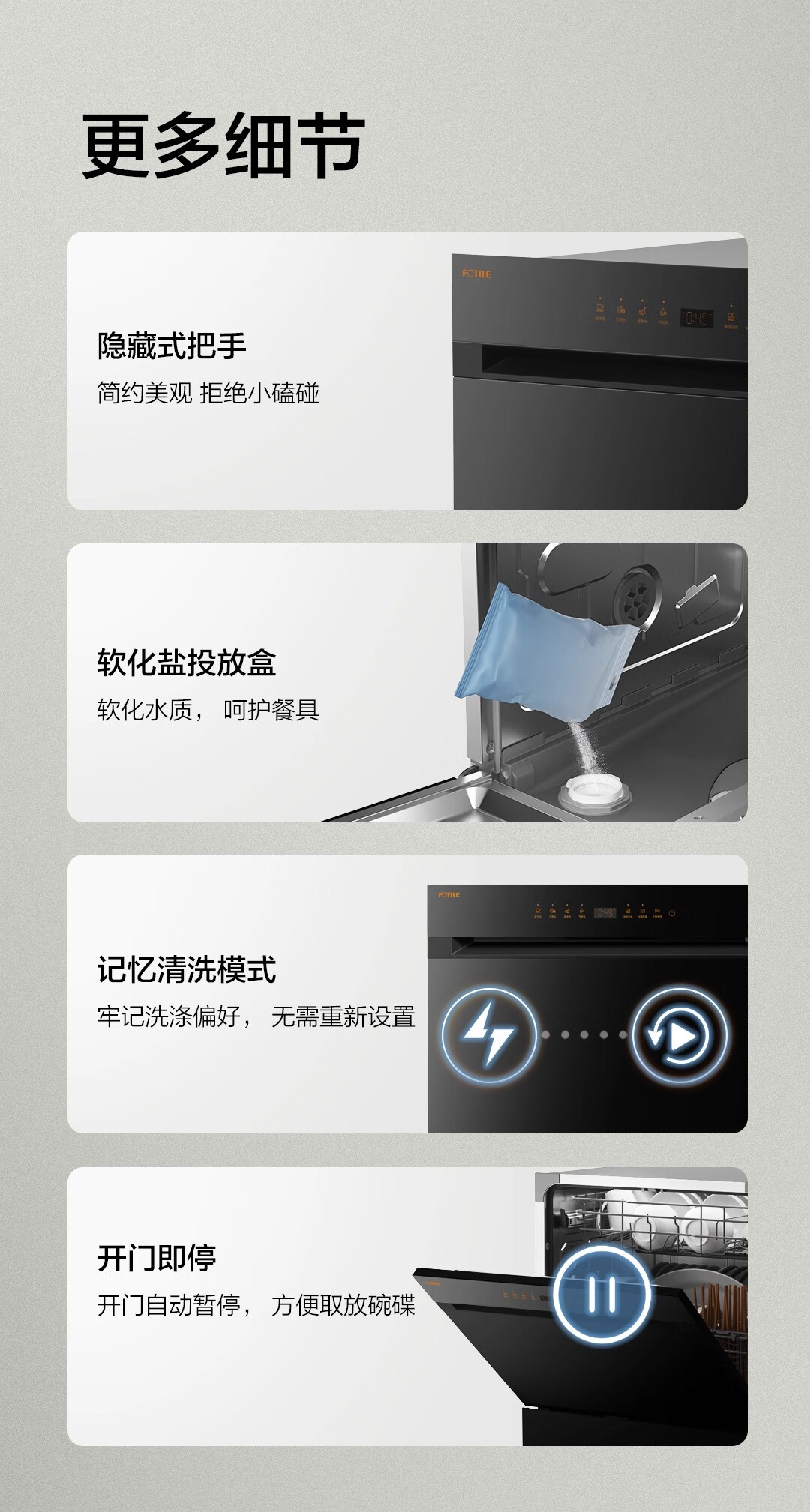 FOTILE Home Appliances Dishwasher NT01S 14 sets of large-capacity embedded integrated large-capacity household stove installed under steam sterilization high-energy bubble washing smart drying official flagship store black model JPCD12E-NT01S