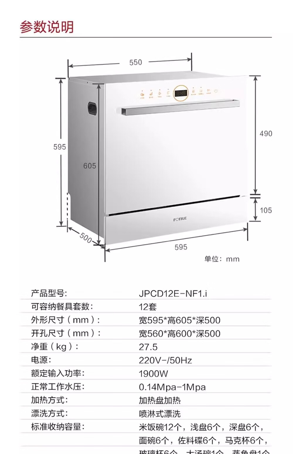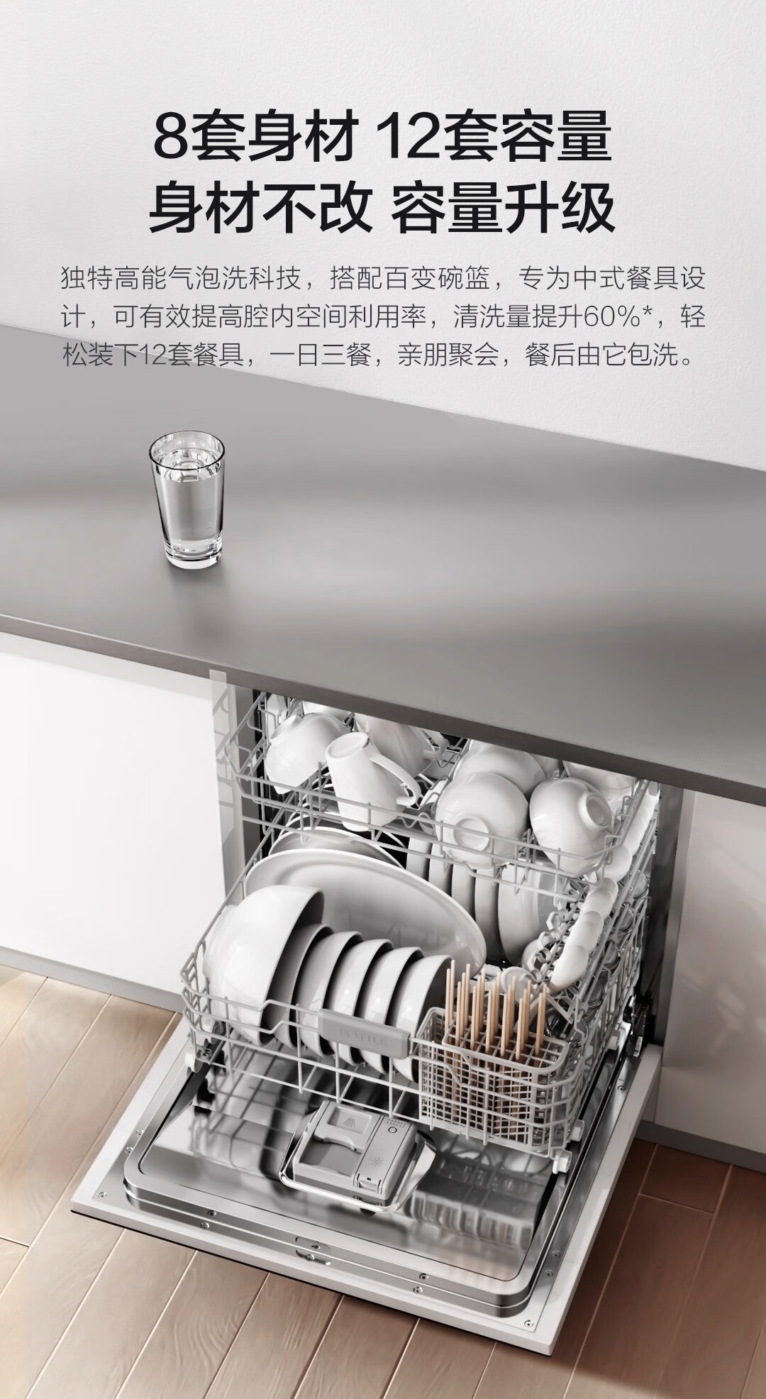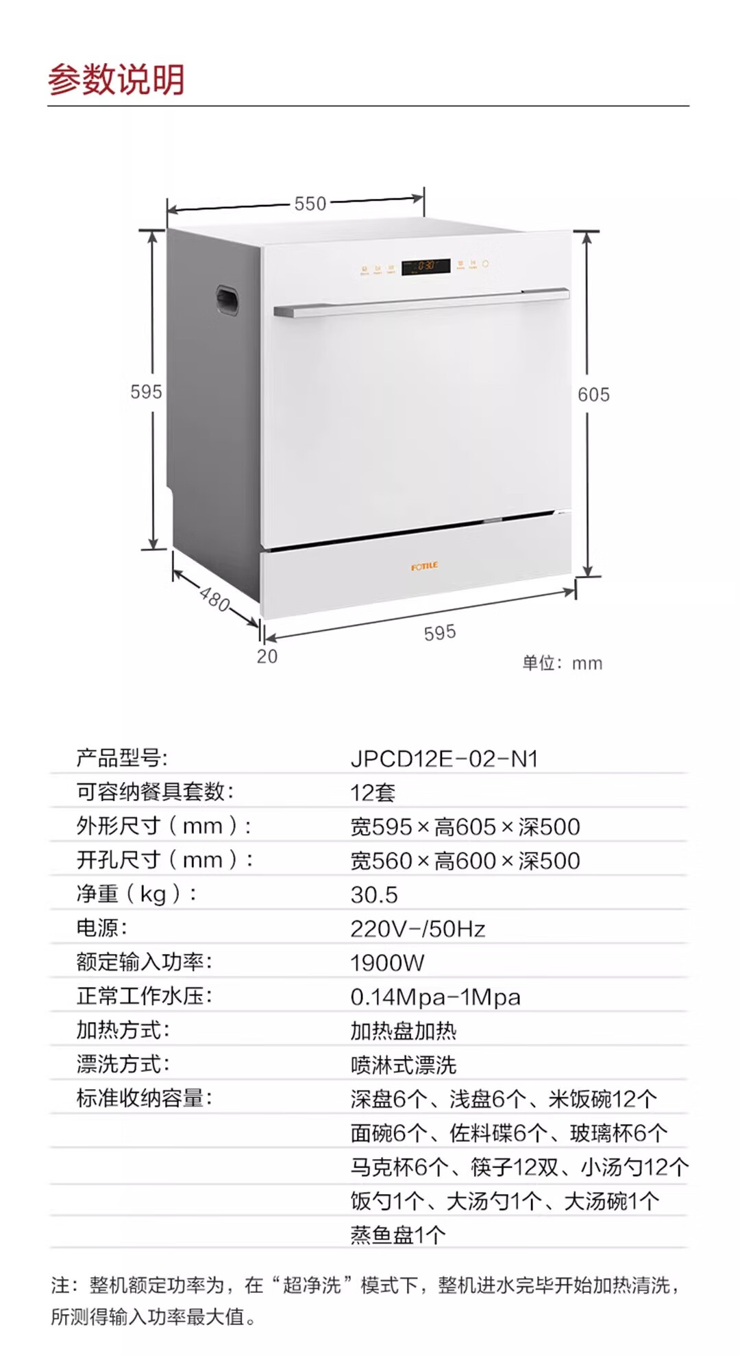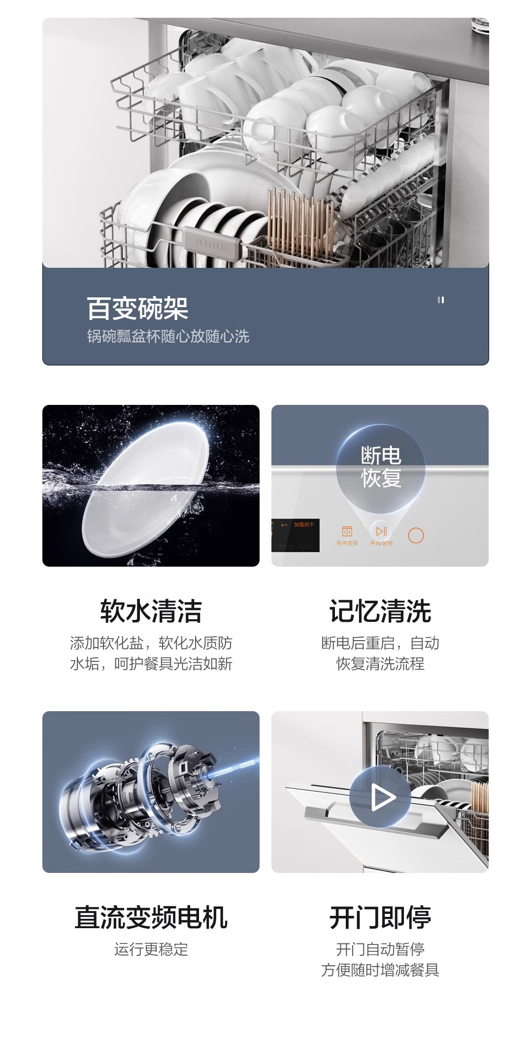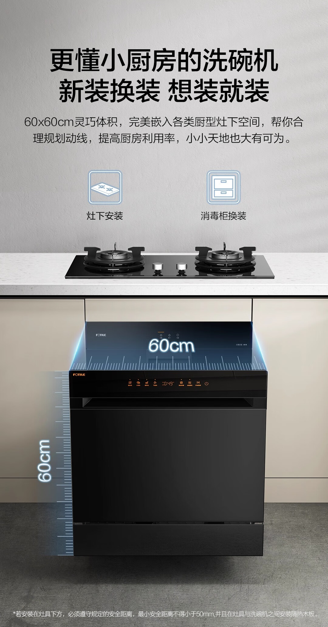 FOTILE Home Appliances Dishwasher NT01S 14 sets of large-capacity embedded integrated large-capacity household stove installed under steam sterilization high-energy bubble washing smart drying official flagship store black model JPCD12E-NT01S