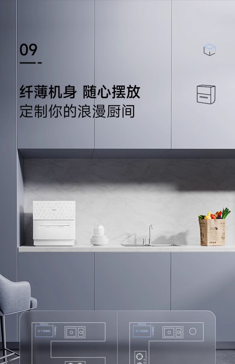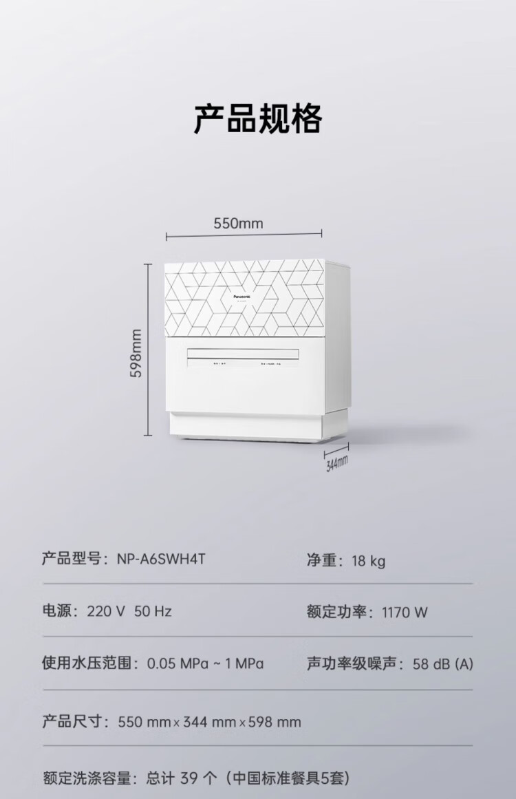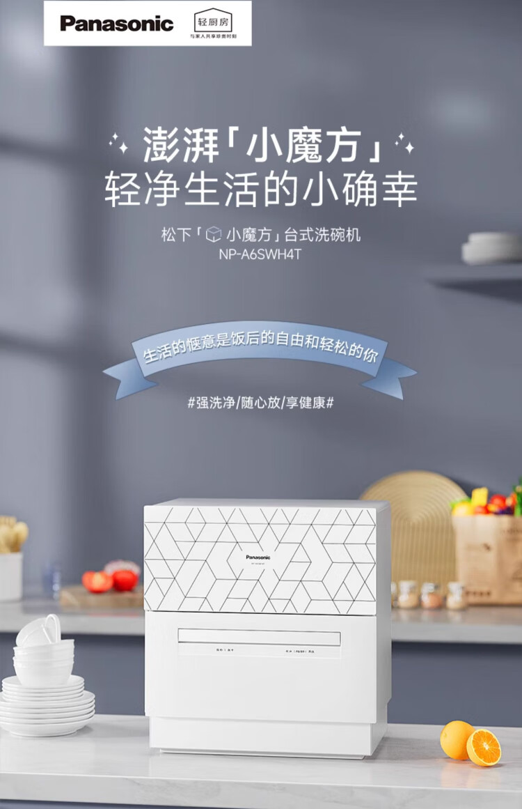 Panasonic National Subsidy Desktop Dishwasher 5 Sets 70 High Temperature Washing Cube High Efficiency Sterilization Convection Fresh Air Home Appliances NP-A6SWH4T Desktop Dishwasher NP-A6SWH4T