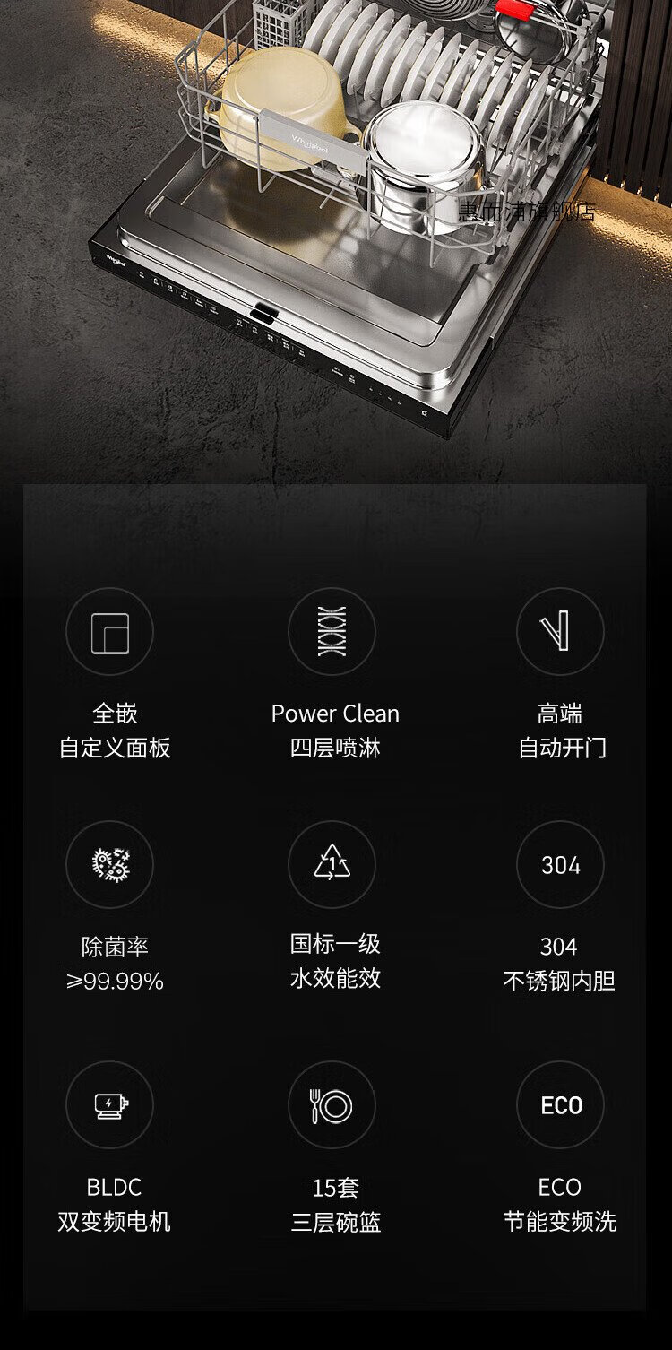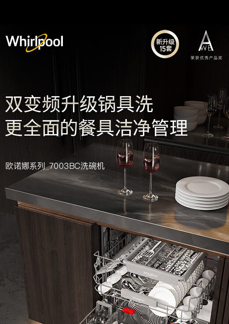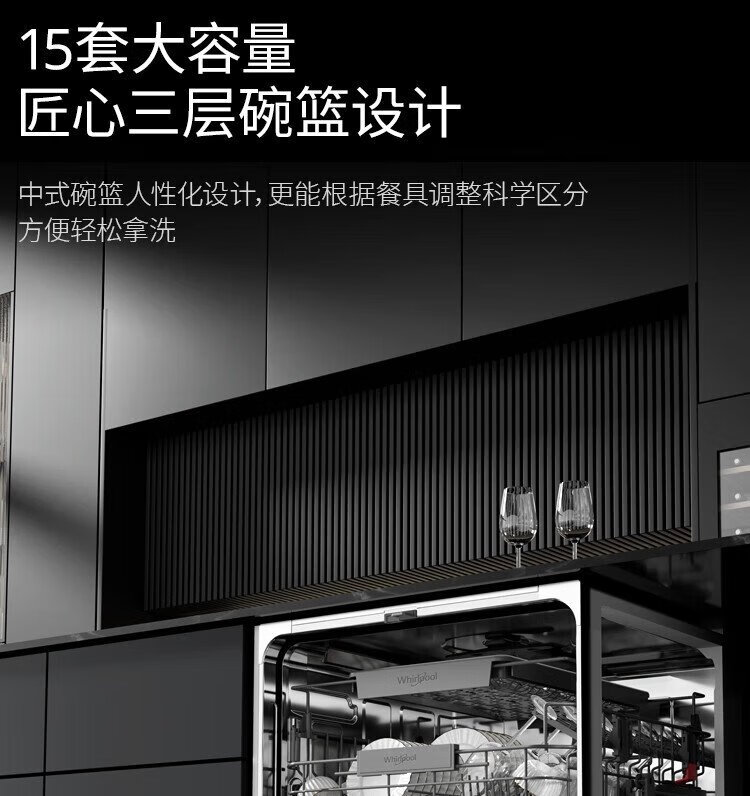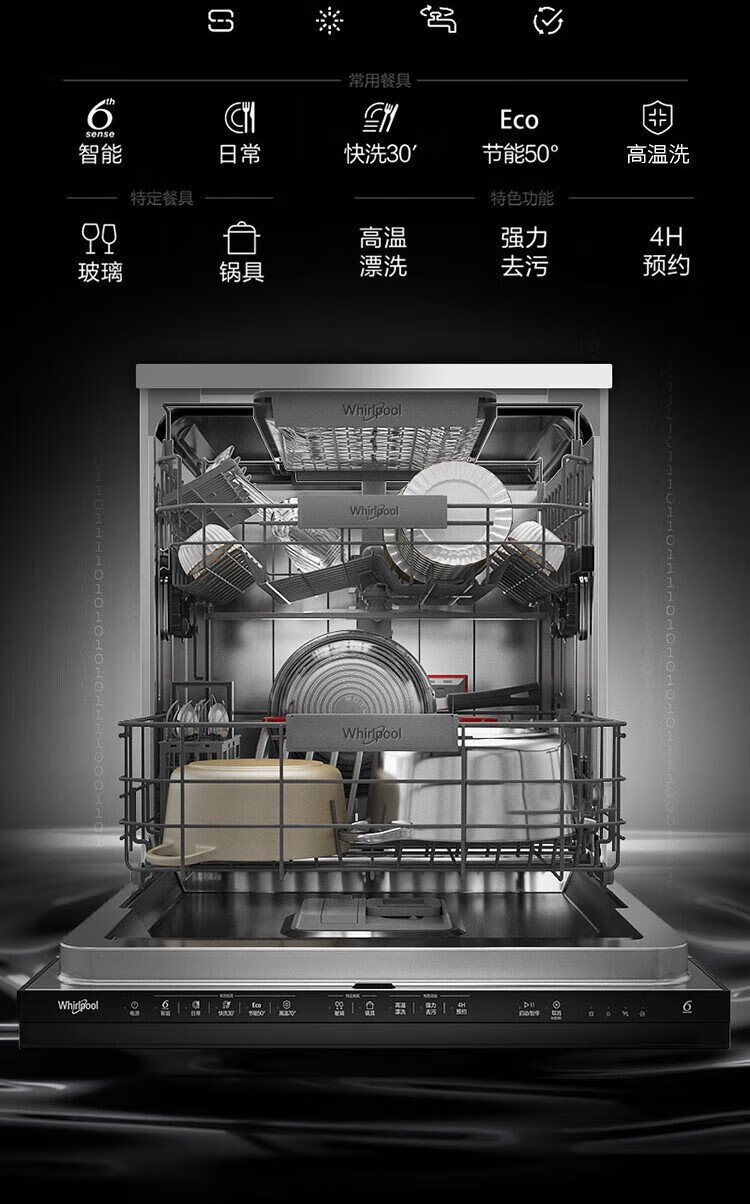 Whirlpool Onona series 15 sets of household large-capacity three-layer rotor spray embedded washing, disinfecting and drying machine dishwasher WDH7003BC