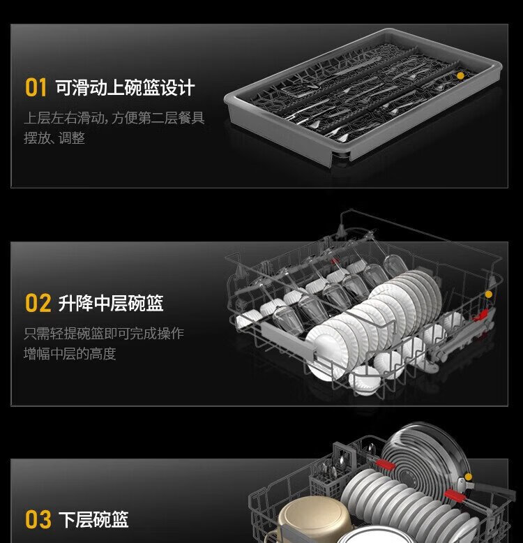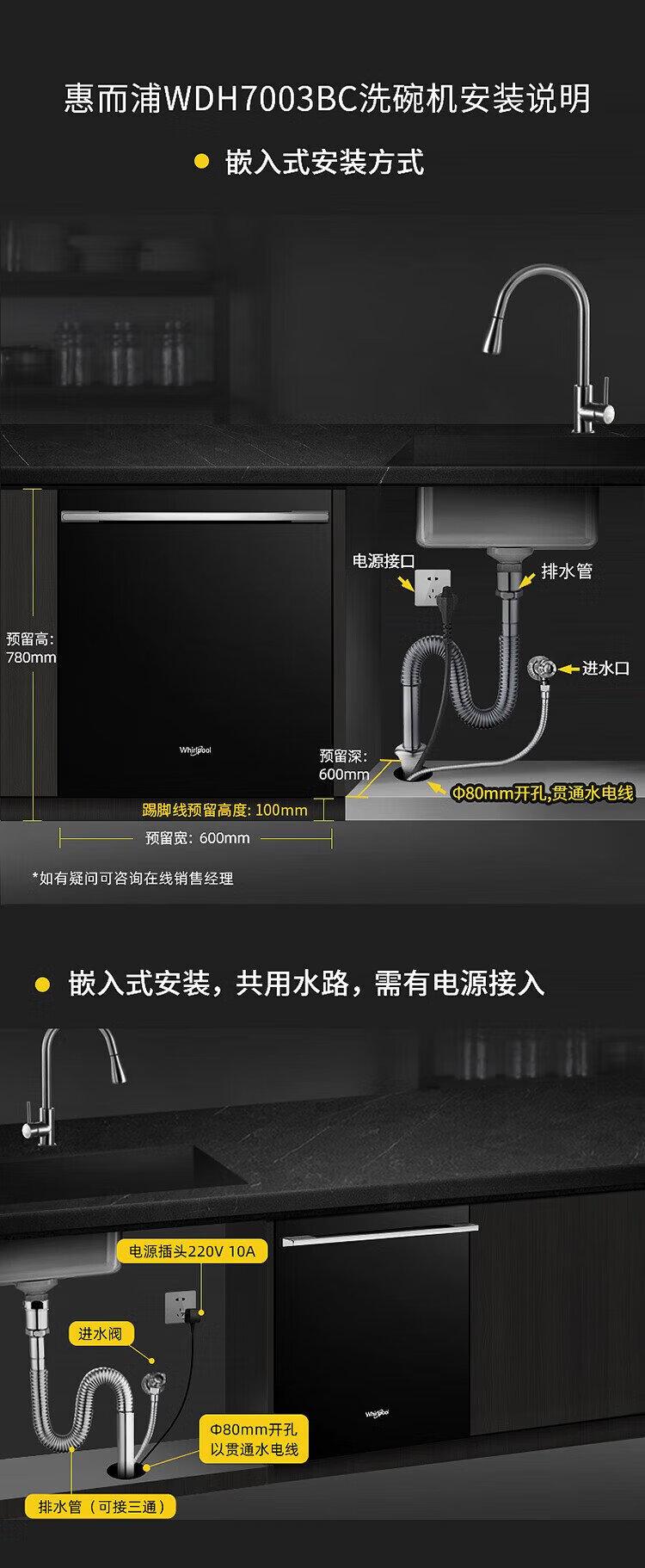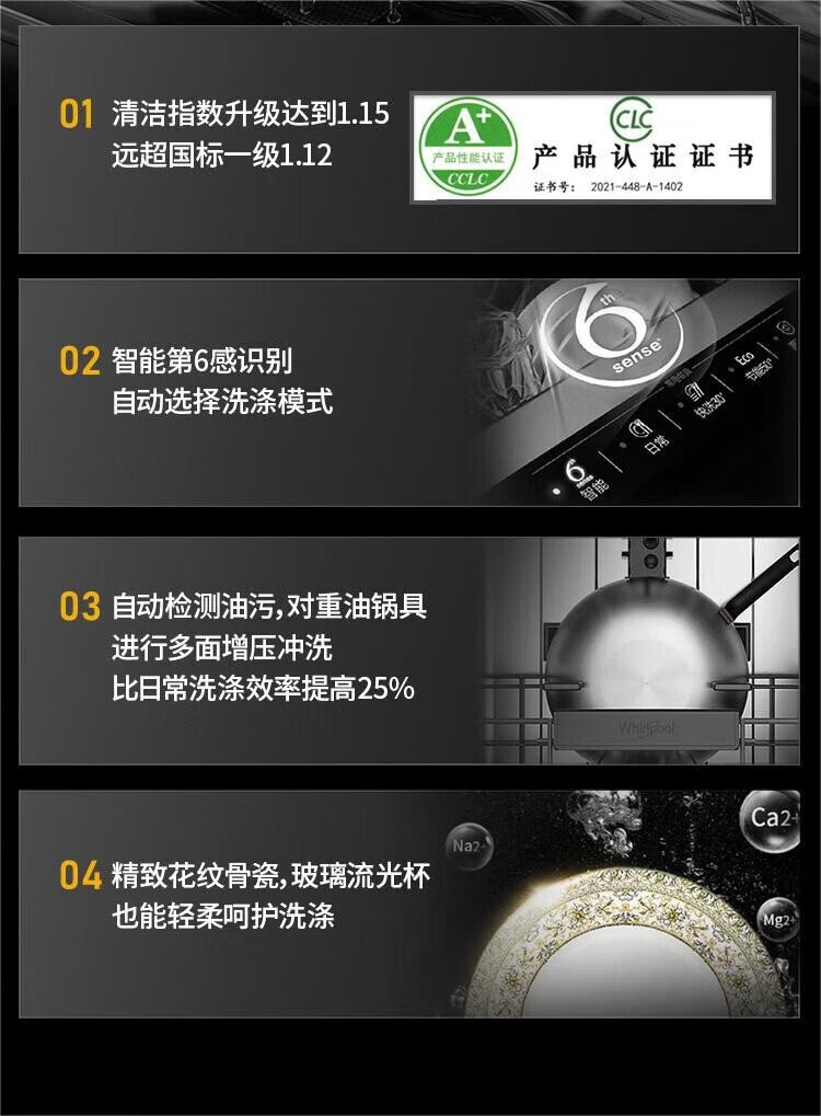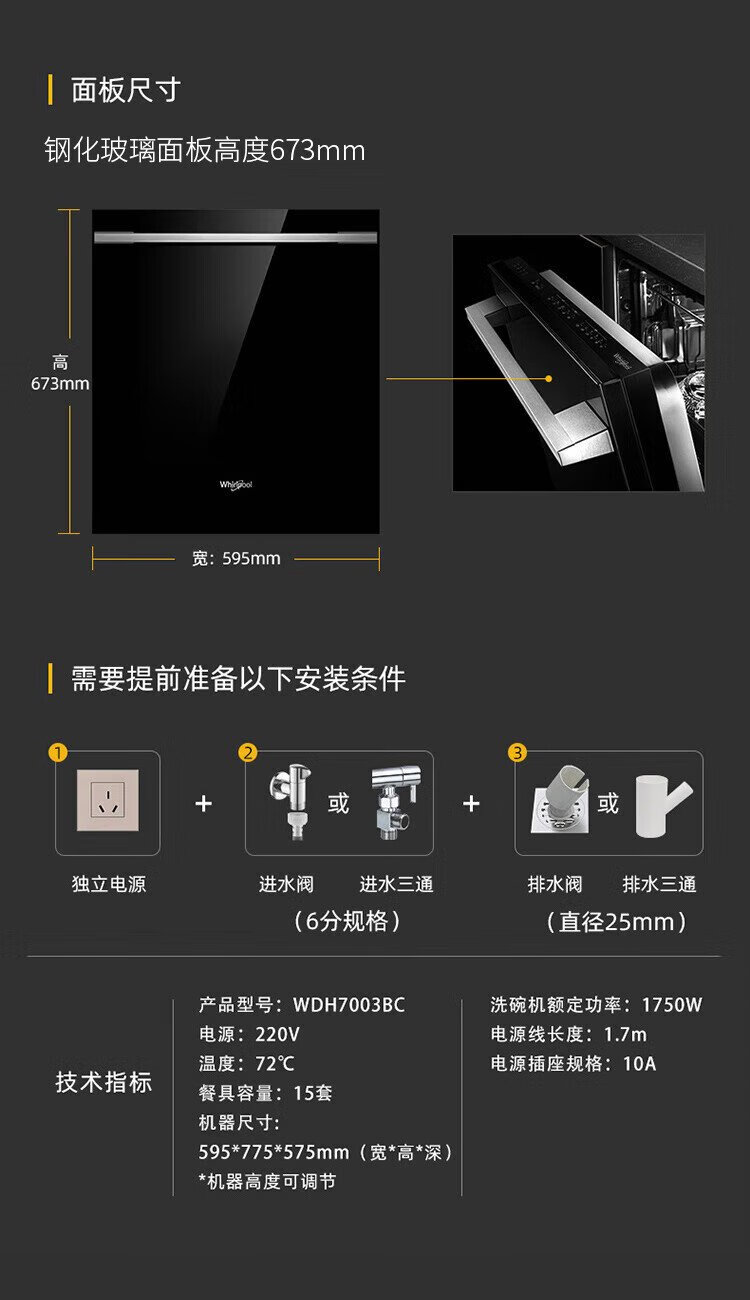 Whirlpool Onona series 15 sets of household large-capacity three-layer rotor spray embedded washing, disinfecting and drying machine dishwasher WDH7003BC