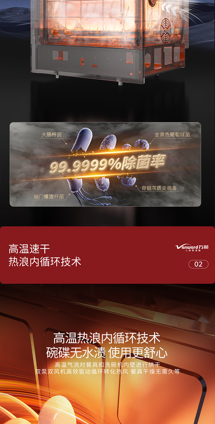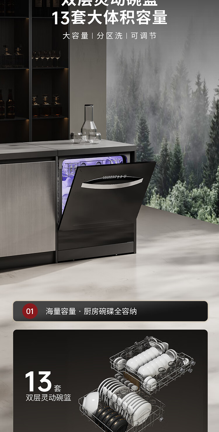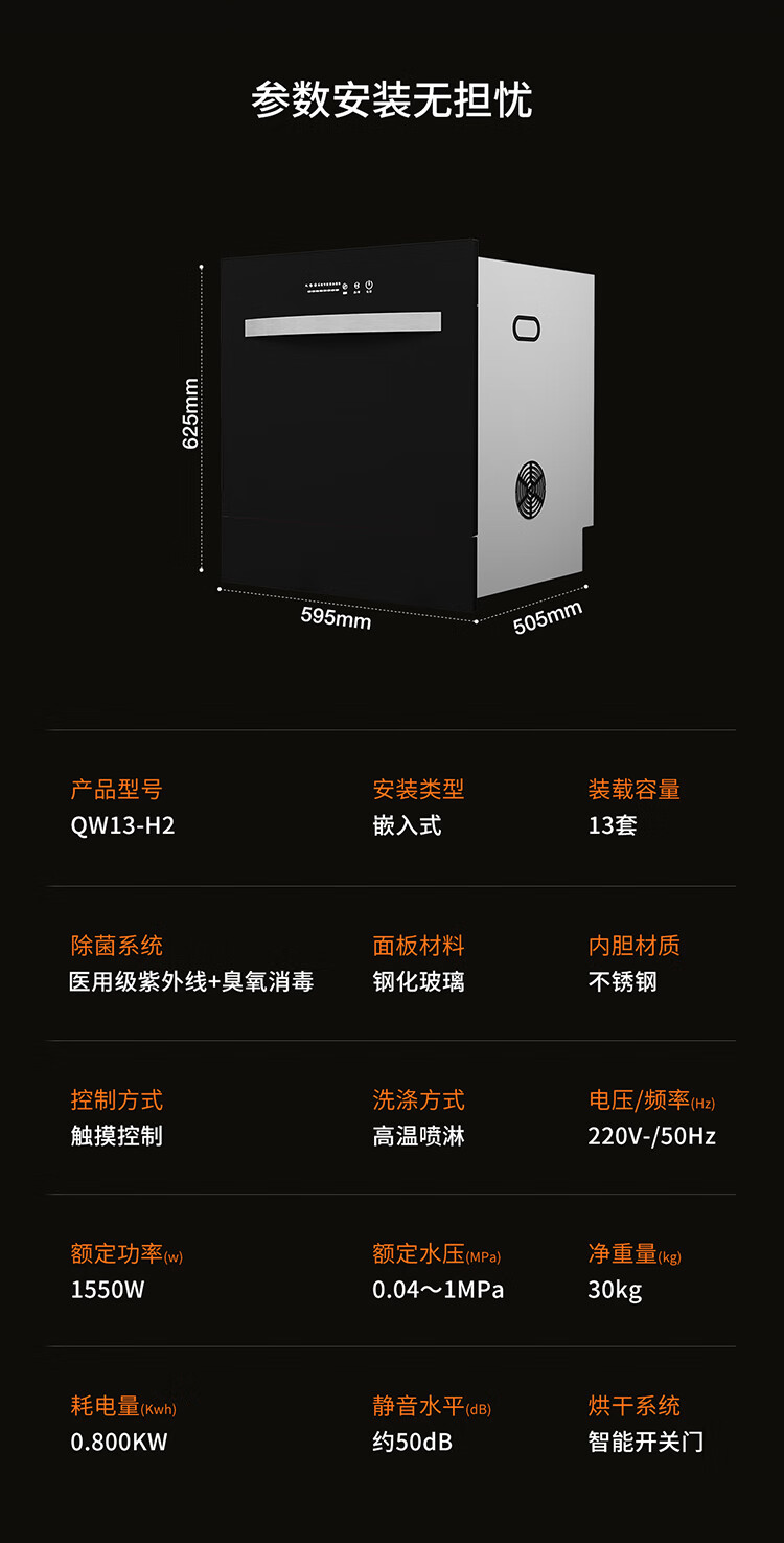 Wanhe embedded dishwasher household fully automatic hot air drying and disinfection double-layer spray arm fruit and vegetable washing QW13-H2