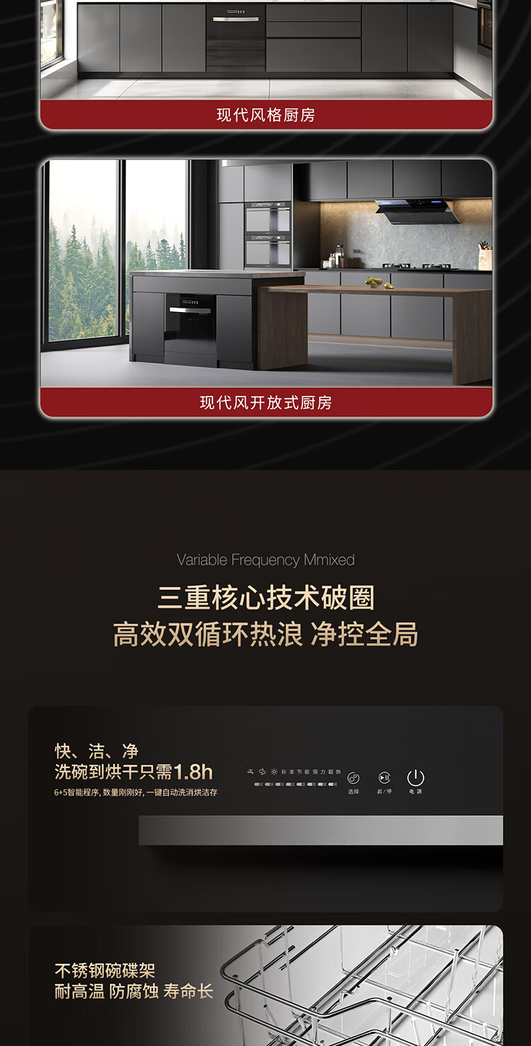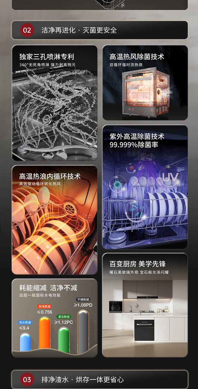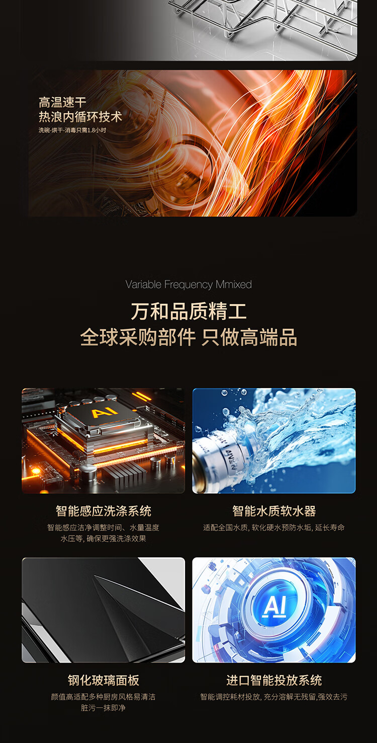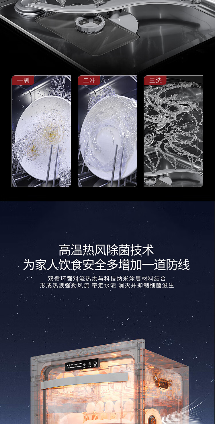 Wanhe embedded dishwasher household fully automatic hot air drying and disinfection double-layer spray arm fruit and vegetable washing QW13-H2