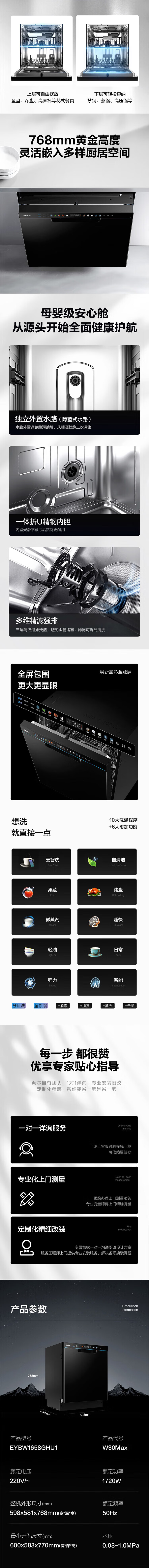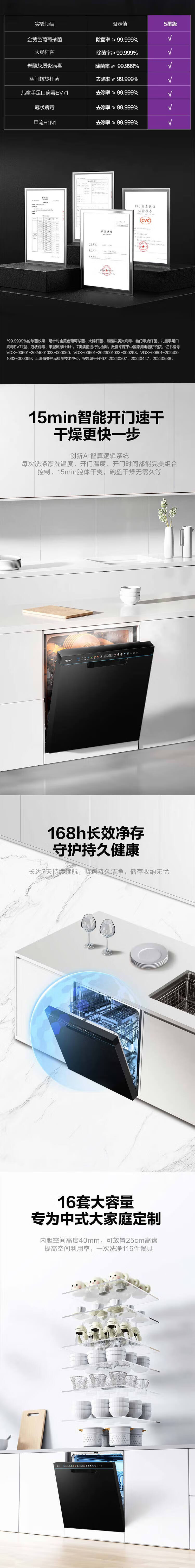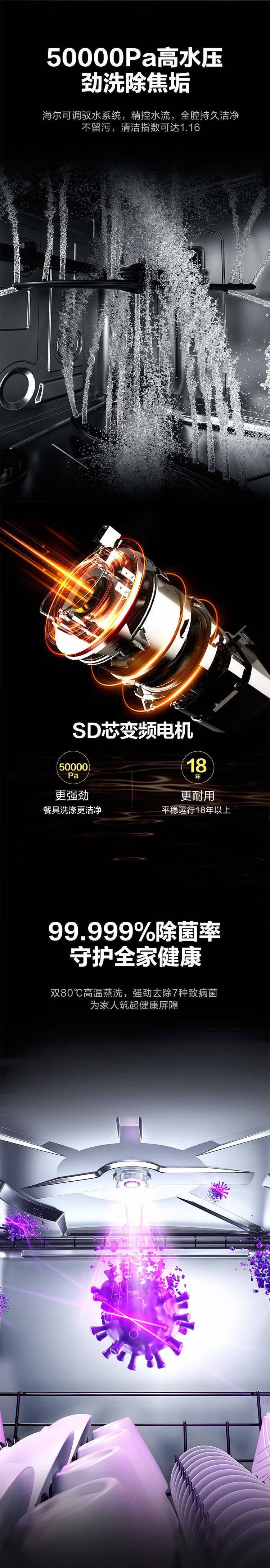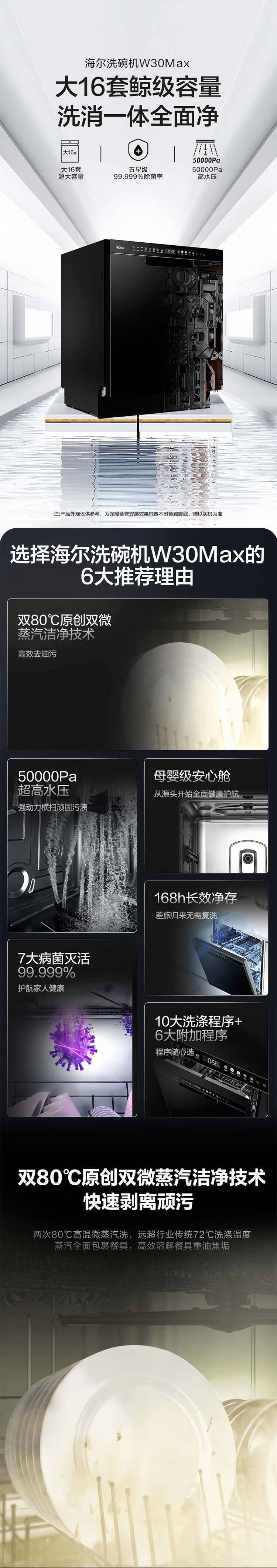 Haier dishwasher W30Max built-in large 16-set capacity intelligent one-button washing and drying steam five-star disinfection UV sterilization double 80 thermal drying W30Max large 16-set capacity zoned fine washing