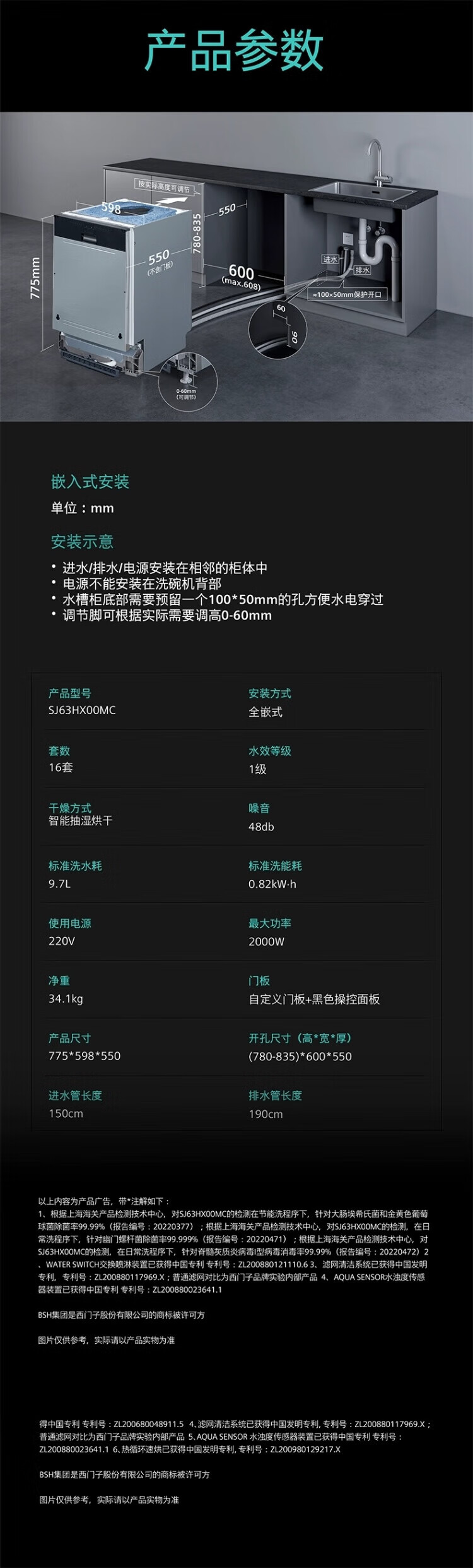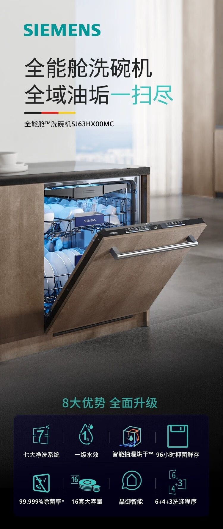 Siemens SJ45ZL24MC/SJ45ZC24MC/SN25ZB24MC SJ63HX00MC dishwasher SJ63HX00MC dynamic circulation 16 sets fully embedded