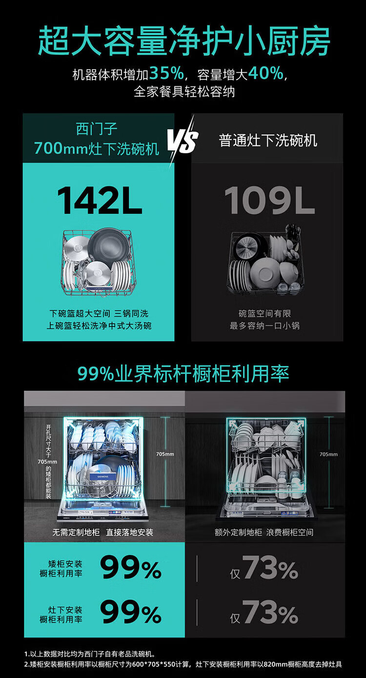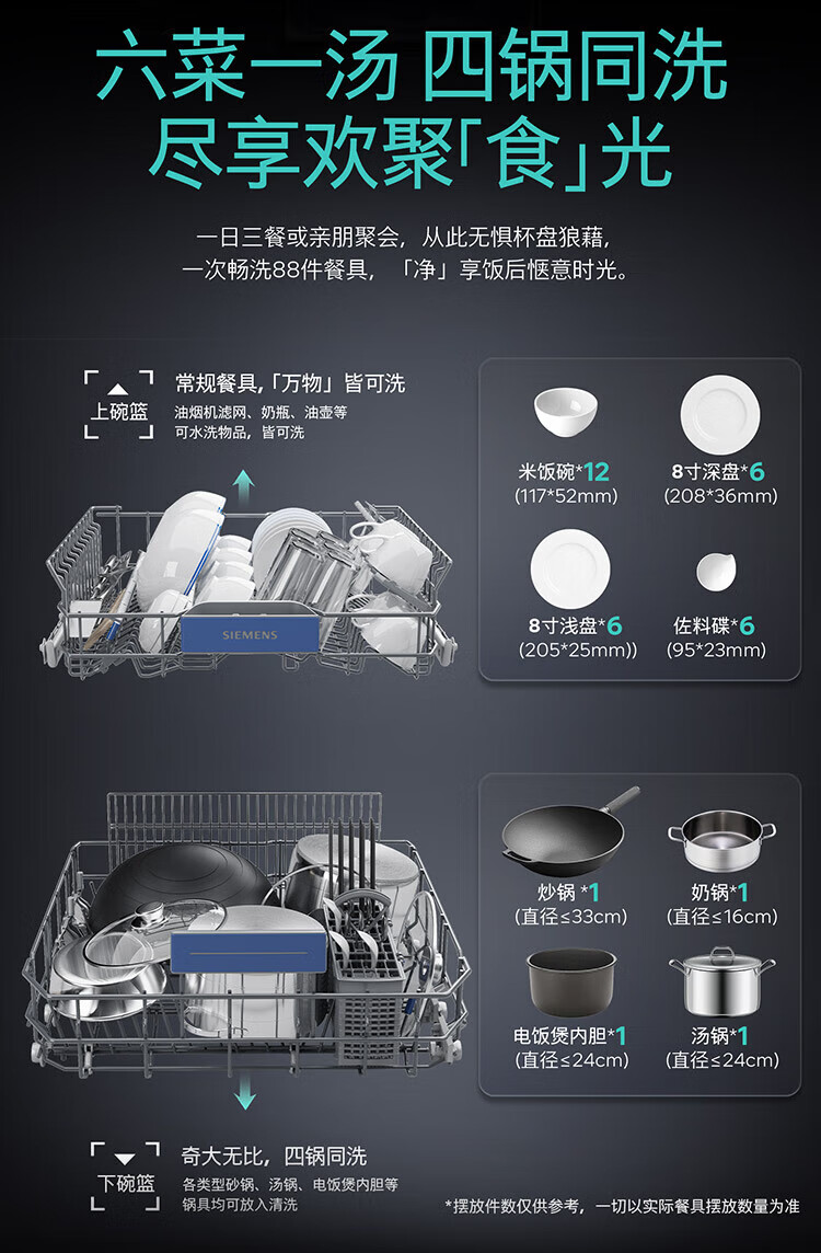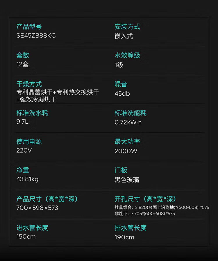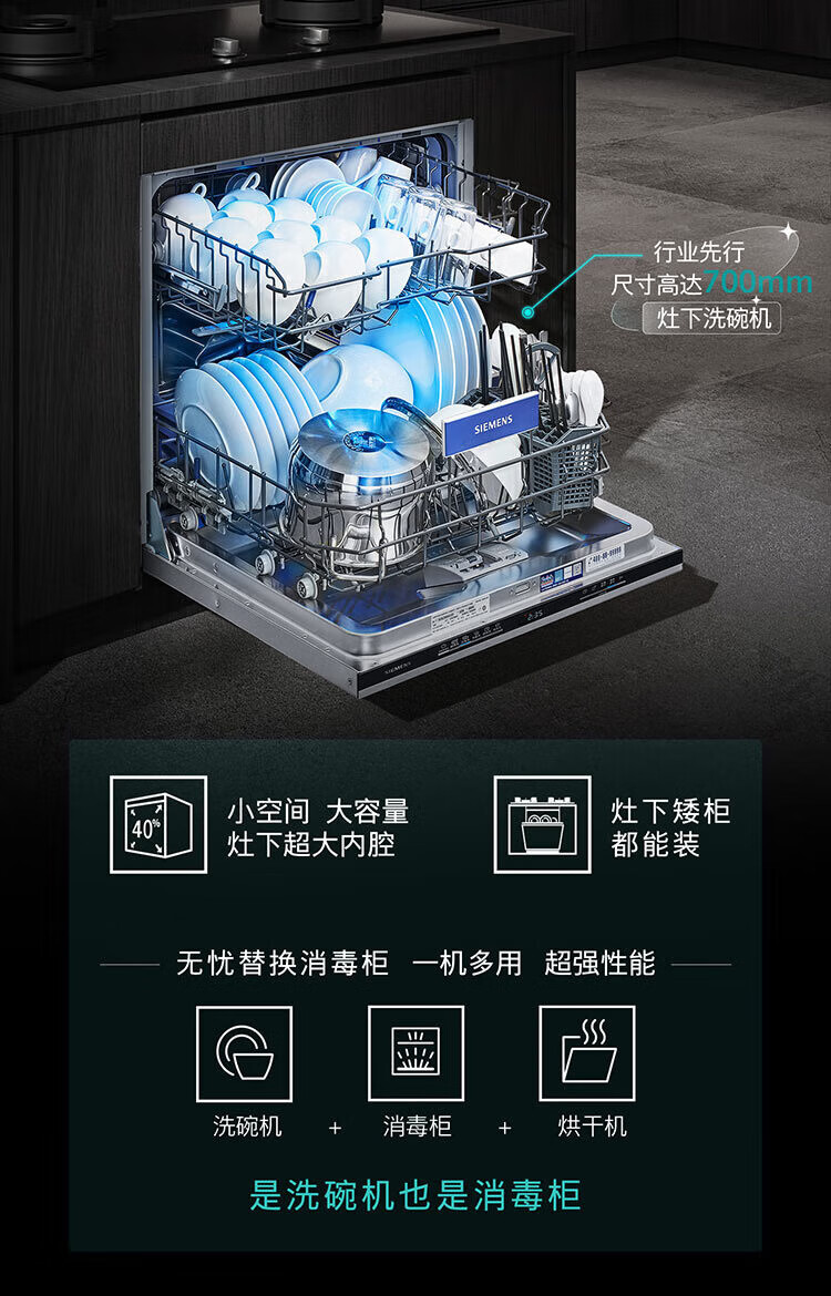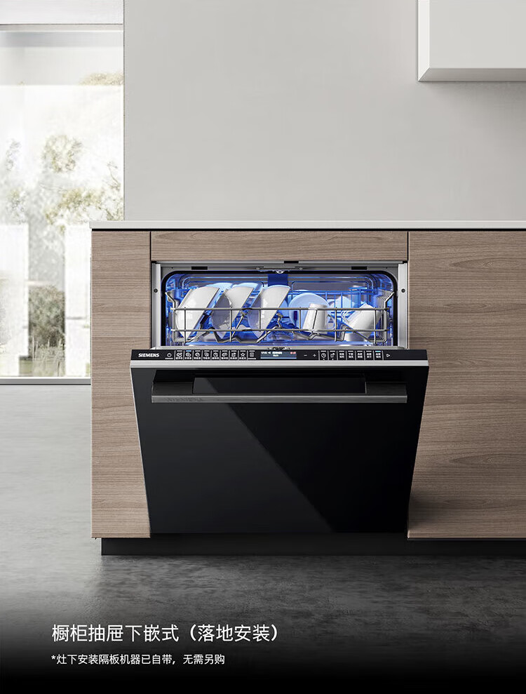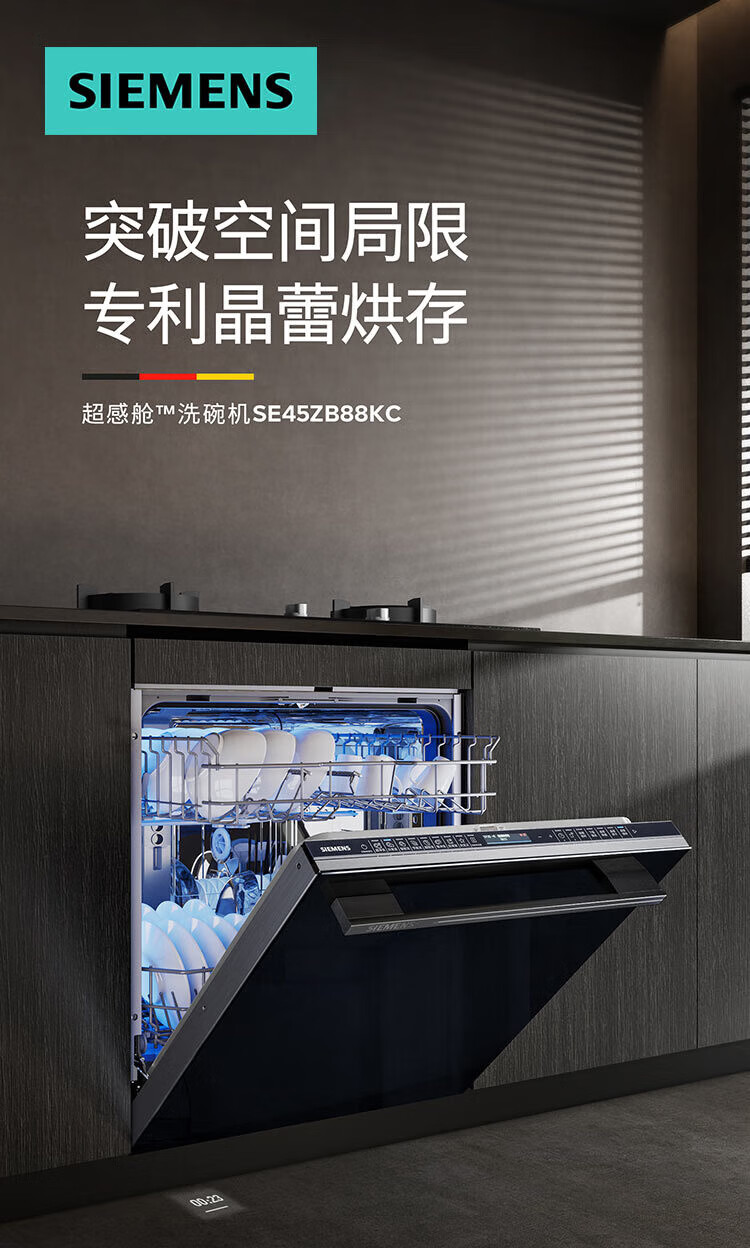 Siemens Crystal Drying Household Fully Automatic Under-the-range Embedded Dishwasher 12 Sets Large Capacity Super Sensing Cabin Precision Eddy Current Washing Super First-Class Water Effect Crystal Smart SE45ZB88KC
