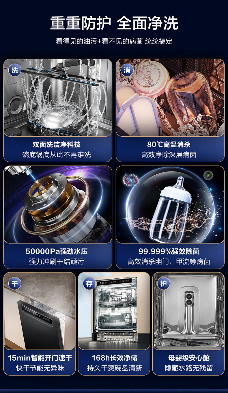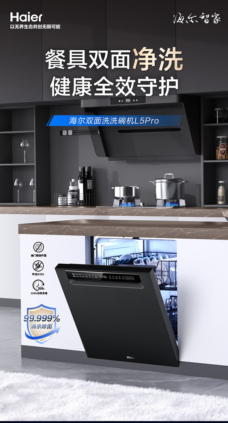 Double-sided washing built-in dishwasher L5Pro double 80 high temperature sterilization large 15 sets W5000 variable frequency motor