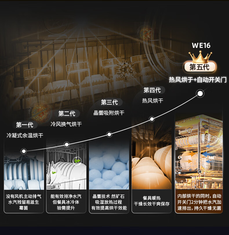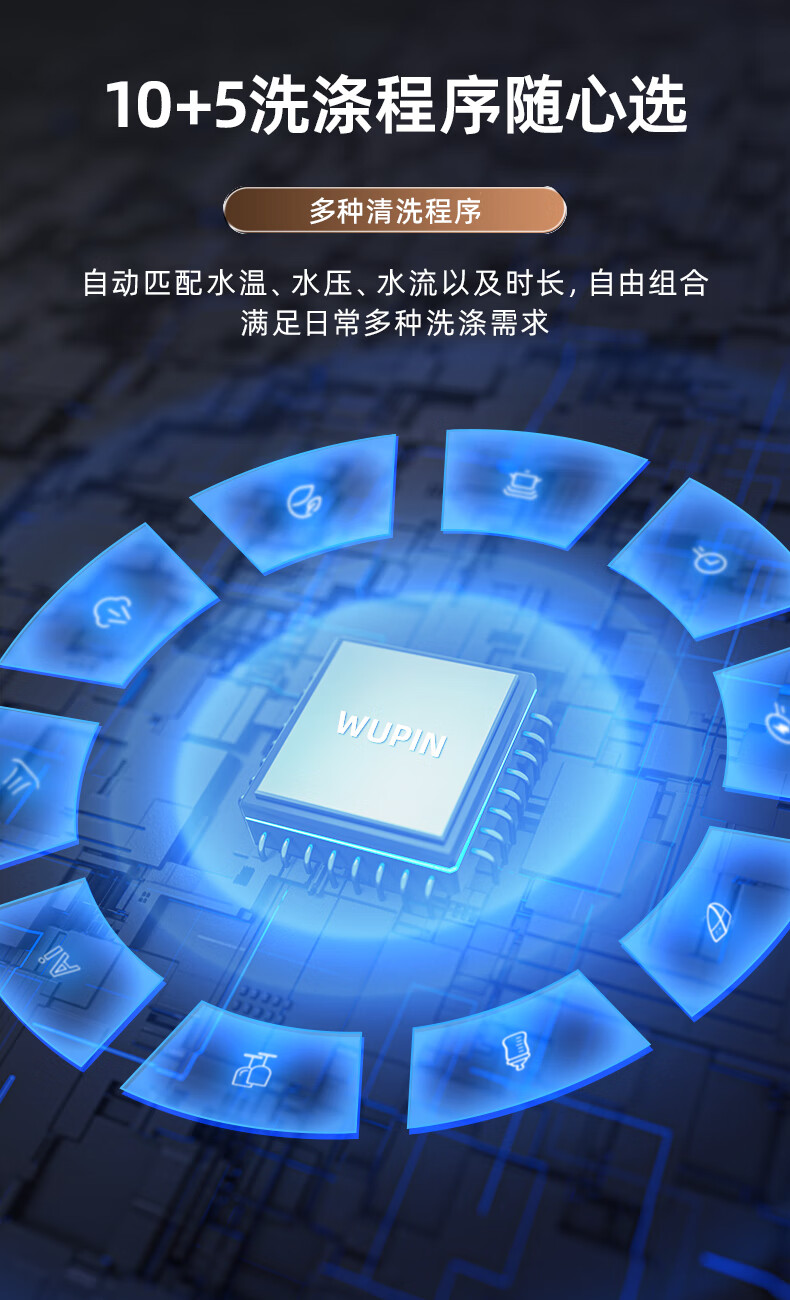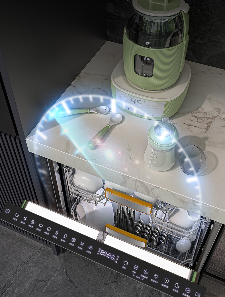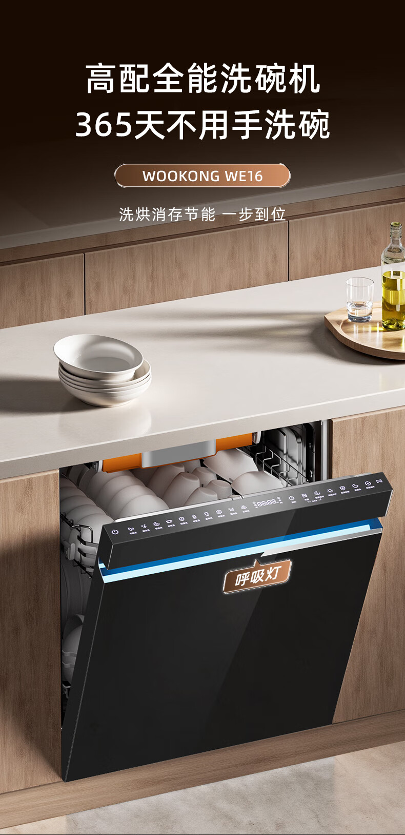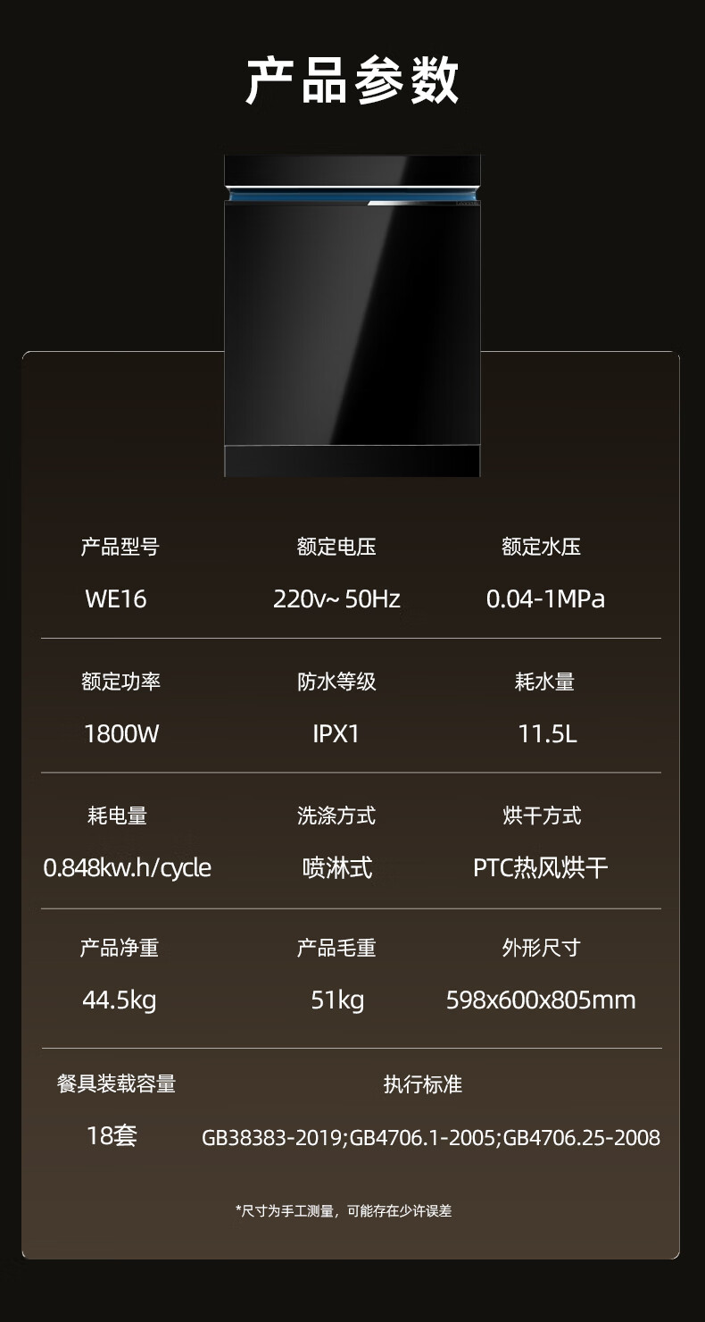 Wupin fully built-in dishwasher 18 sets, automatic opening and closing door for drying, 75 high temperature cooking and washing for mother and baby, variable frequency motor, first-class water efficiency, black glass panel WE16, automatic opening and closing door for drying, 18 sets of embedded glass panels