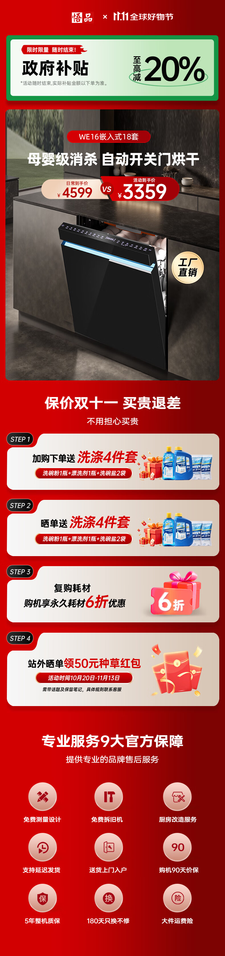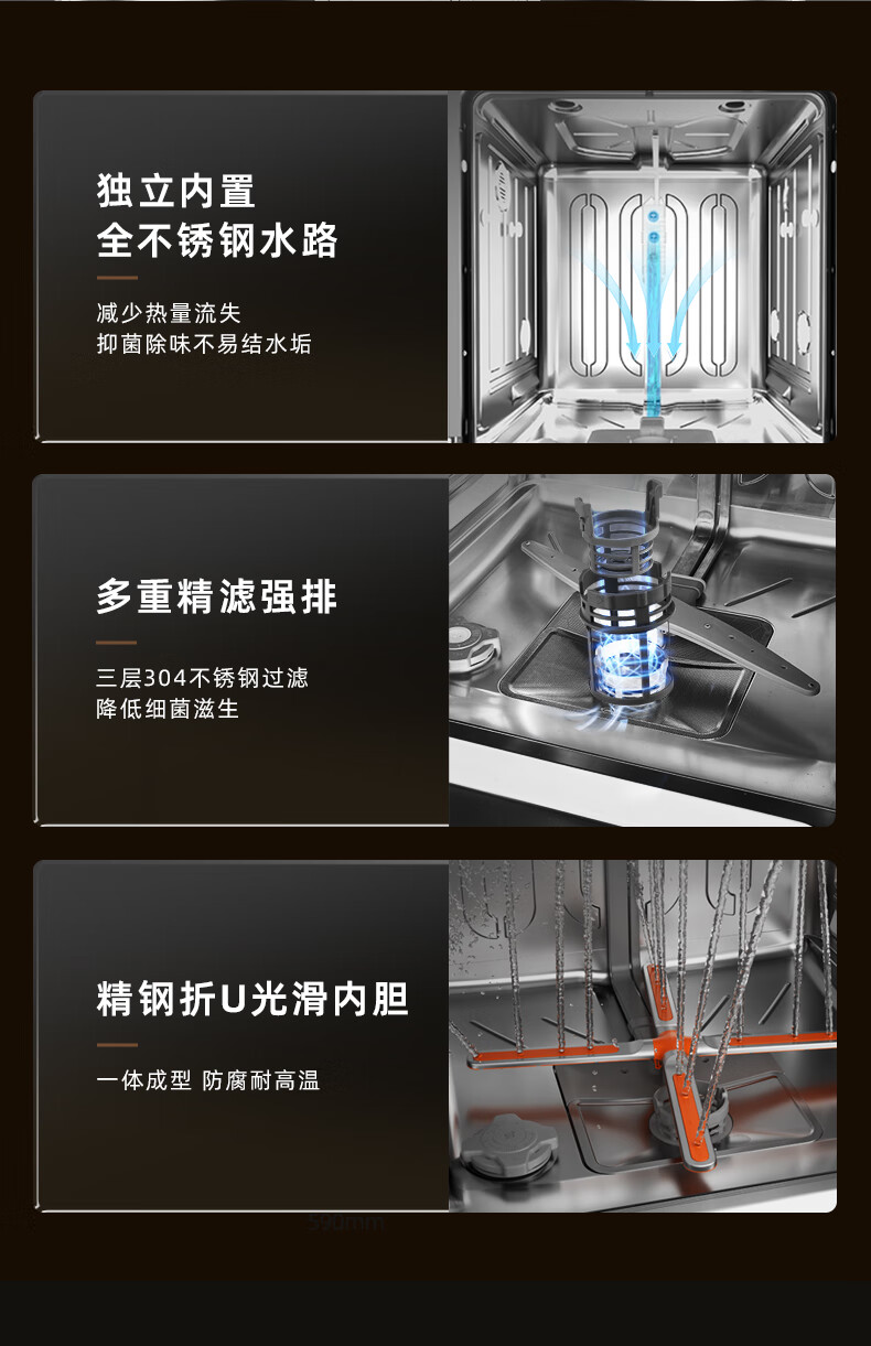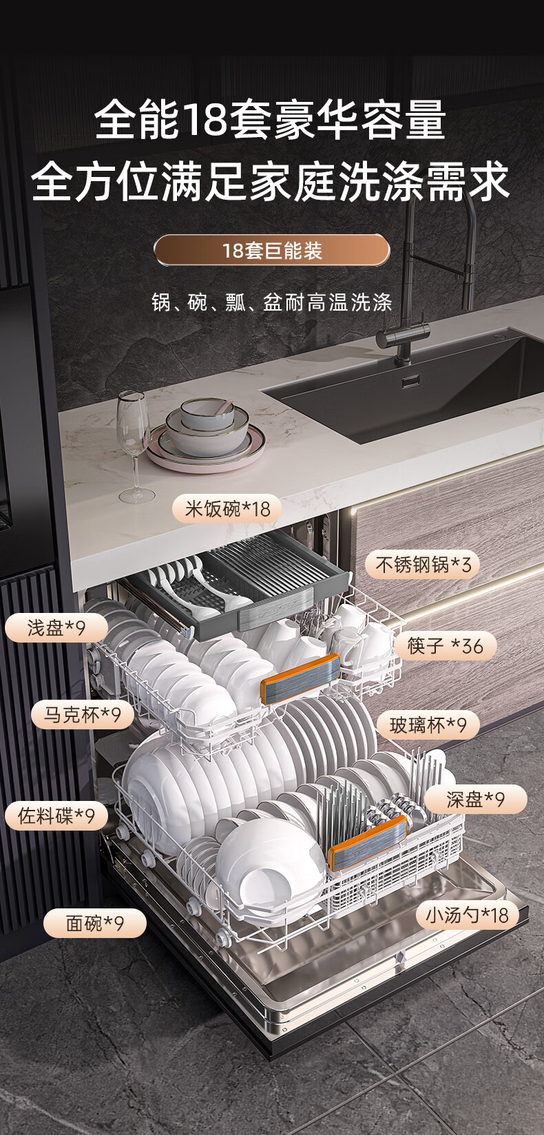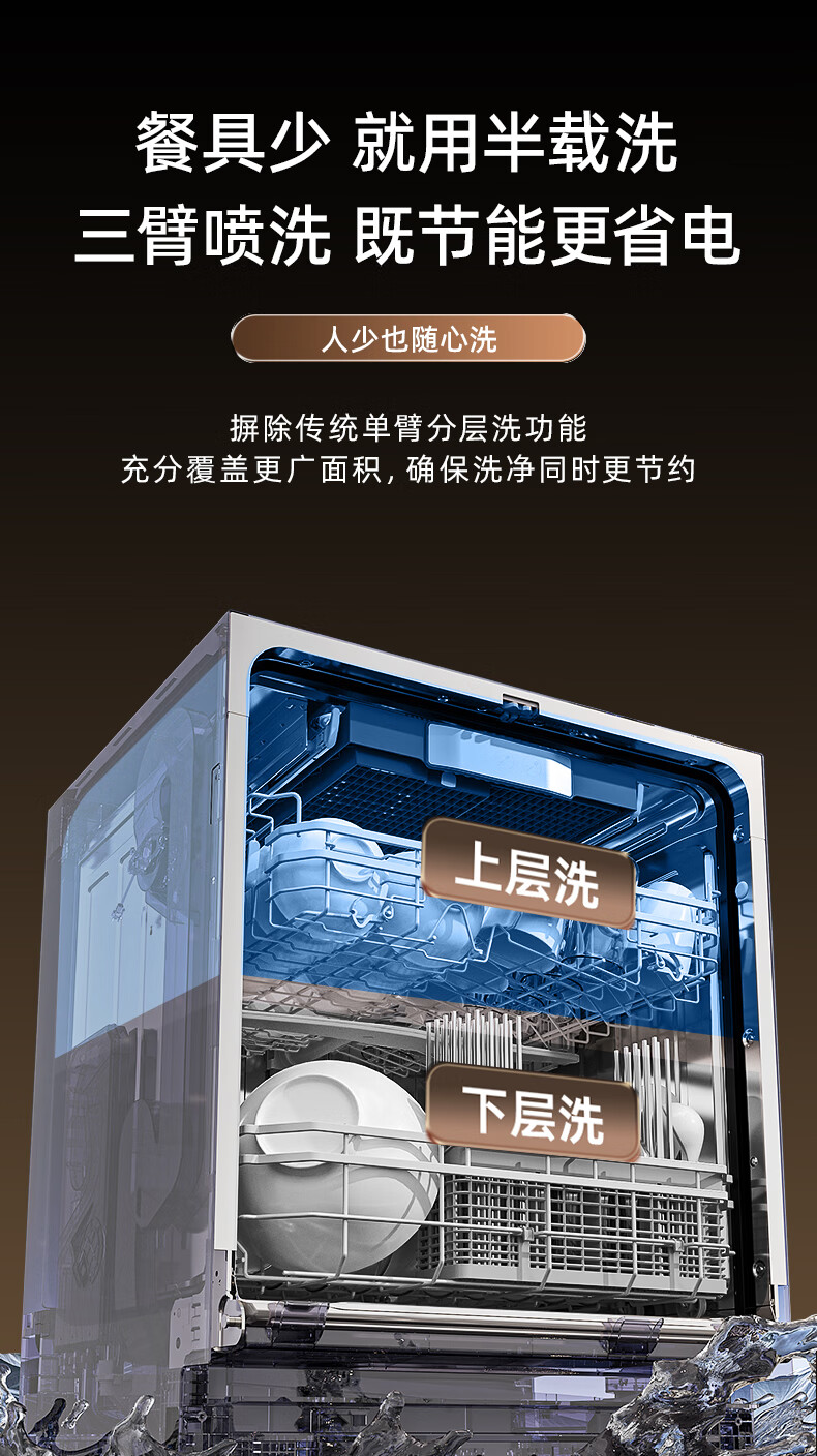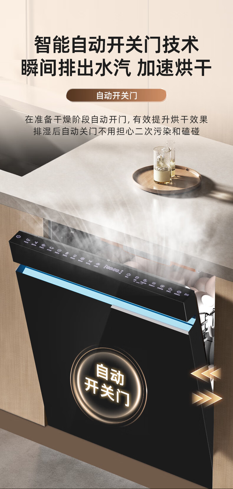 Wupin fully built-in dishwasher 18 sets, automatic opening and closing door for drying, 75 high temperature cooking and washing for mother and baby, variable frequency motor, first-class water efficiency, black glass panel WE16, automatic opening and closing door for drying, 18 sets of embedded glass panels
